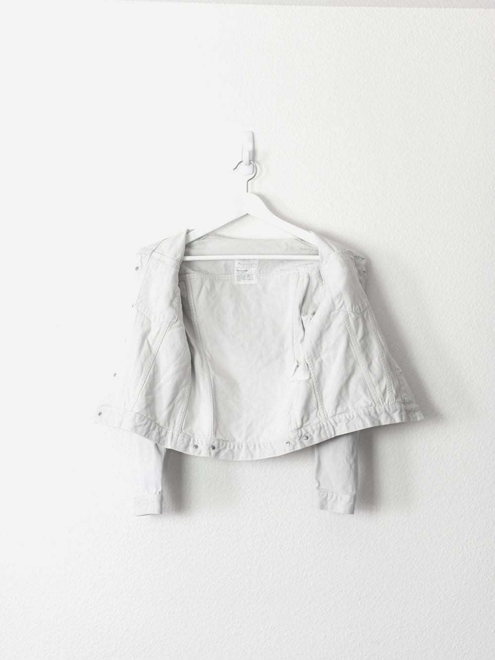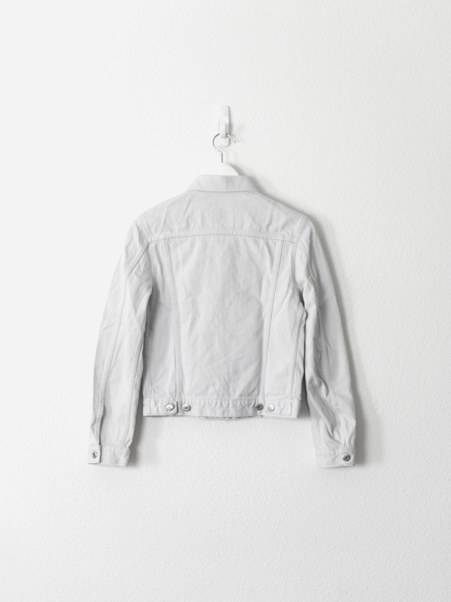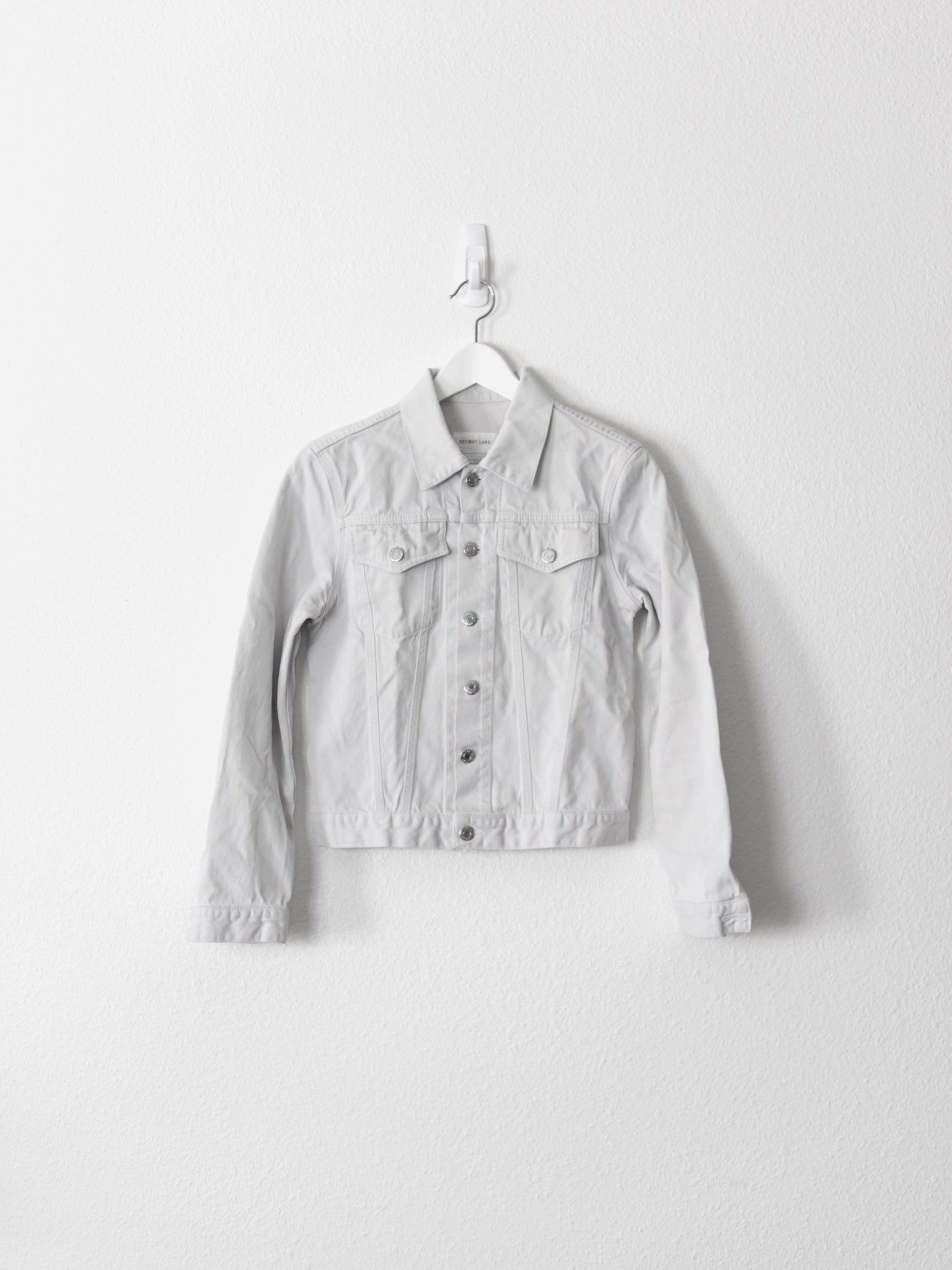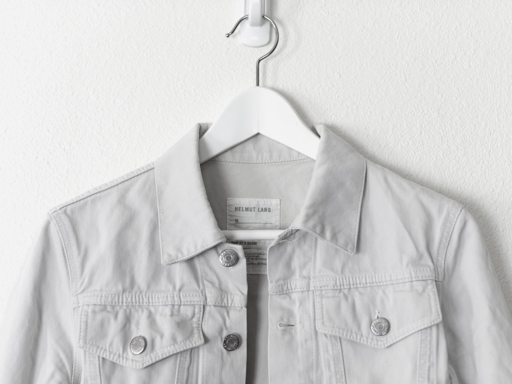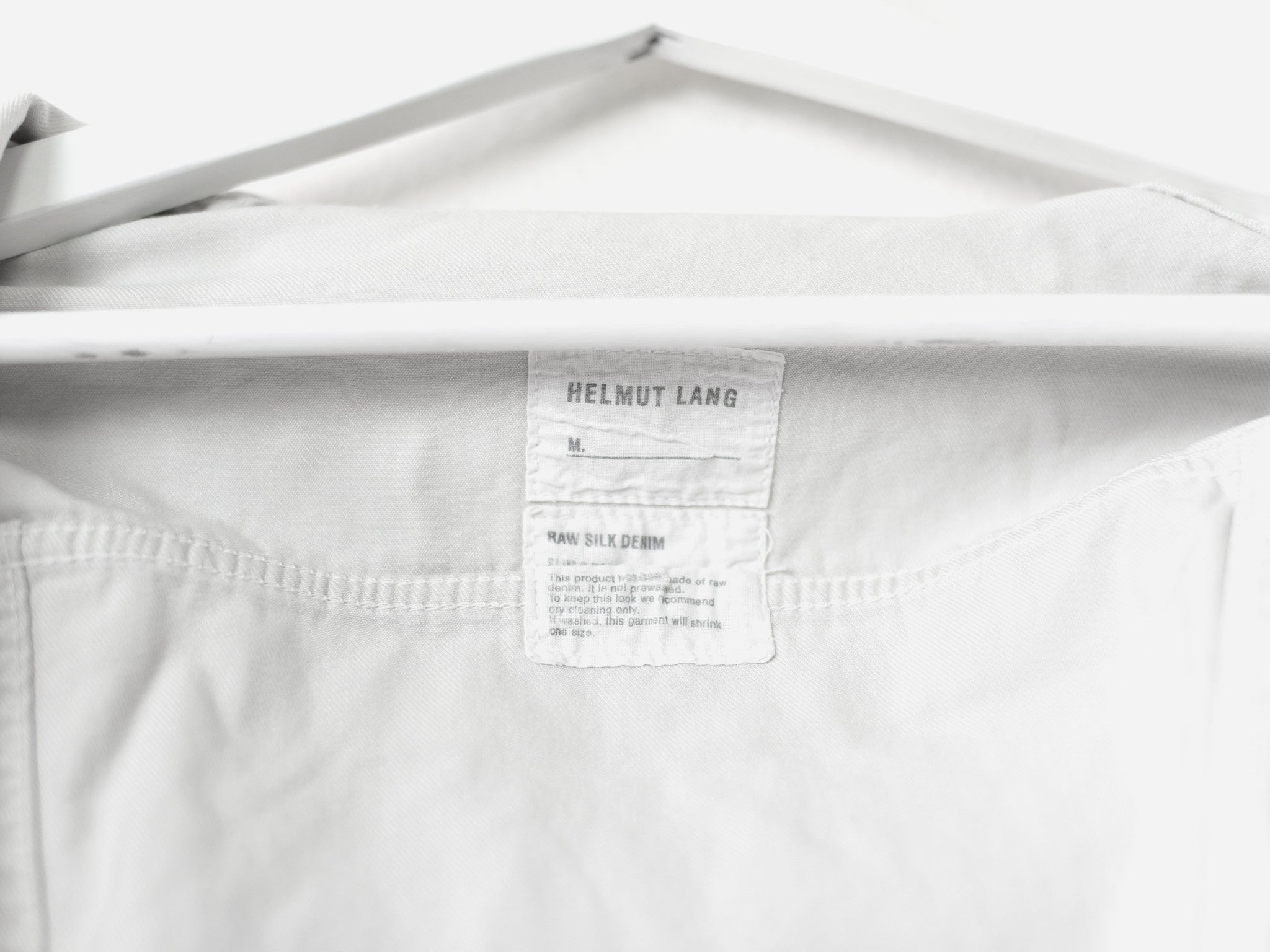 Cool vintage 90's Helmut Lang raw silk denim jacket in a beautiful silvery white. 9/10 condition. Made in Italy.