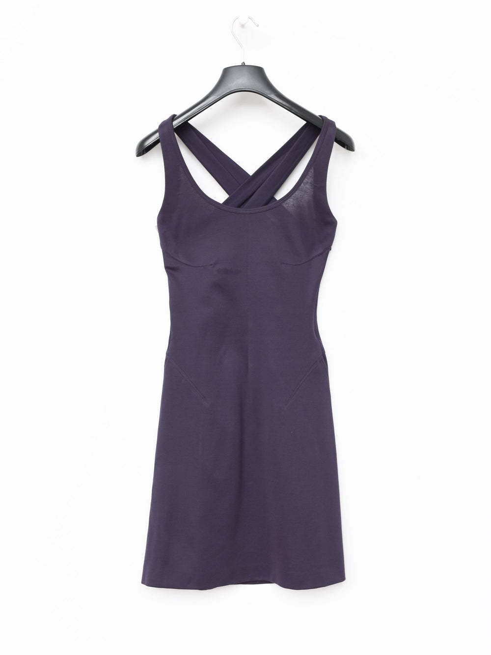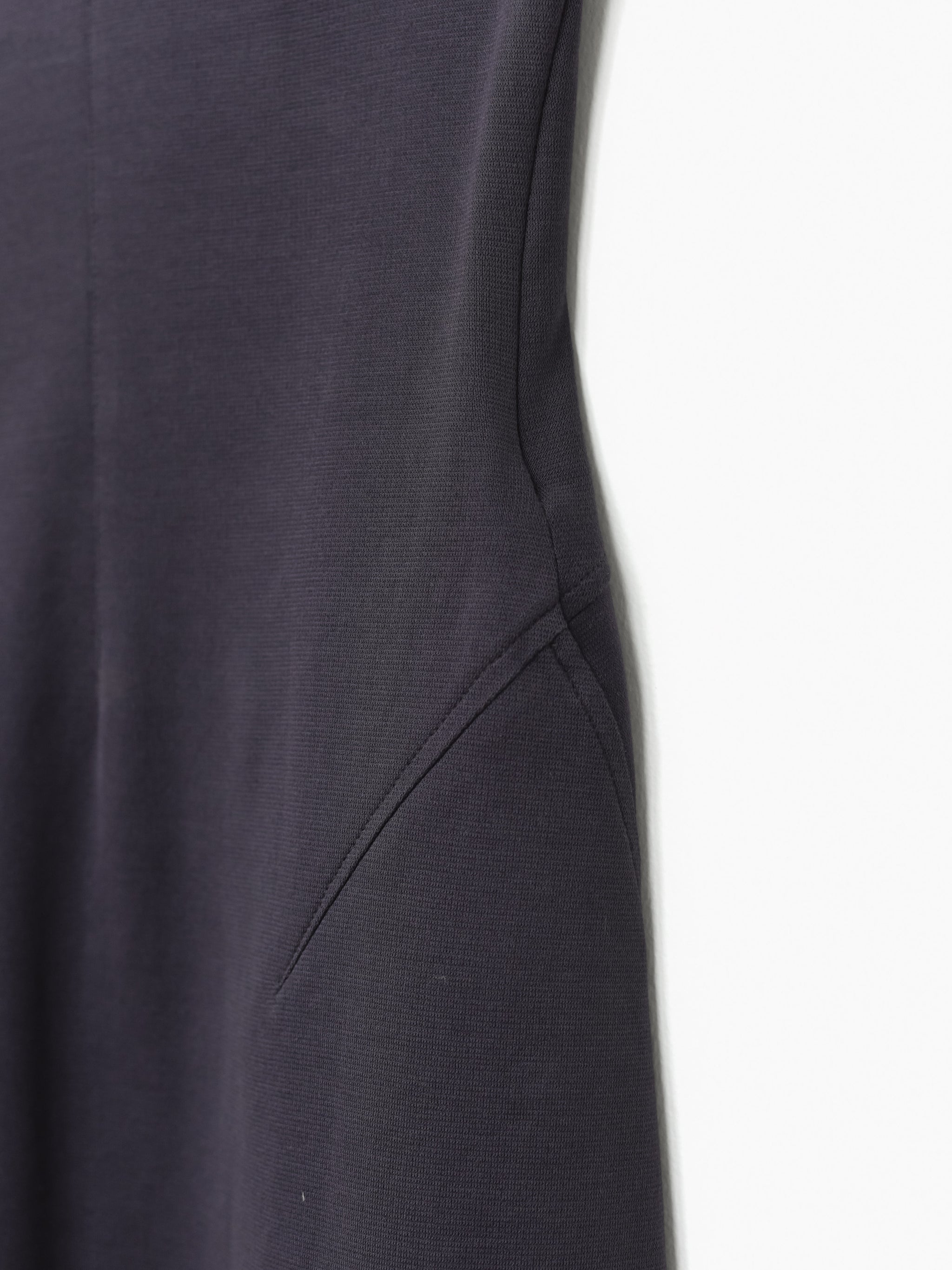 The construction is impeccable despite the final simplicity of the garment, with beautiful curved panels and seams near the hem and extremely clean collars and edges contrasting with the seamless straps.