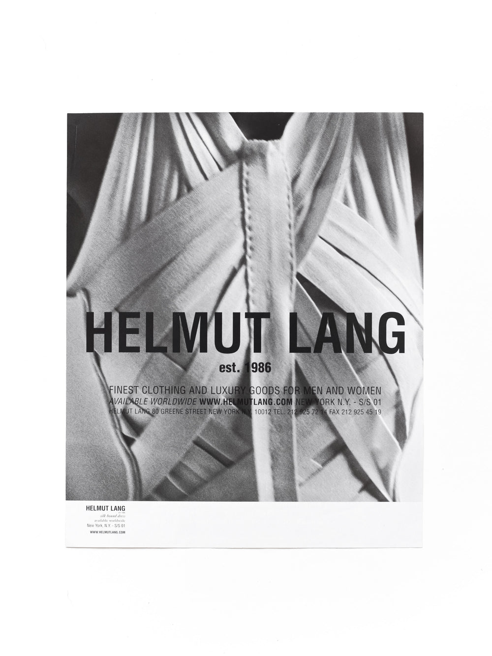 "Helmut Lang has often been praised for his 'deconstructive' designs. With basic garment forms as the starting point, Lang created subversively elegant and abstract designs that combined the classic with the avant-garde. This experimentation was amply demonstrated in S/S 2001, where Lang explored ways of revealing the body. Cut-outs and laces were used to decorate tops, trousers and outerwear, while dresses featured straps and perforations that created a subtle yet sensual effect.The wearer's body is highlighted and in turn becomes an essential component of the design itself. S/S 2001 can thus be understood as a quintessential Helmut Lang collection, combining his cerebral conceptualism with a new sense ofraw-yet-refined sexiness." - Endyma
