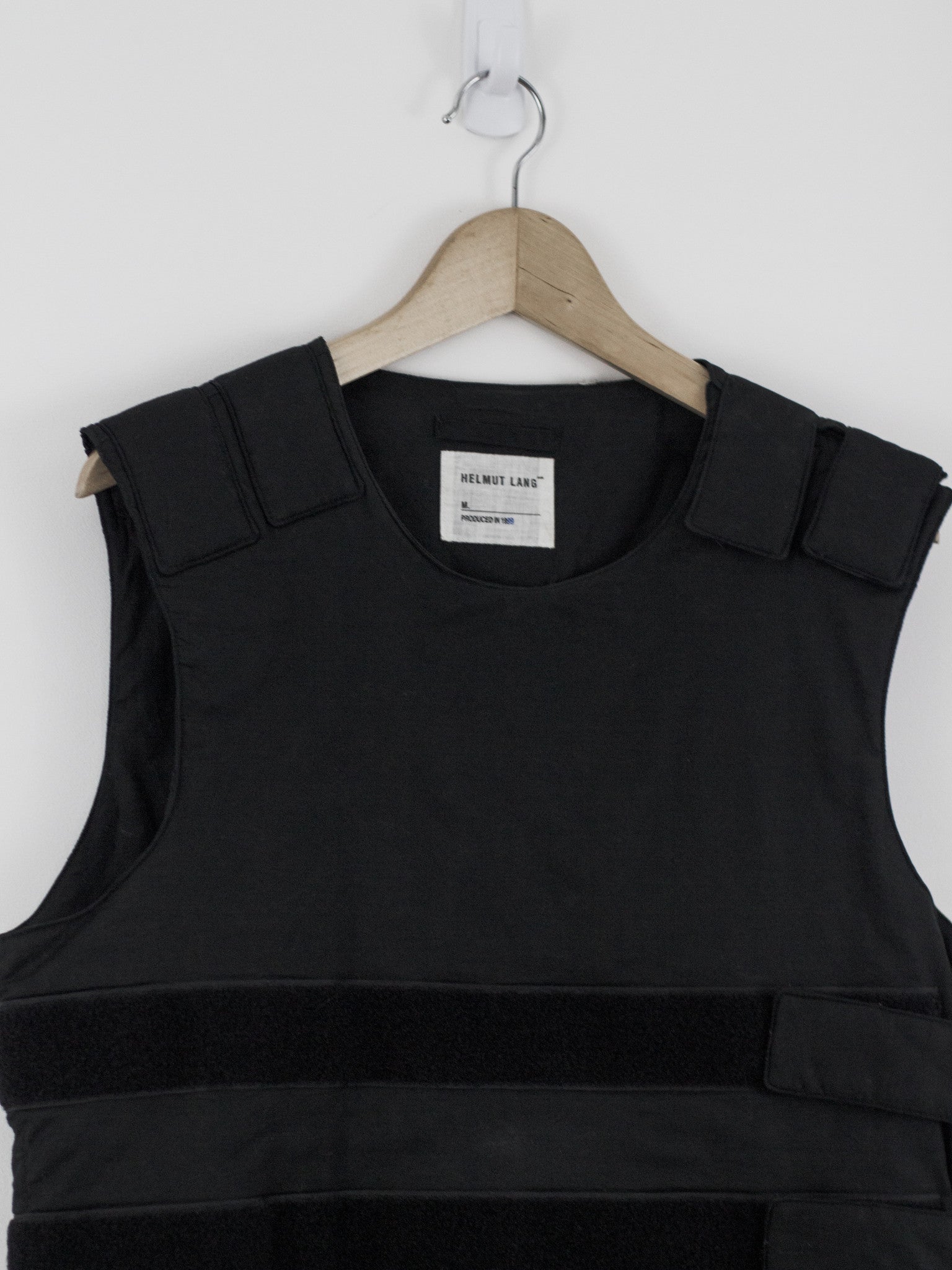 Lang demonstrates his uncanny ability to re-contextualize garments never even conceived in the world of high fashion with his version of the bulletproof vest; an undeniably iconic and beautiful display of Lang's creativity and design proficiency.
