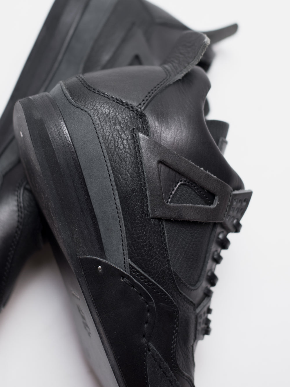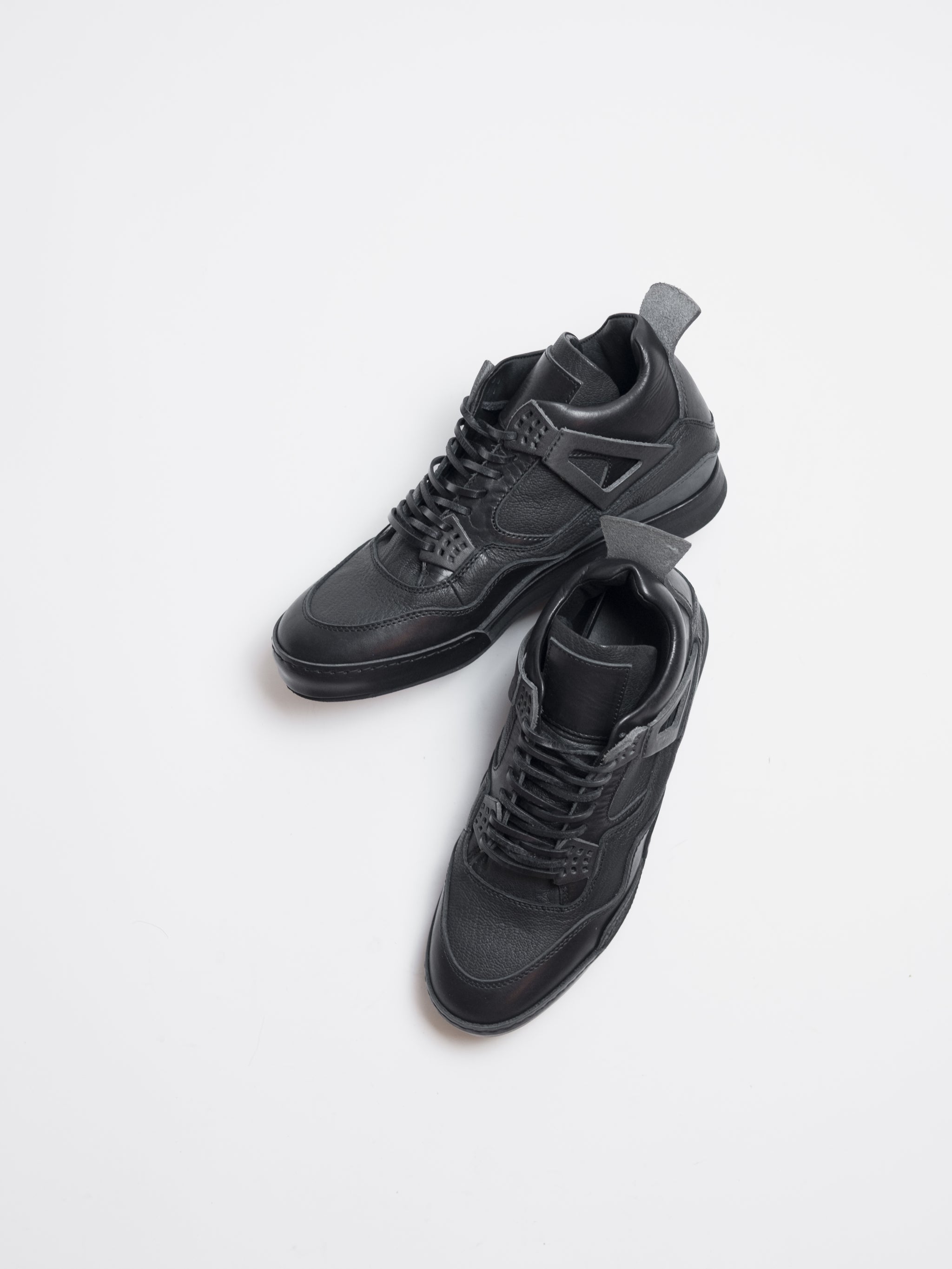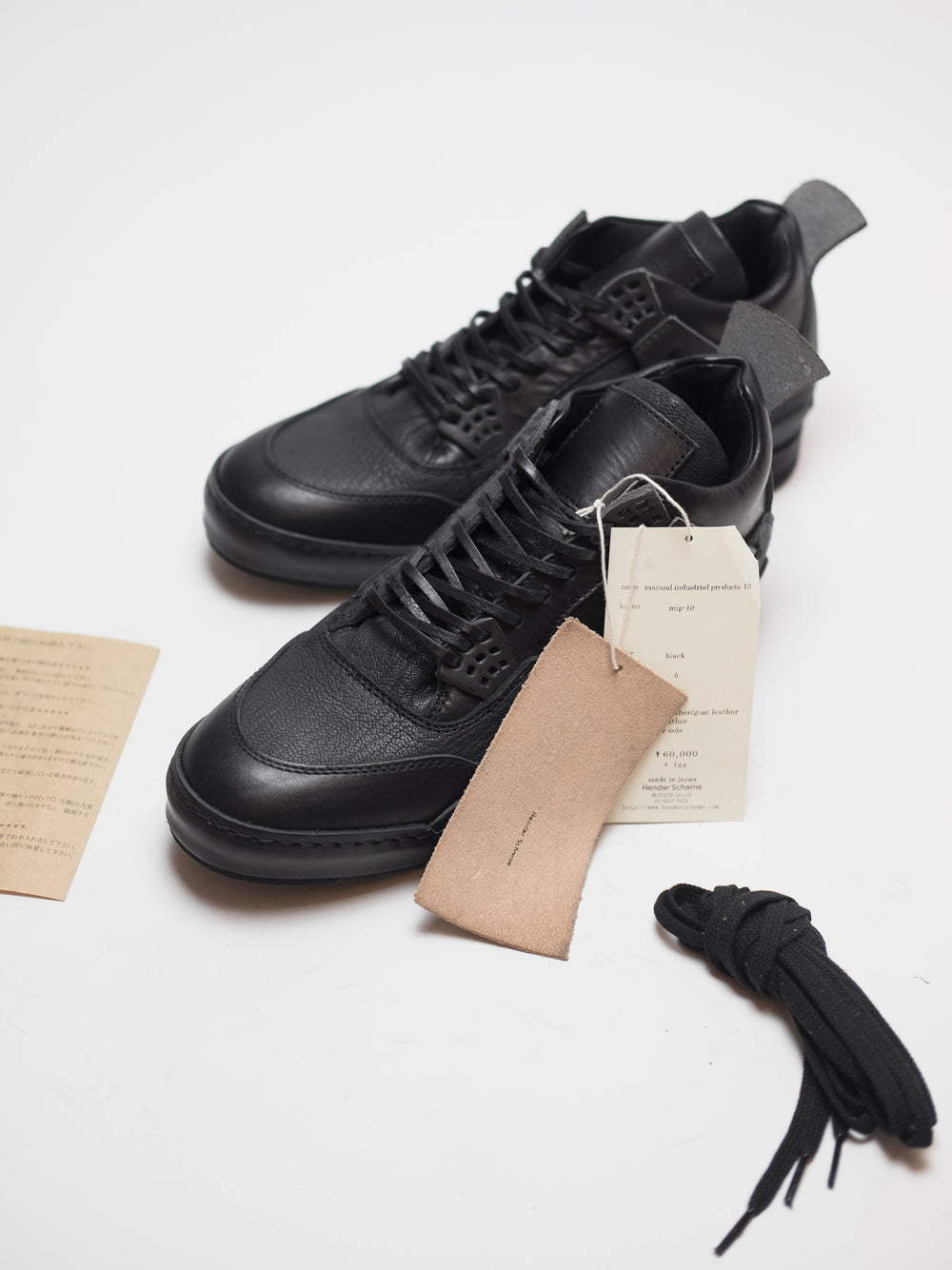 The 'Manual Industrial Product' is Hender Scheme designer Ryo Kashiwazaki's project that reinterprets mass-market products with a high level of craft and a deep knowledge of shoemaking tradition. The 10th installment in this series is a luxury handmade rendition of Nike's Jordan IV silhouette. It is made from various 'shades' of black that are separated less by color and more by the varying textures of different leathers. Using the highest quality materials, these shoes are meant to be worn, resoled, and repaired. They are receptive to care and will their longevity will shine with a considerate owner.