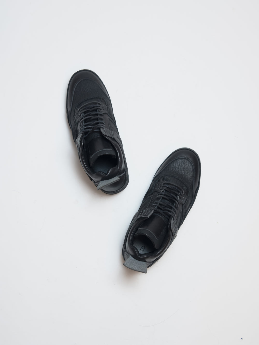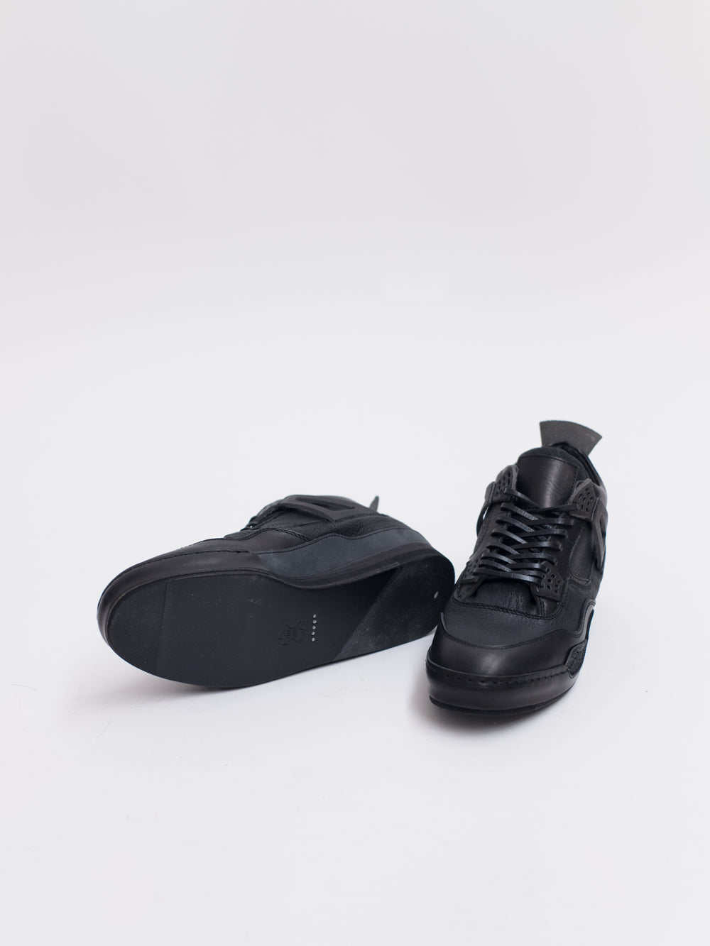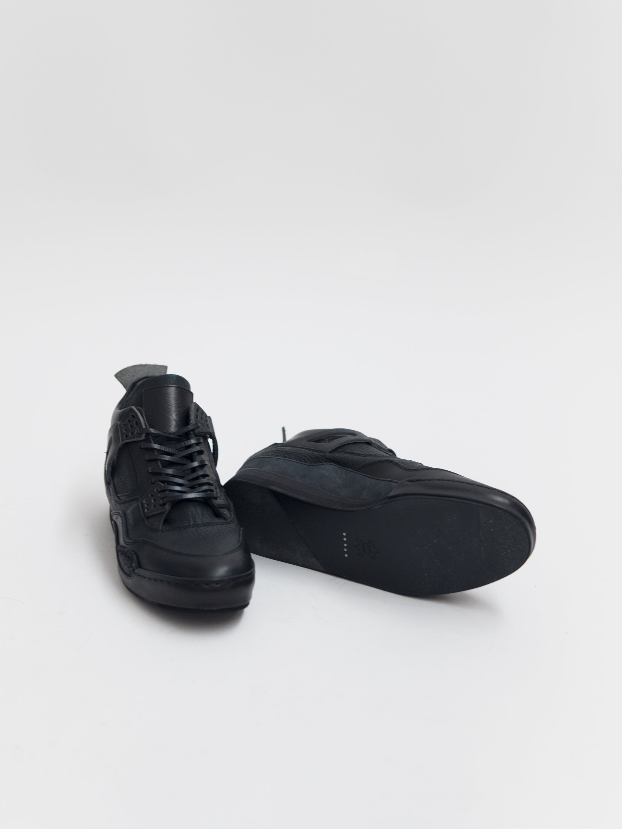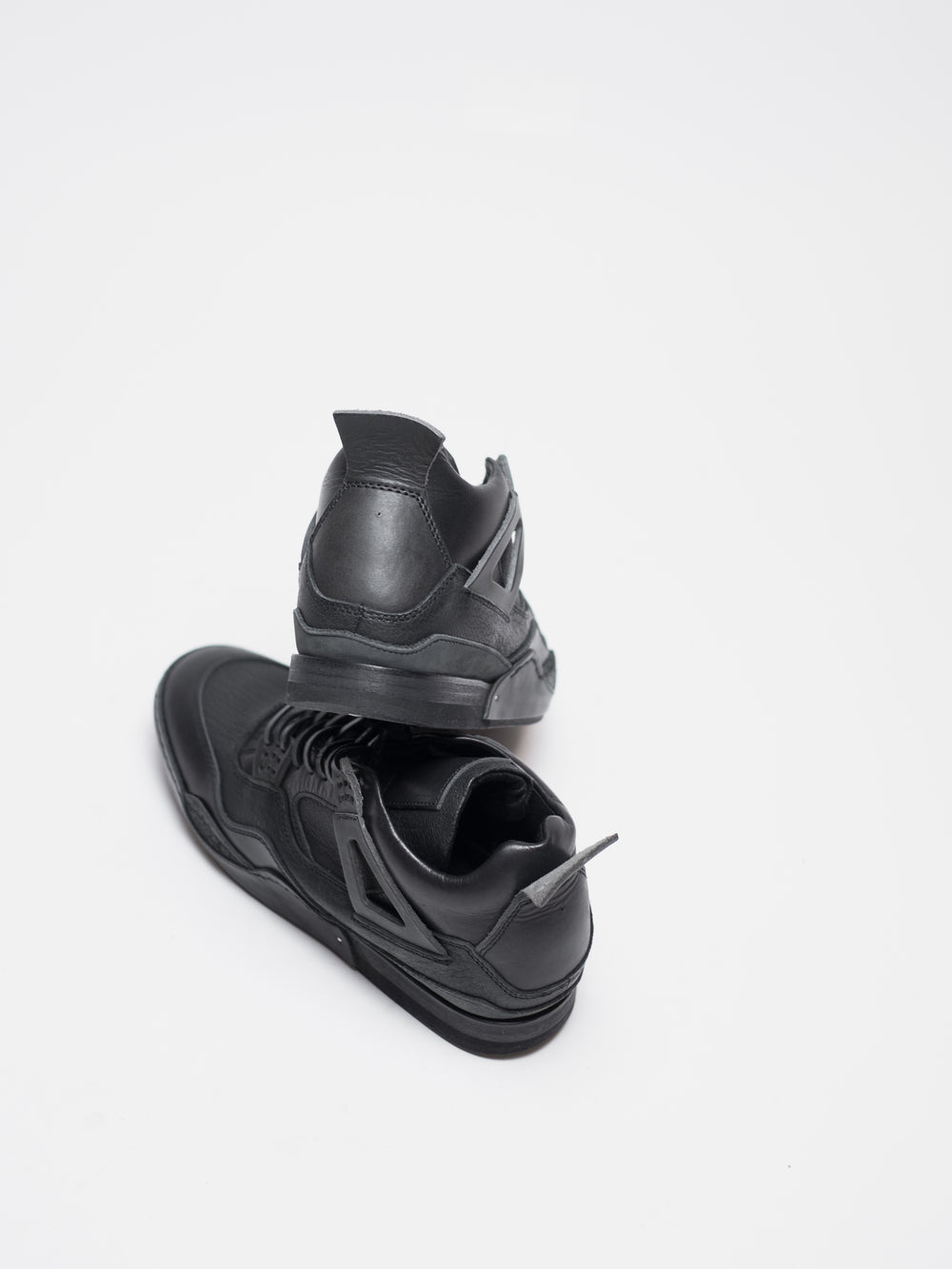 The 'Manual Industrial Product' is Hender Scheme designer Ryo Kashiwazaki's project that reinterprets mass-market products with a high level of craft and a deep knowledge of shoemaking tradition. The 10th installment in this series is a luxury handmade rendition of Nike's Jordan IV silhouette. It is made from various 'shades' of black that are separated less by color and more by the varying textures of different leathers. Using the highest quality materials, these shoes are meant to be worn, resoled, and repaired. They are receptive to care and will their longevity will shine with a considerate owner.