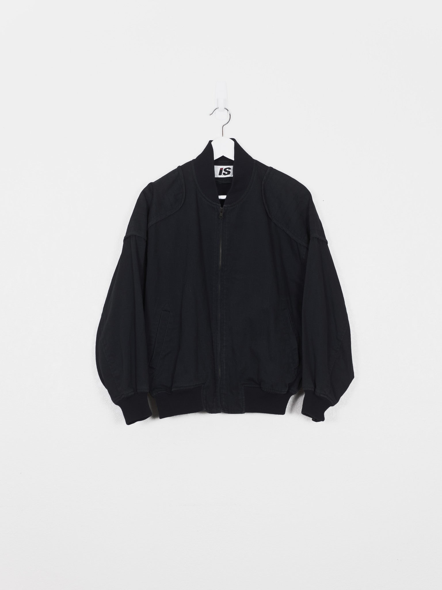 Rare variation of the legendary 1980's Issey Sport bomber designed by Tsumori Chisato. Details include padded shoulders and the benefit of usable vertical hand pockets over the other version, as well as the traditional wind flap and an amazing silhouette.