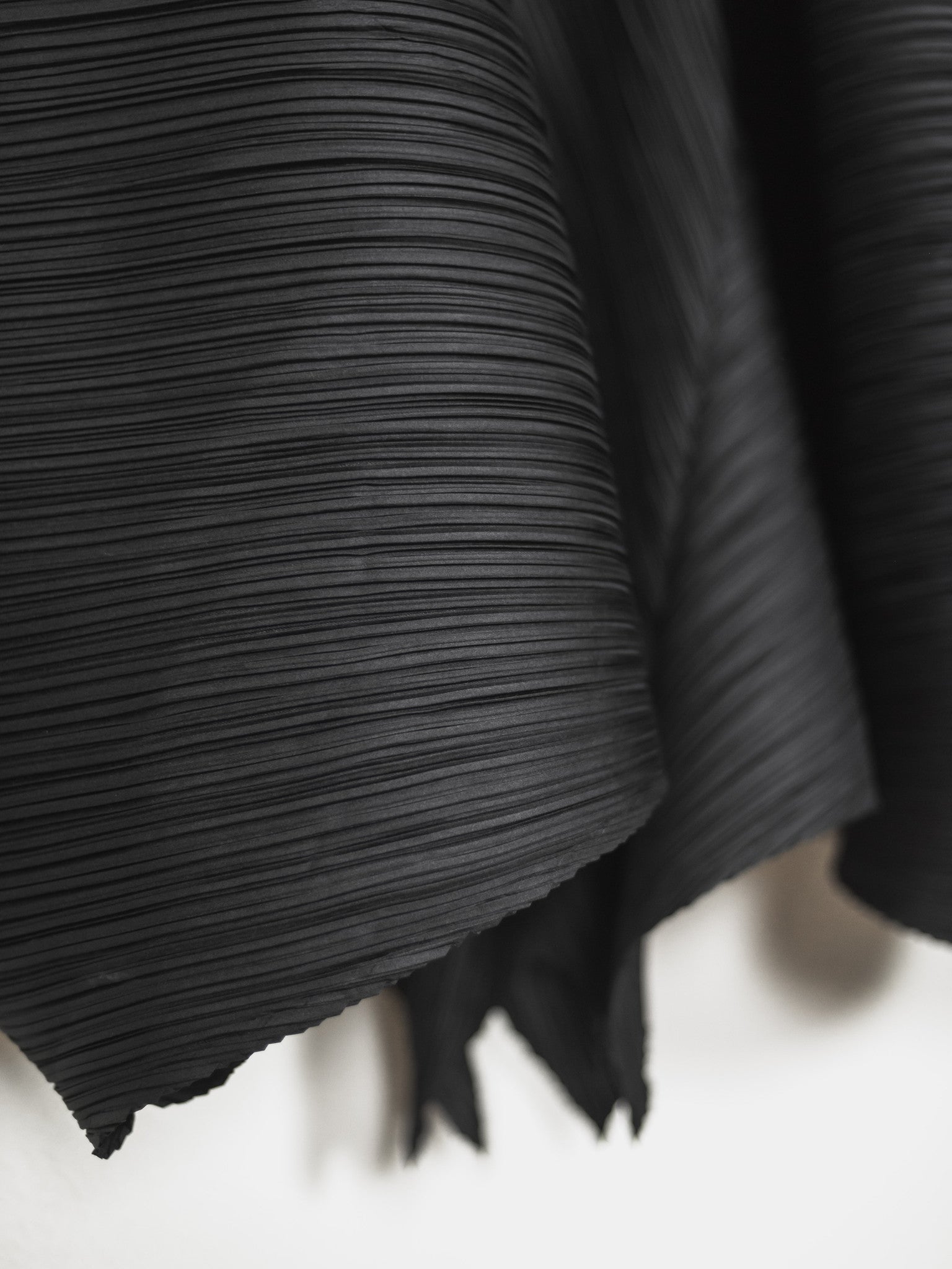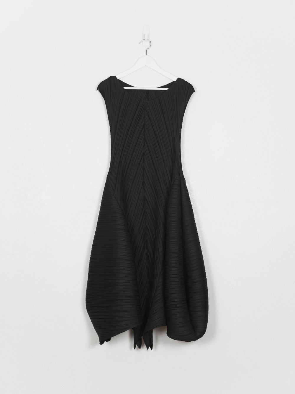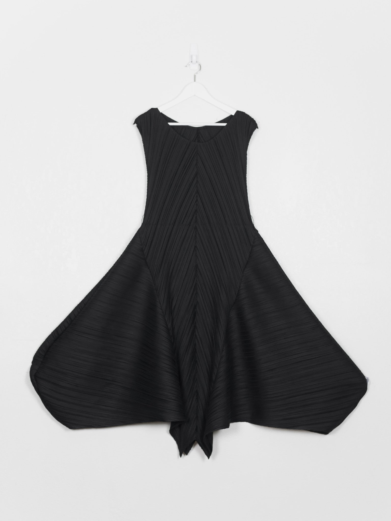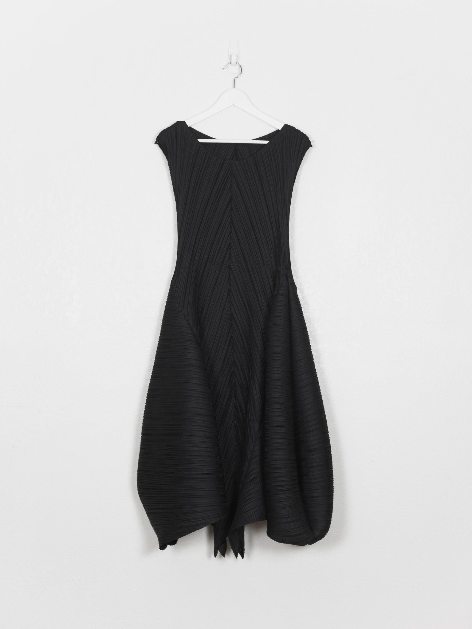 An absolutely beautiful dress from Issey Miyake Pleats Please with an elegant and avant garde cut allowing it to drape and flow organically as the wearer moves. The tags have been removed so that it can be worn inside out, but I guarantee that this is a genuine Issey Miyake piece. The proprietary elasticity and drape of the pleats is irreproducible.