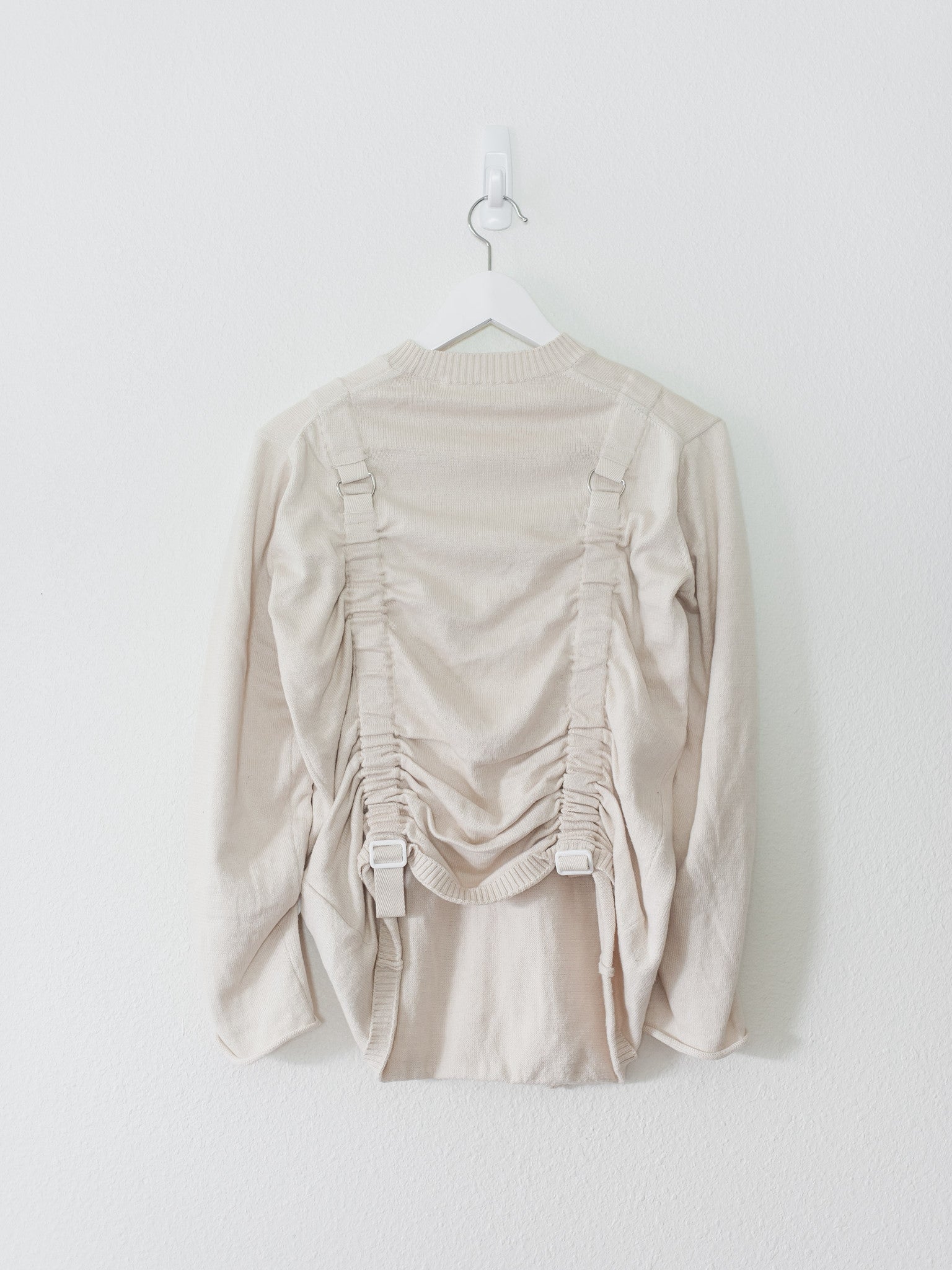 Incredible piece kept unworn for 13 years featuring parachute inspired straps and hardware throughout, giving it a wonderful drape and adjustable fit. Made in Japan. 10/10 condition, no flaws. 100% cotton.