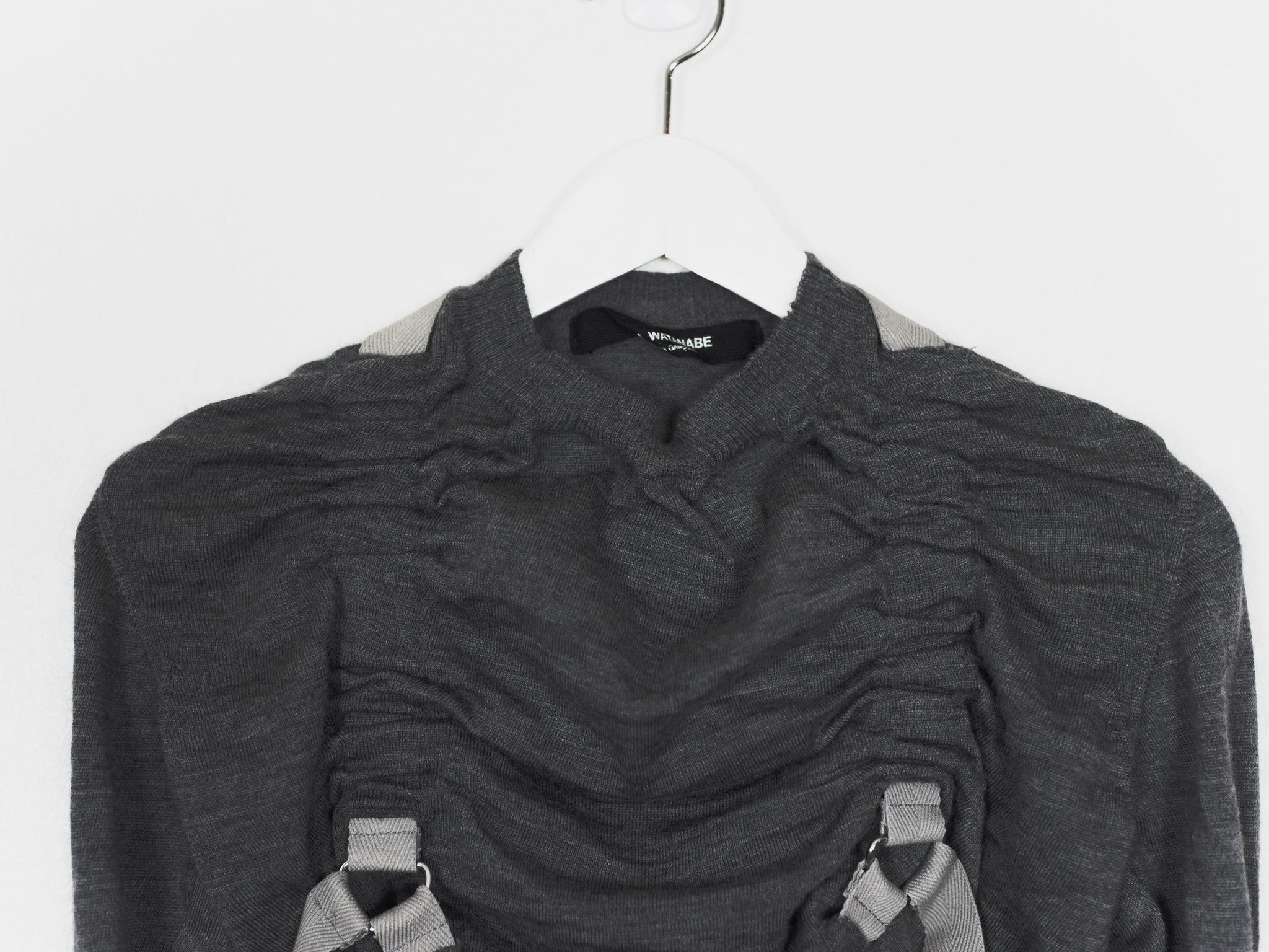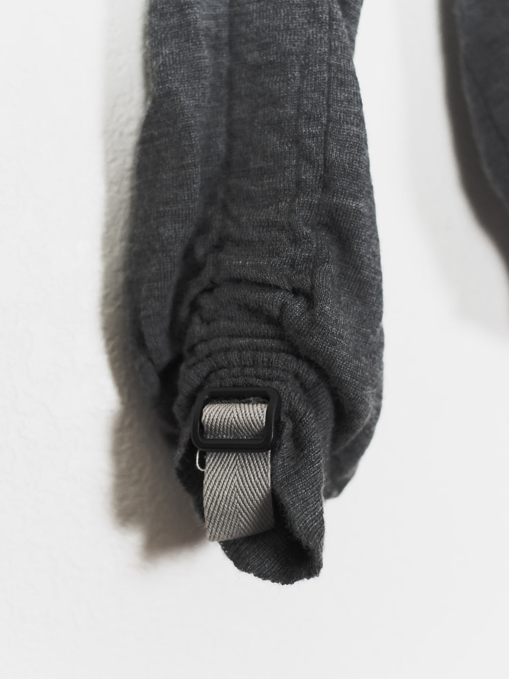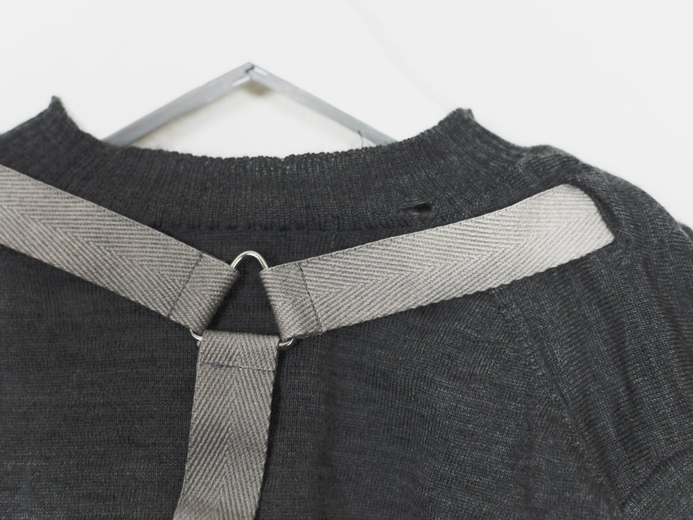 Well known piece featuring contrast grey parachute inspired straps and hardware throughout, giving it a wonderful drape and adjustable fit.