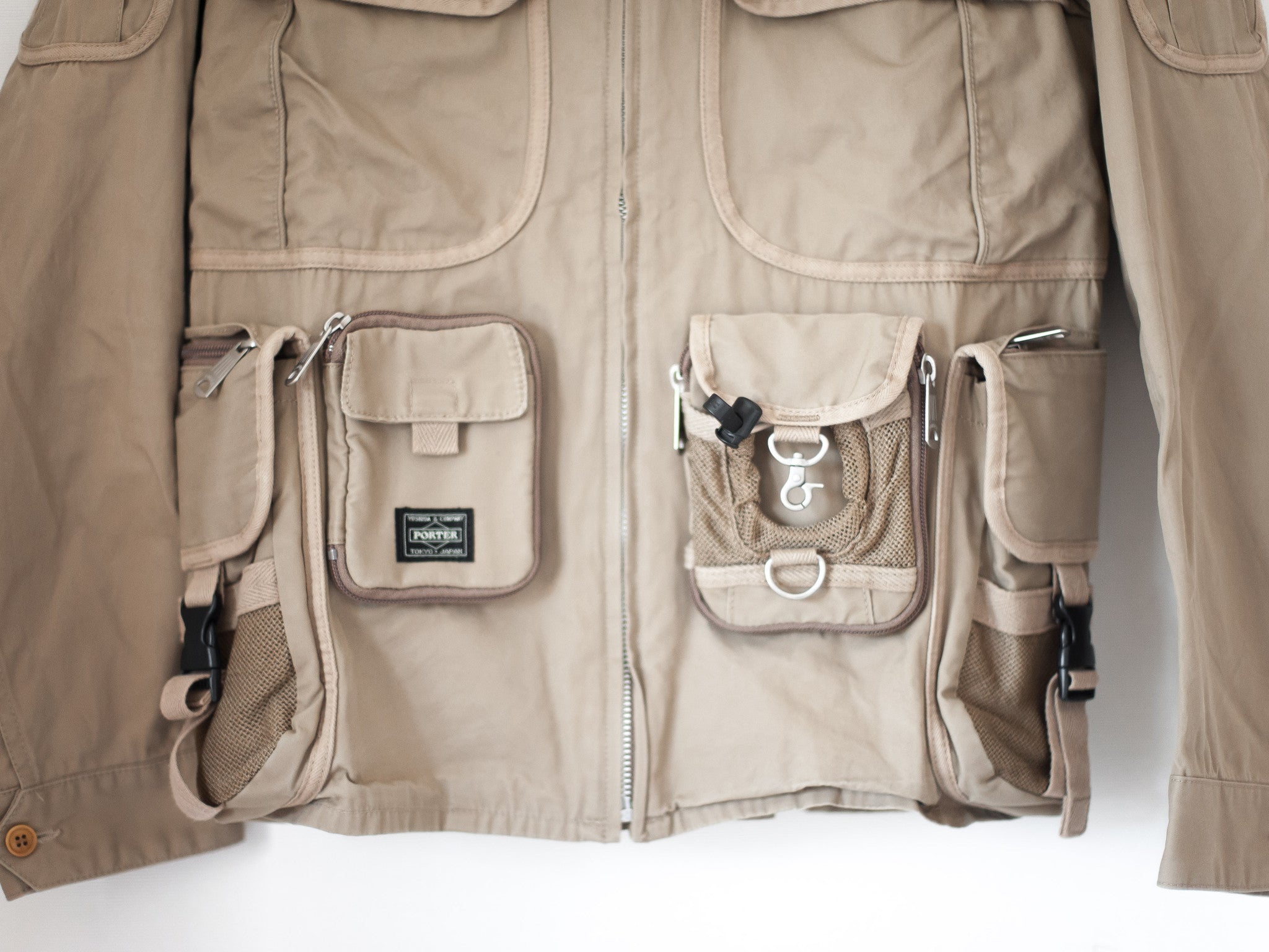 Extremely rare jacket by eYe Junya Watanabe Comme Des Garcons Man x Porter. Loads of pockets!!! Pockets and pouches and hooks everywhere!!! You can probably sneak some drugs and illegal immigrants in this jacket (don't try this). Other details include removable hood, pockets, pockets, and pockets. 9.5/10 condition, no flaws.