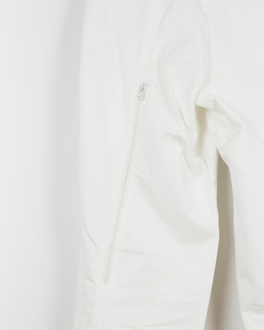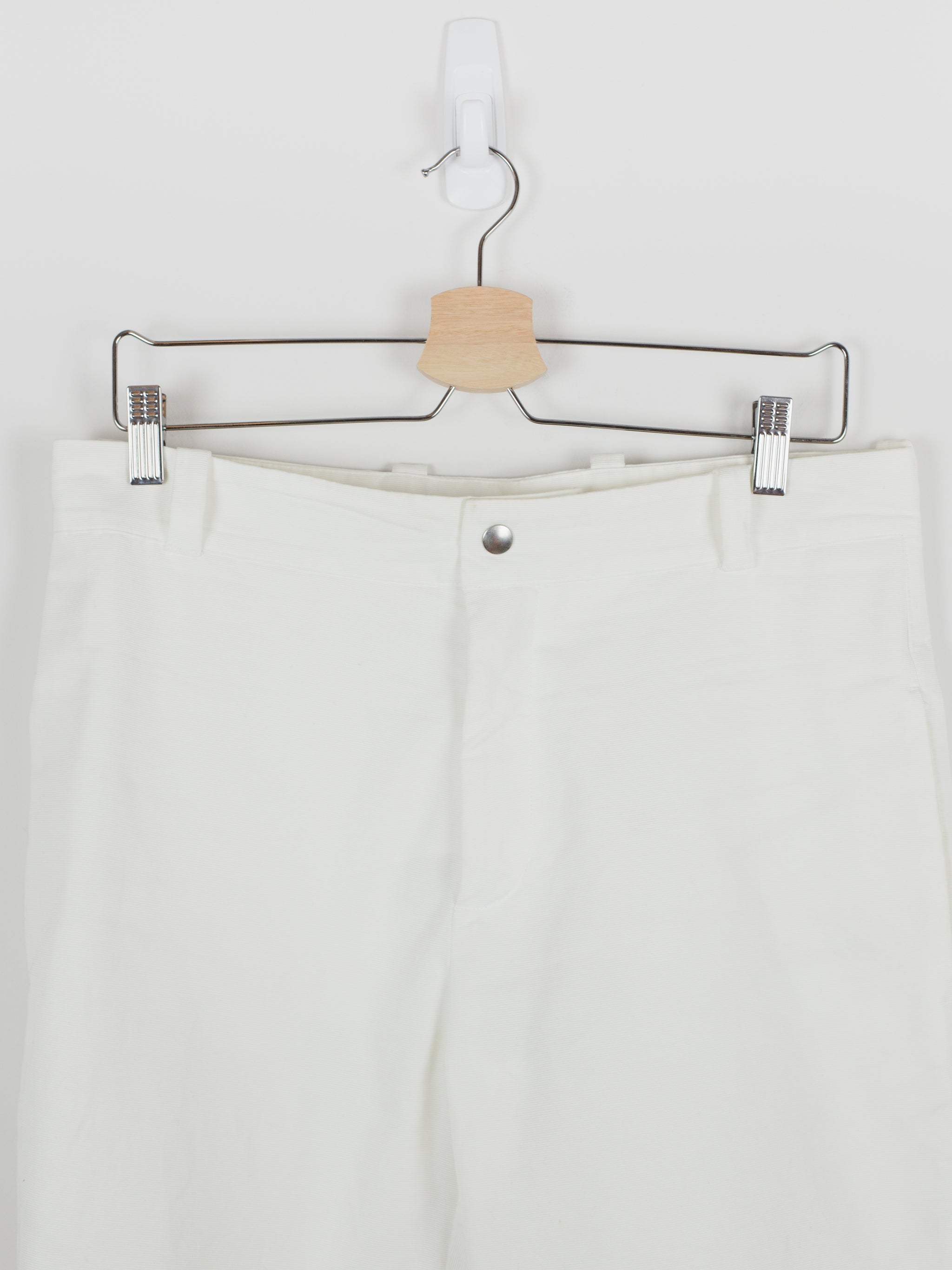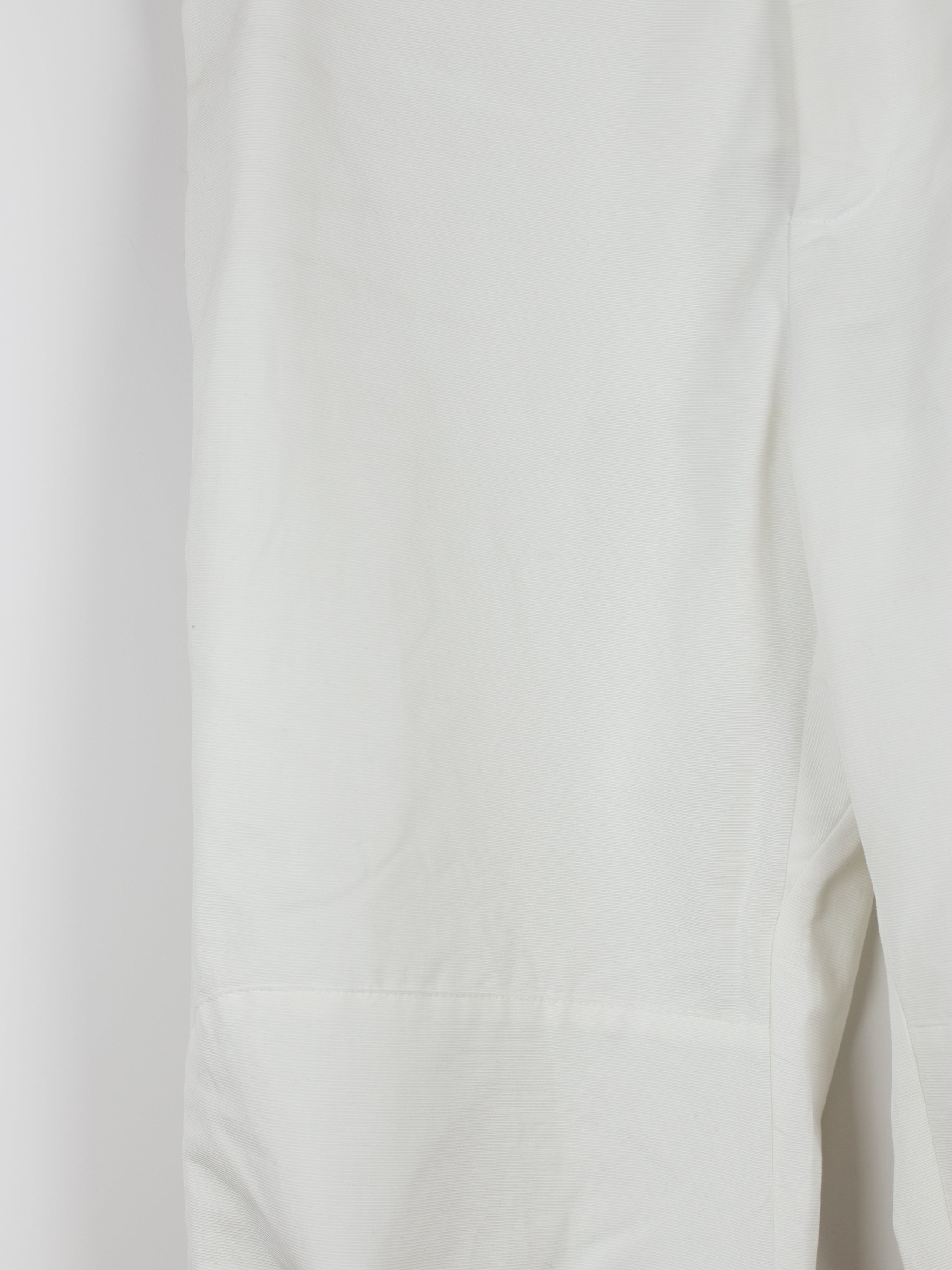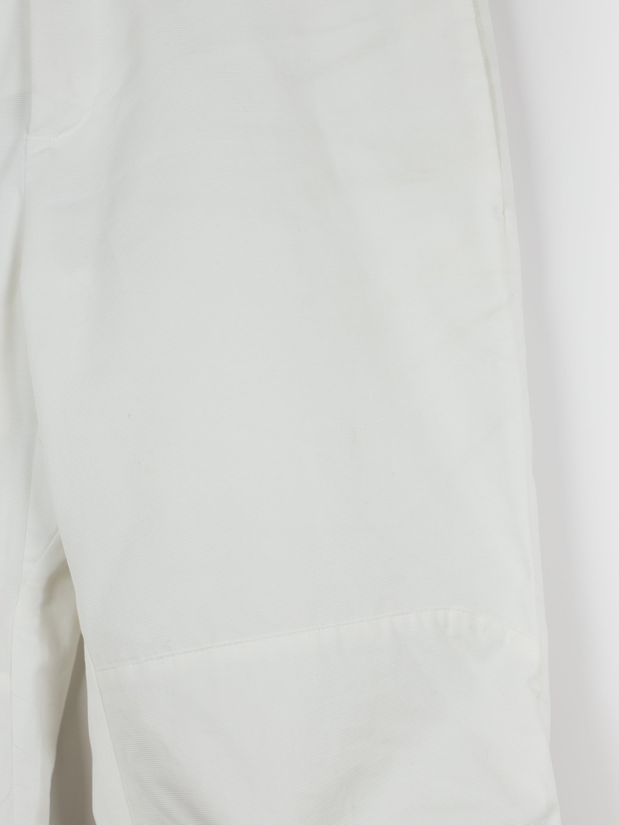 Tagged size M fits 32-338/10 Condition with some slight spots throughout (near crotch and at lower leg primarily), and some dirt at interior of waistline and at the hems. See pictures for full extent of wear. No rips or tears.