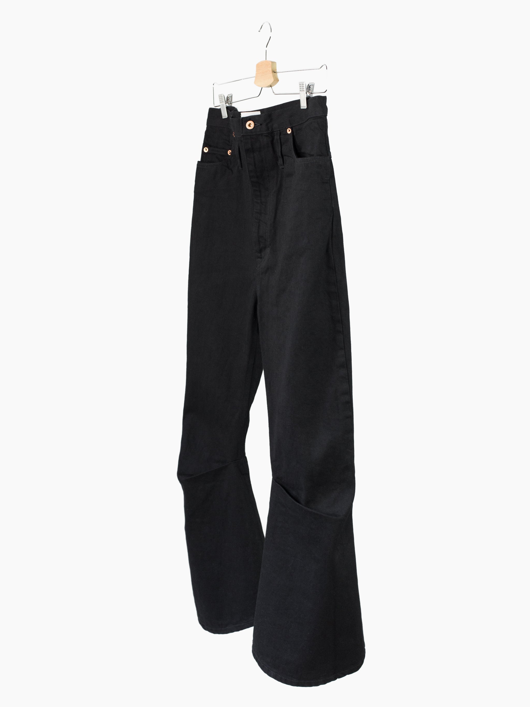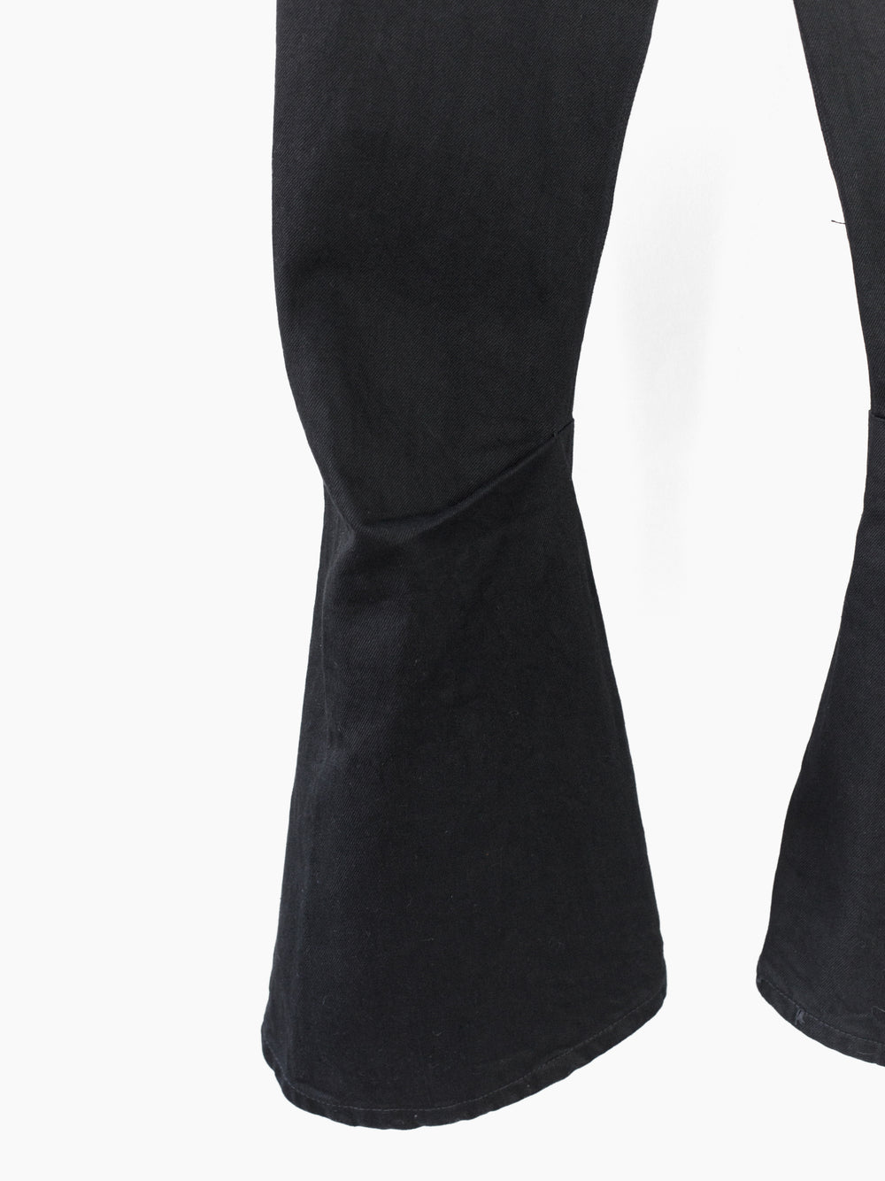 Fit Notes:Tagged a size 3, fits a 31-32W with extra high rise and slim cut through seat/legs with dramatic kick flare below the knee.
