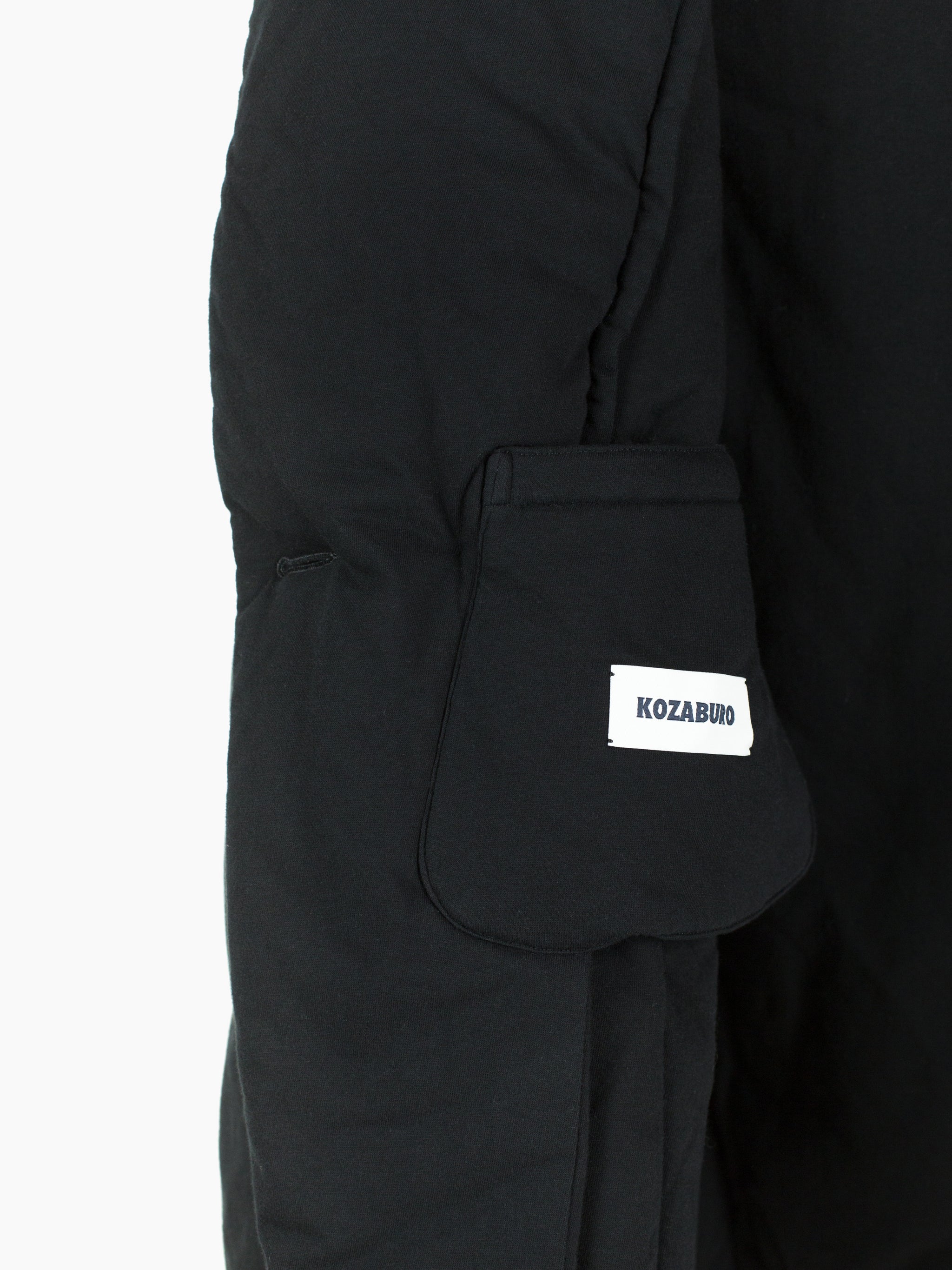 Finished with Kozaburo signature cracked button, convertible collar closure at the neck, and interior button fastening. Two patch waist pockets and 1 patch chest pocket.