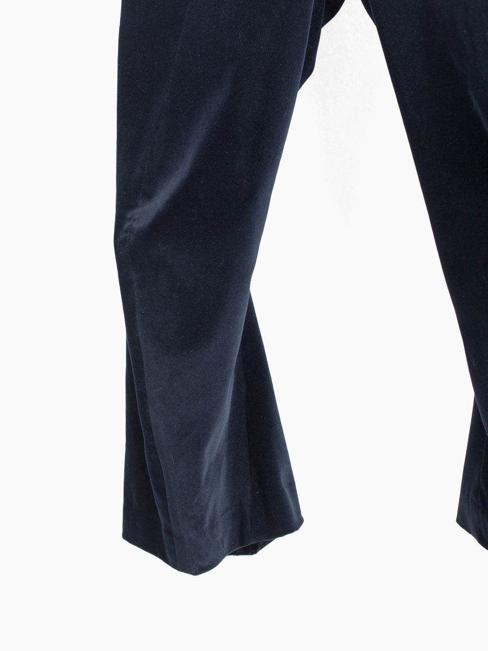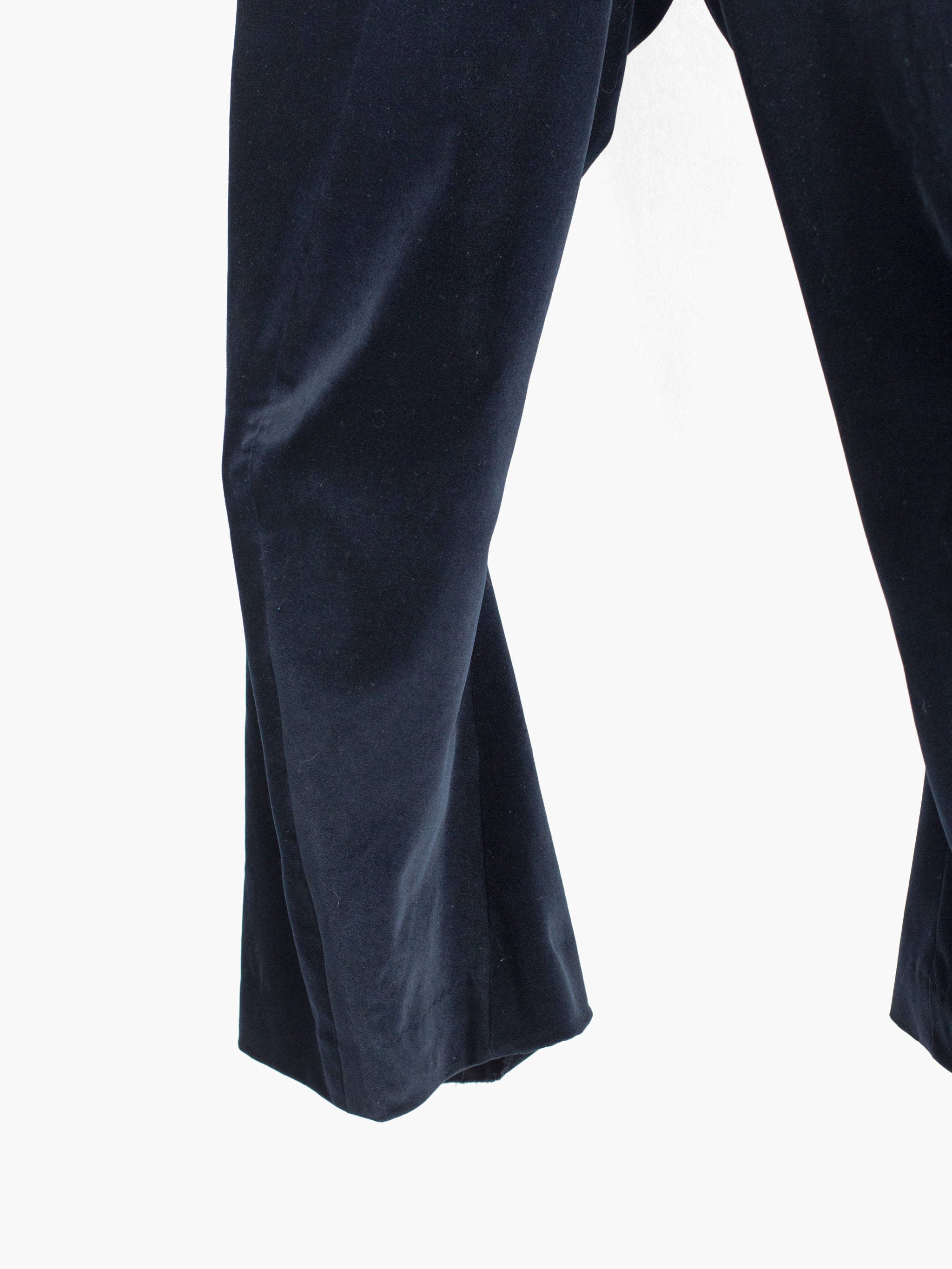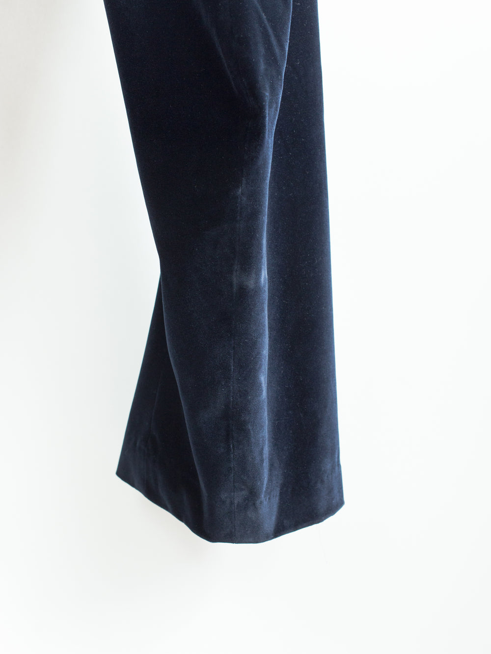 Finished with cupro lining from the waistband down to the calf, modified floating pocket entry, darted yoke, back patch pockets, dropped belt loops, and signature 'cracked' center button closure.