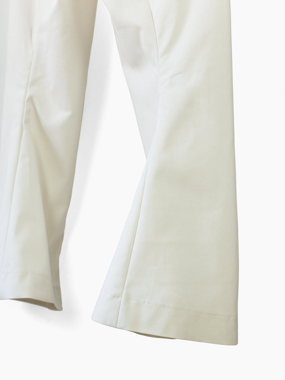 For Spring/Summer 2022, the iconic 3D tailored is rendered in open weave poly/cotton hopsack, beautifully textured with a dry handfeel reminiscent of natural bast fibers like ramie. An artful meeting of historical texture/weave and a contemporary color palette/material composition that balances wearability and performance. It's airy and open yet retains a subtle crispness and structure perfectly suited to the sculptural cut.