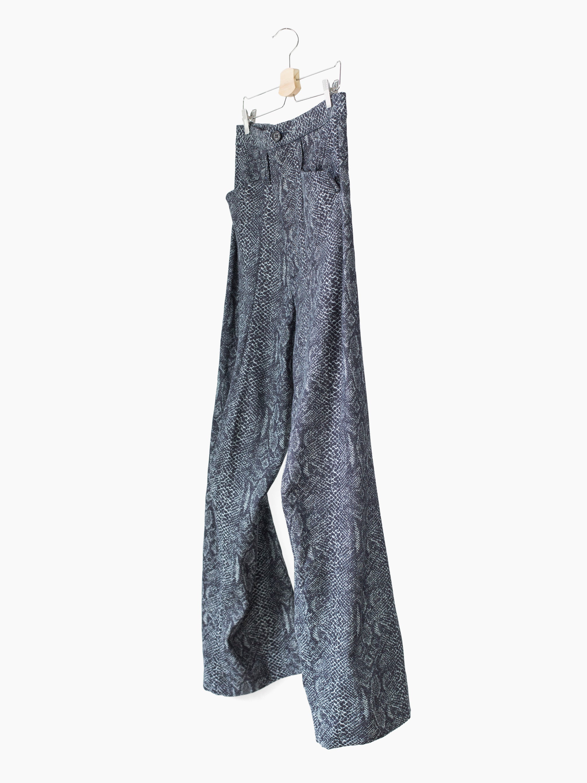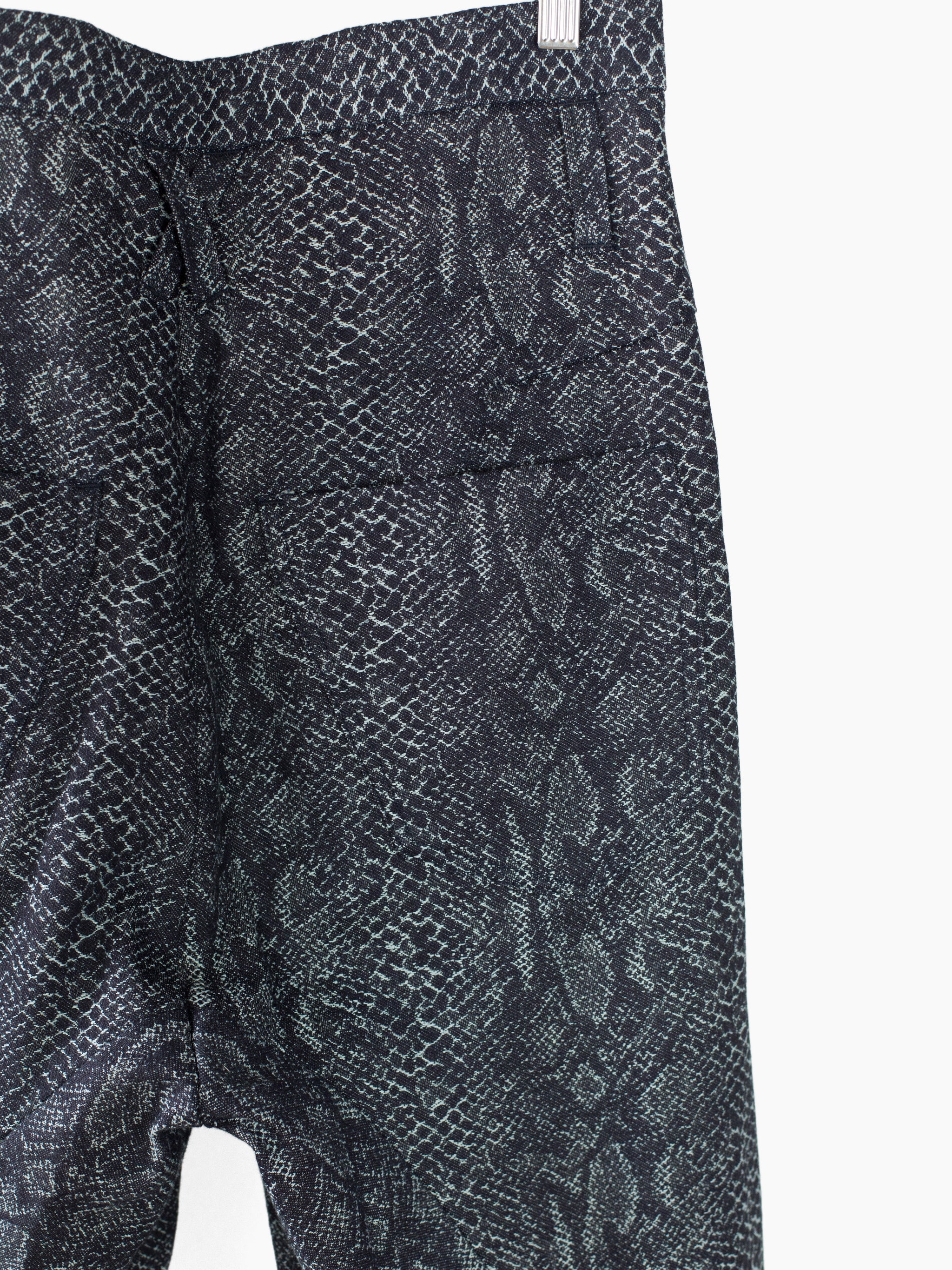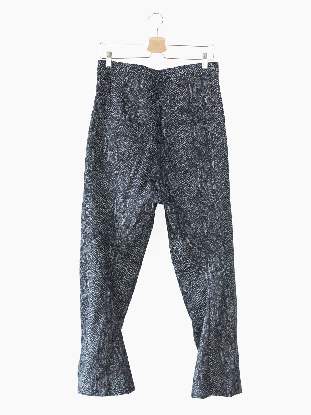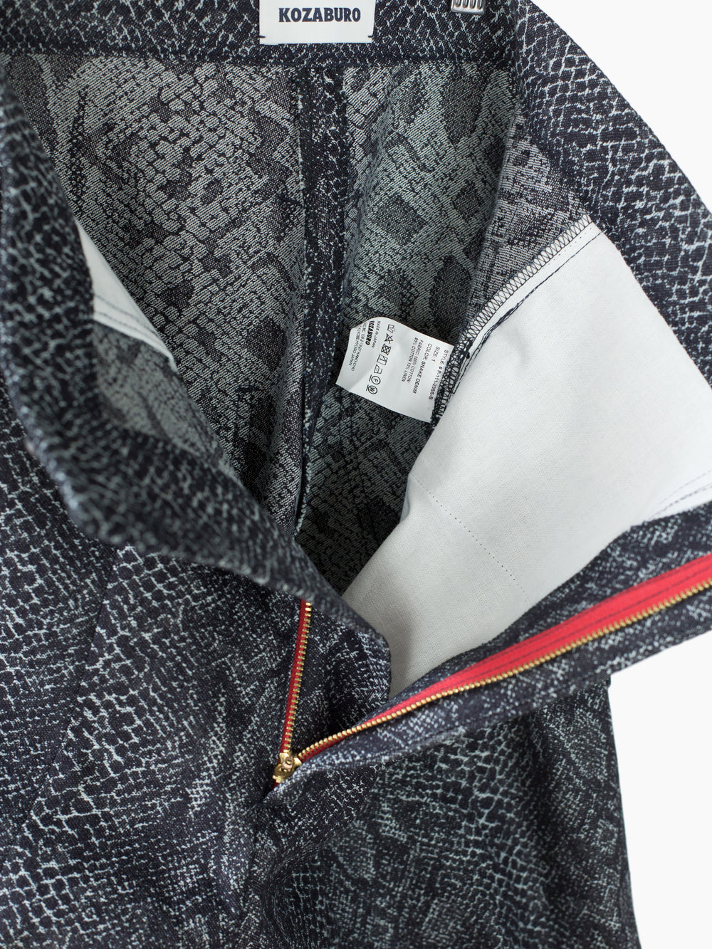 The classic Kozaburo 3D Tailored trouser rendered here in a decorative snake-scale open weave jacquard that's perfect for warmer weather, featuring a front seam and curved back shifted 'inseam' that create a bent leg profile and spiraling, dynamic leg shape. The hem cants backwards and has a slight flare, creating a trouser that changes constantly while in motion.
