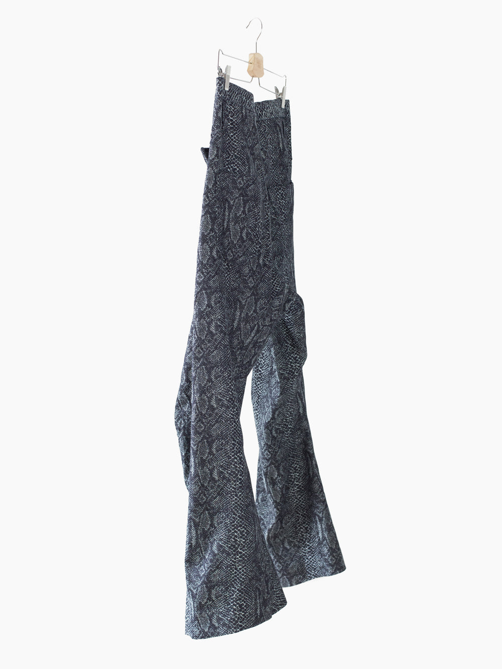Fit Notes: Cut with extra high rise, slim fit through the hips, and regular fit through the legs. Cut with curved/canted leg profile, slightly cropped length, and dramatic kick flare at the hem.