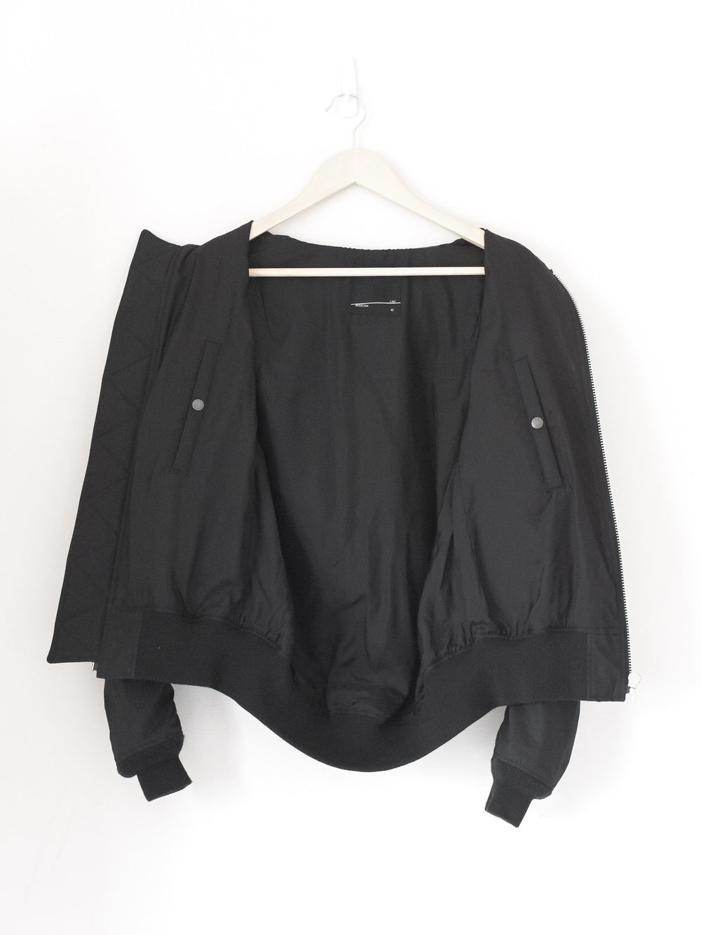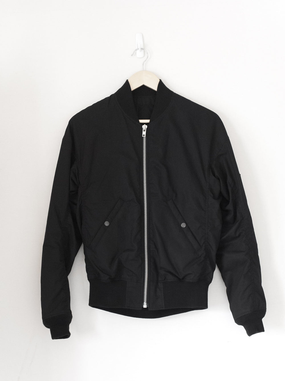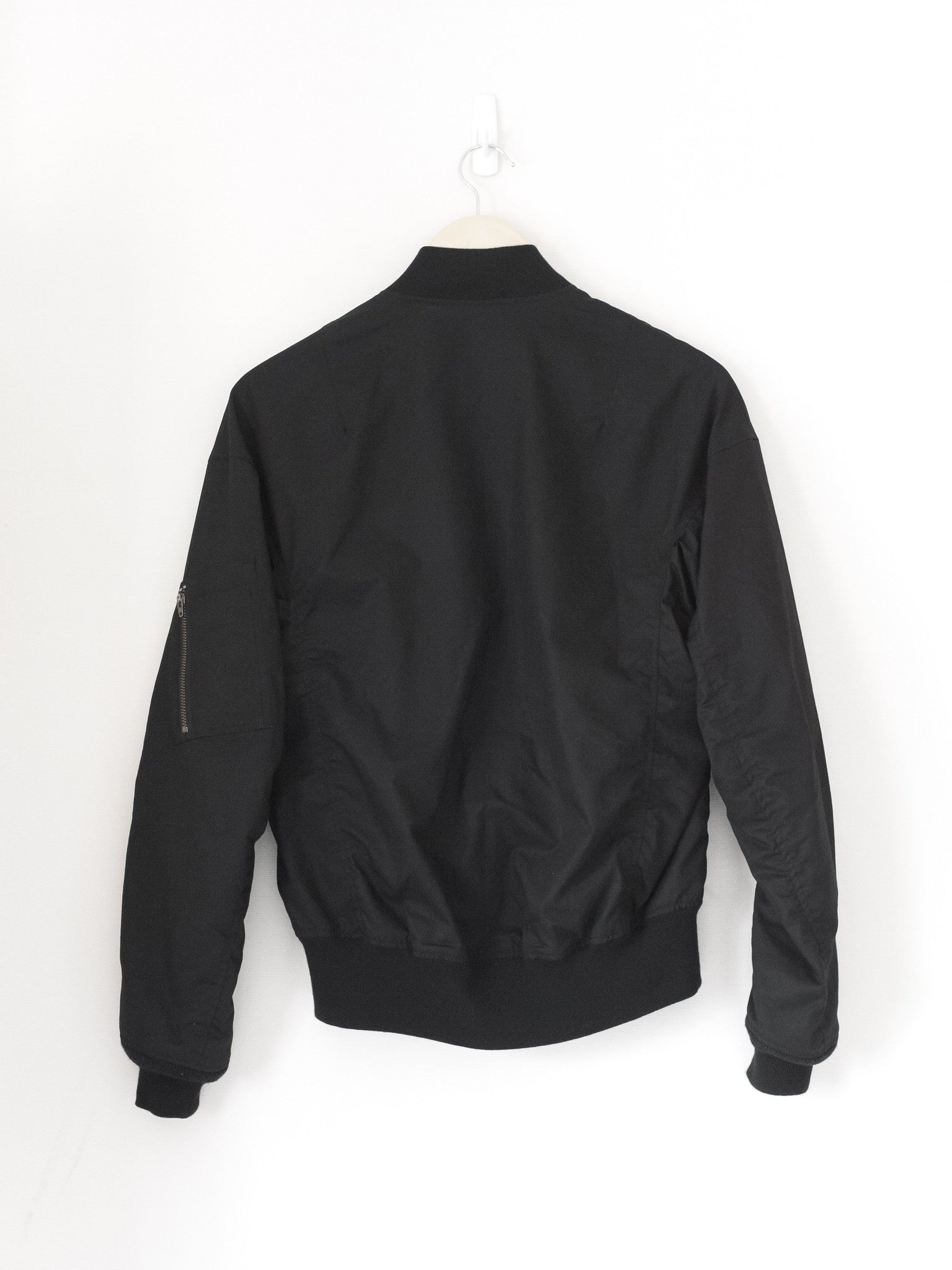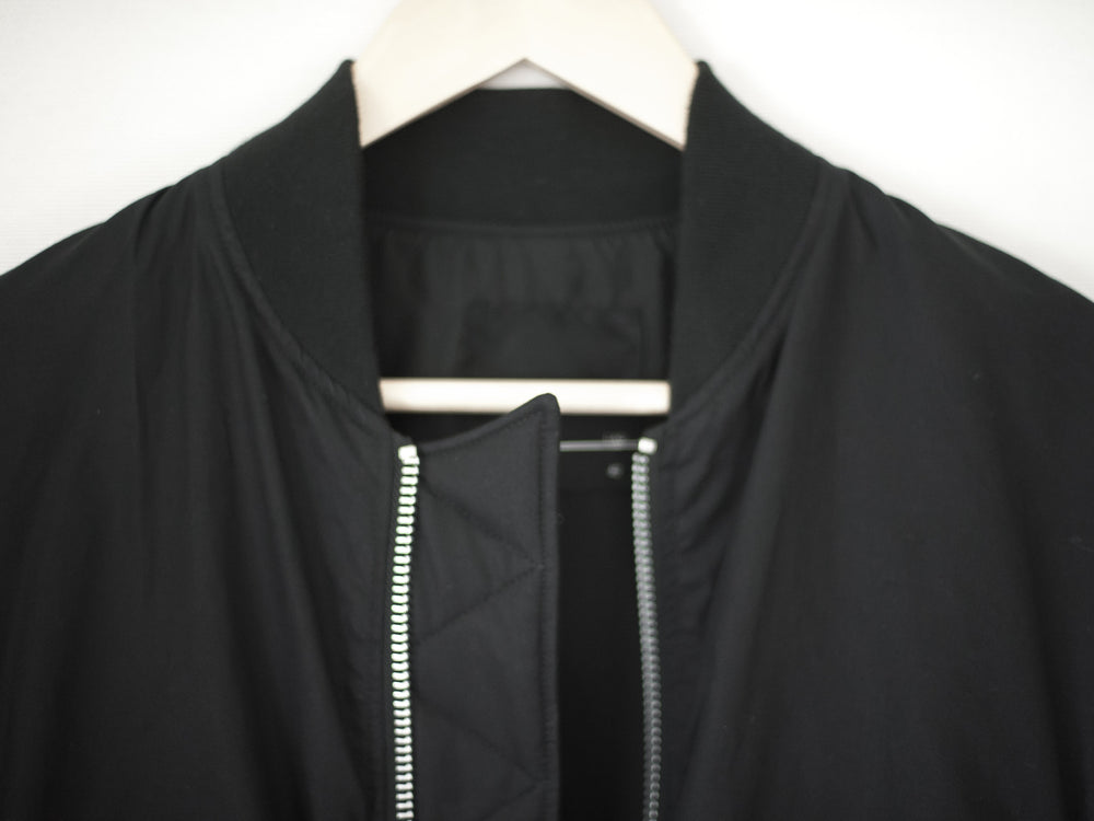 Beautiful MA-1 bomber by Lad Musician, with their characteristic angled windflap. Lightweight and mildly structured but unpadded, it creates a wonderful silhouette from its cinch stitched sleeves, lack of armpit seams, and tight ribbing. Other details include double internal chest pockets, full cupro lining, and double gauge knit cuffs. Retail ¥39,900. Made in Japan. 9.5/10 condition, no flaws.
