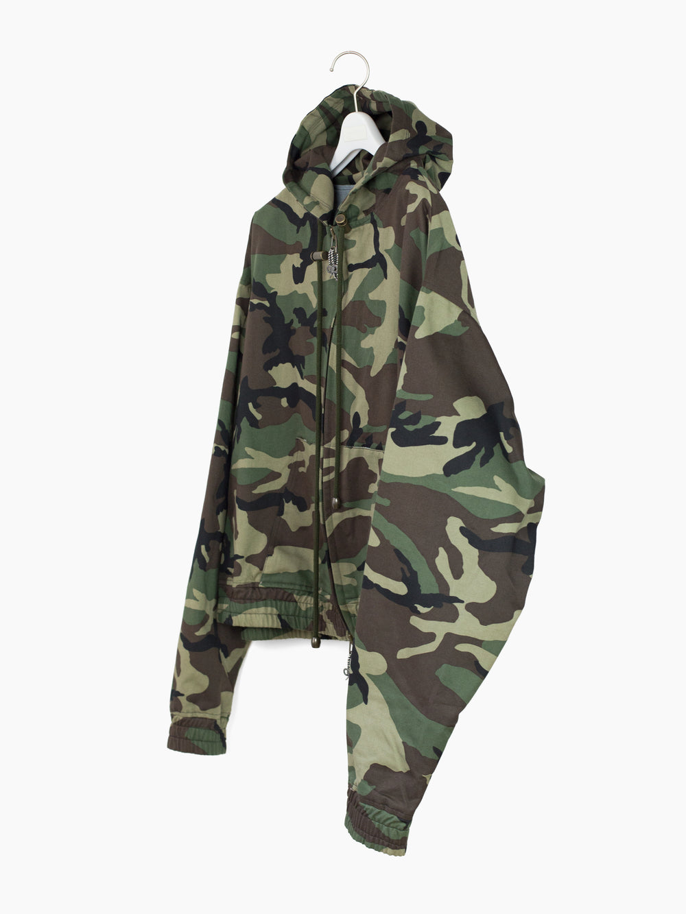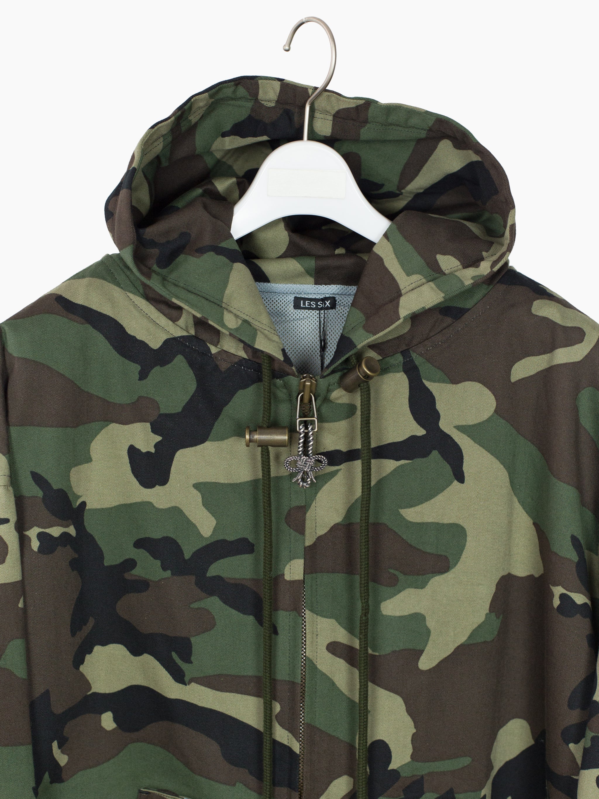 Cotton twill, mesh lined zip hoodie with oversized doublezip front closure and Les Six signature .925 Sterling Silver braided charm pulls. Self-fabric encased elastic hem and cuffs. Extended hood drawstring with brass-tone aglets and stoppers.