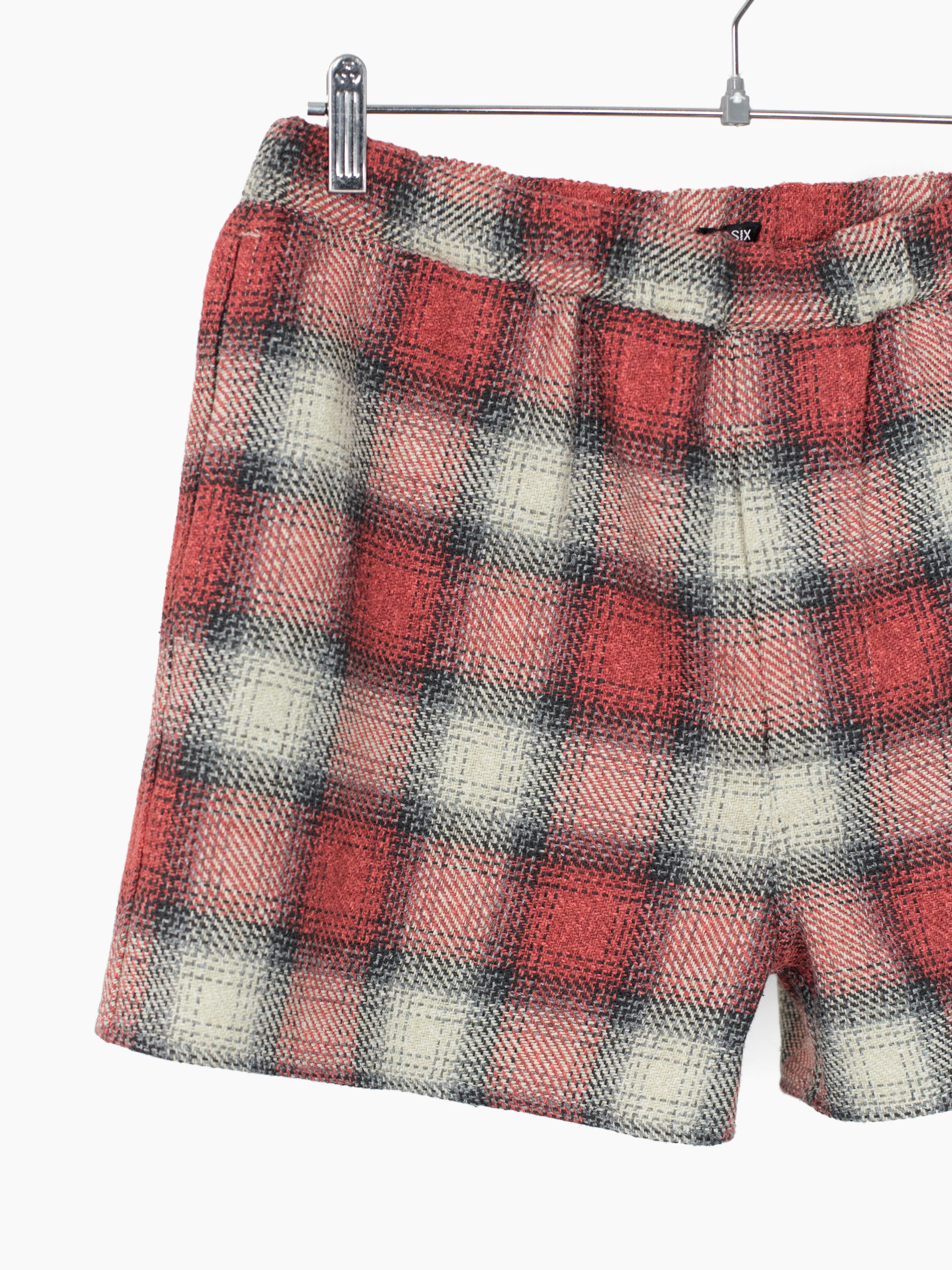 Substantial basketweave check 'boxer' shorts with hidden 2-button fly and complete with side slash pockets for complete outdoor wearability.
