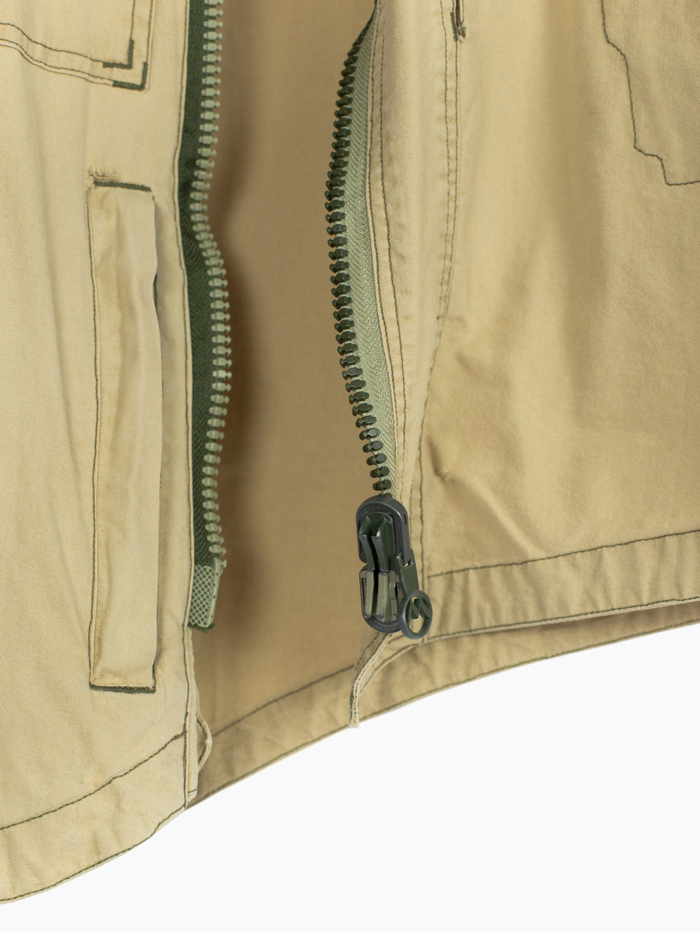Made in the UK 7/10 Condition, with no rips or tears. Some small spots throughout. Missing bottom zipper pull on two-way zipper. Camo piping at the neck has worn through in places.