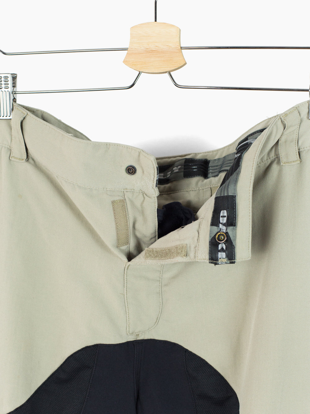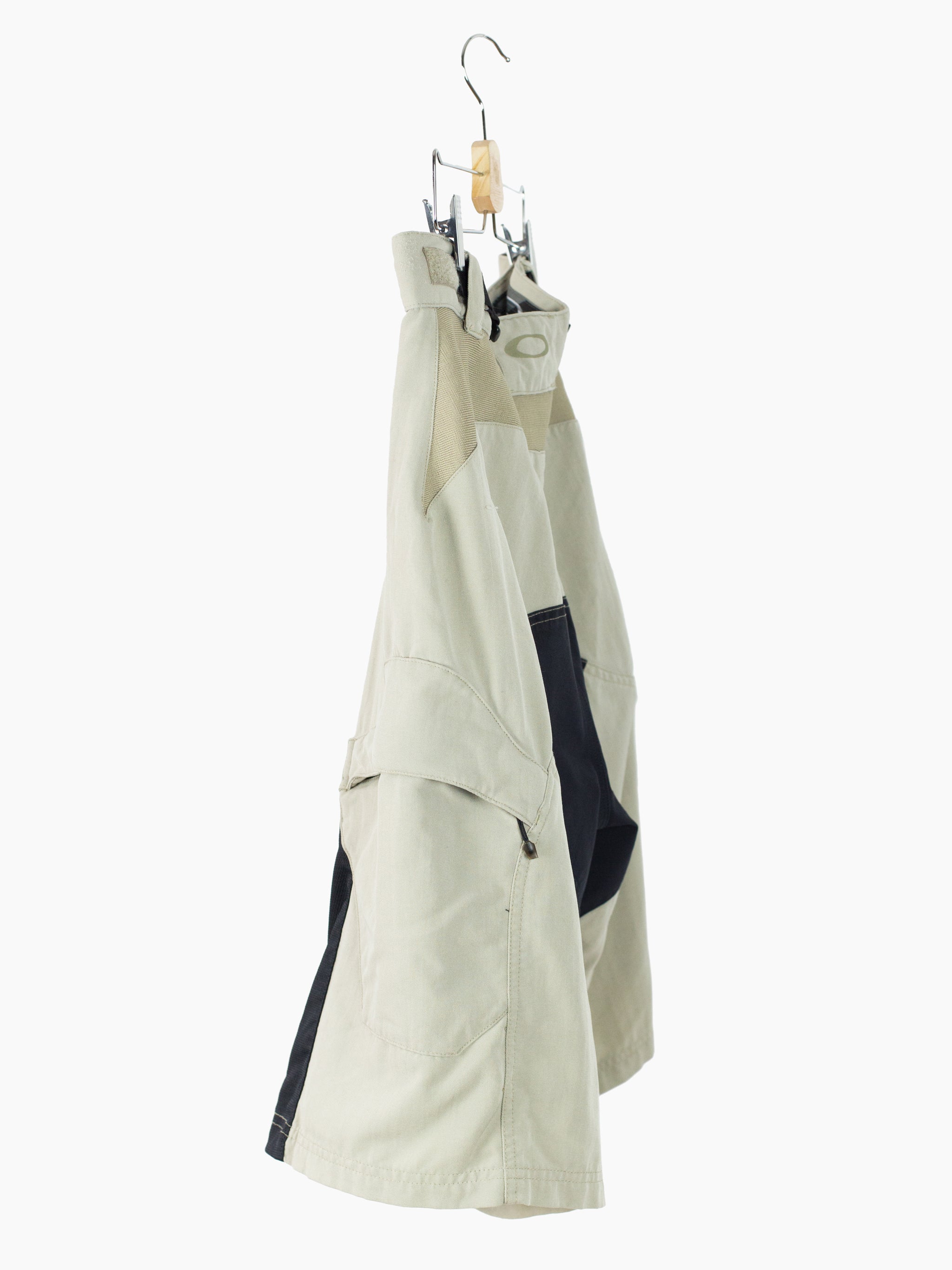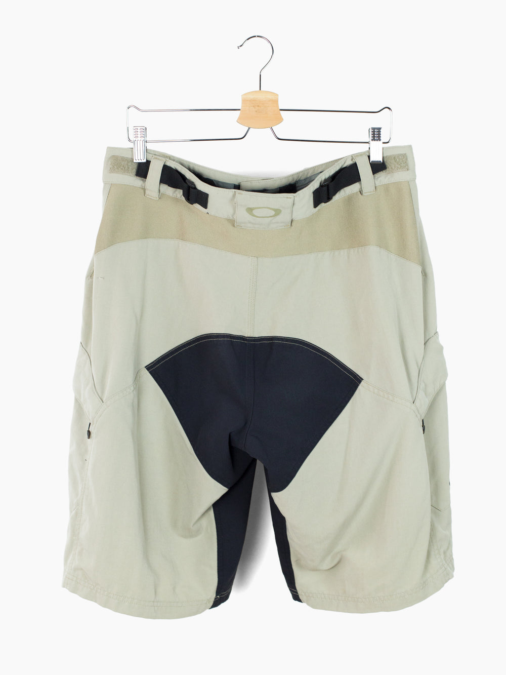 Composite utility shorts from Oakley, featuring curved panel construction with mesh inserts at the front and back yoke, as well as two side cargo pockets. The zippers on these pockets are set curved and, because of that, pop open when unzipped. This ingenious design choice makes the pockets exceedingly easy to access.