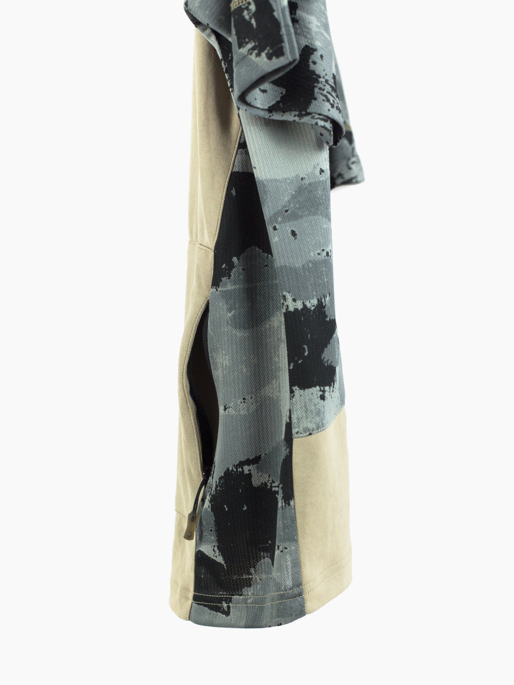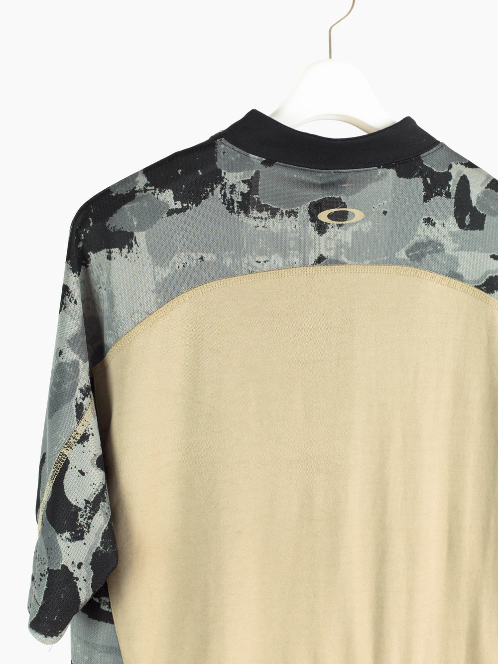 Composite panel trail top from Oakley, featuring technical wicking polyester and open polyester mesh fabrics strategically placed for ventilation. Curved geometries and colorblocking throughout call back to Oakley footwear. Zippered mock neck and slim sleeves add to the performance-forward, aerodynamic look. Single zippered side entry pocket at the back allows for discrete and easily accessible storage.