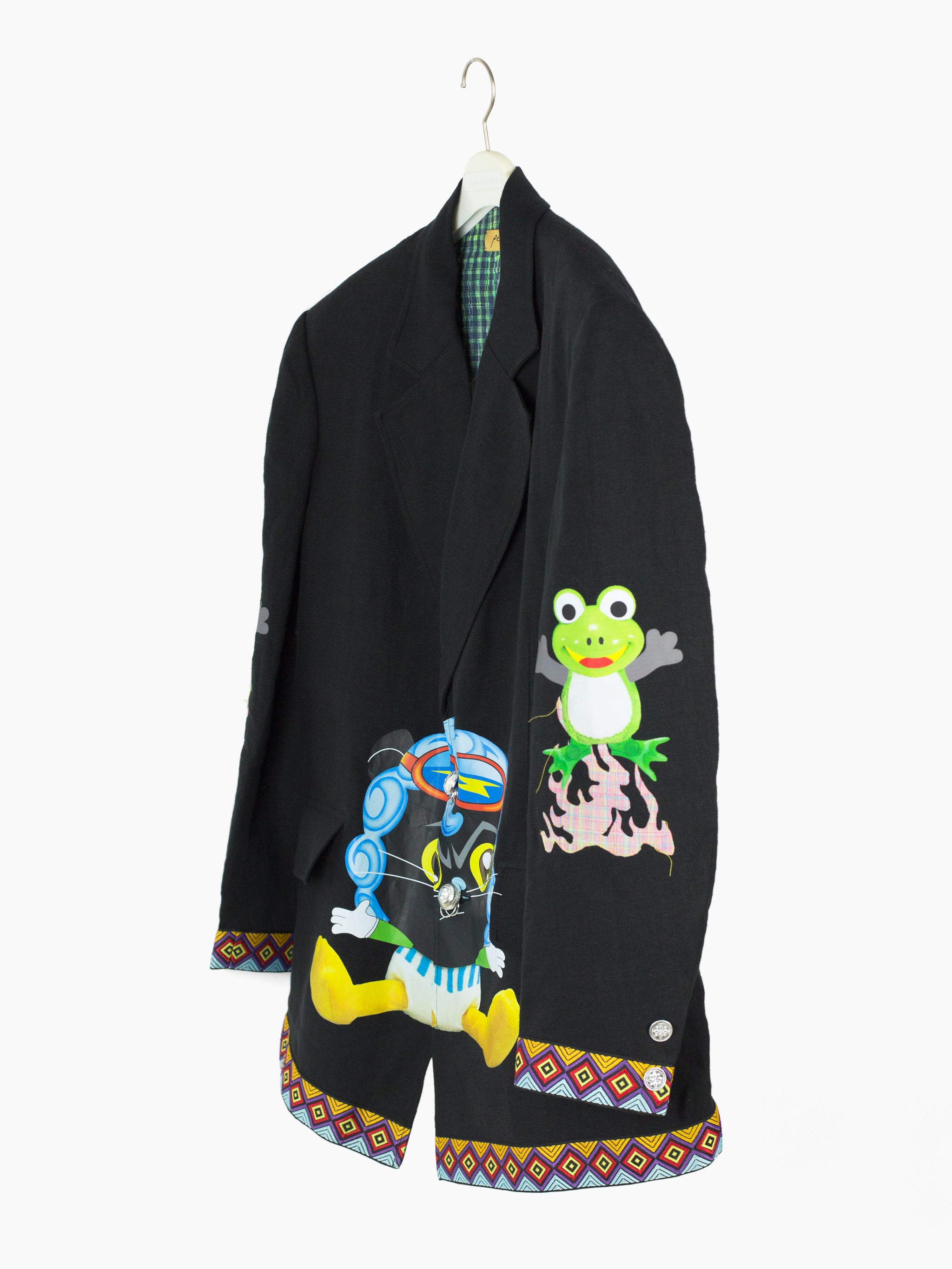 Fit Notes:Tagged a size medium, fits oversize. Oversize padded boxy shoulder with roomy cut in body and sleeves. Can easily suit a range of sizes from S-XL depending on desired fit. Measurements:Shoulder: 20”Chest: 23.5”Length: 31.5”Sleeve Length: 25.5”