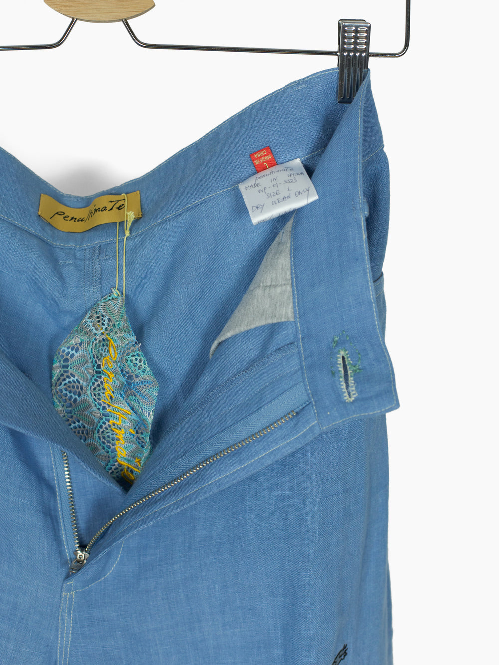 Fit Notes:Fits small to tagged size in the waist with long rise and wide cut through the legs.