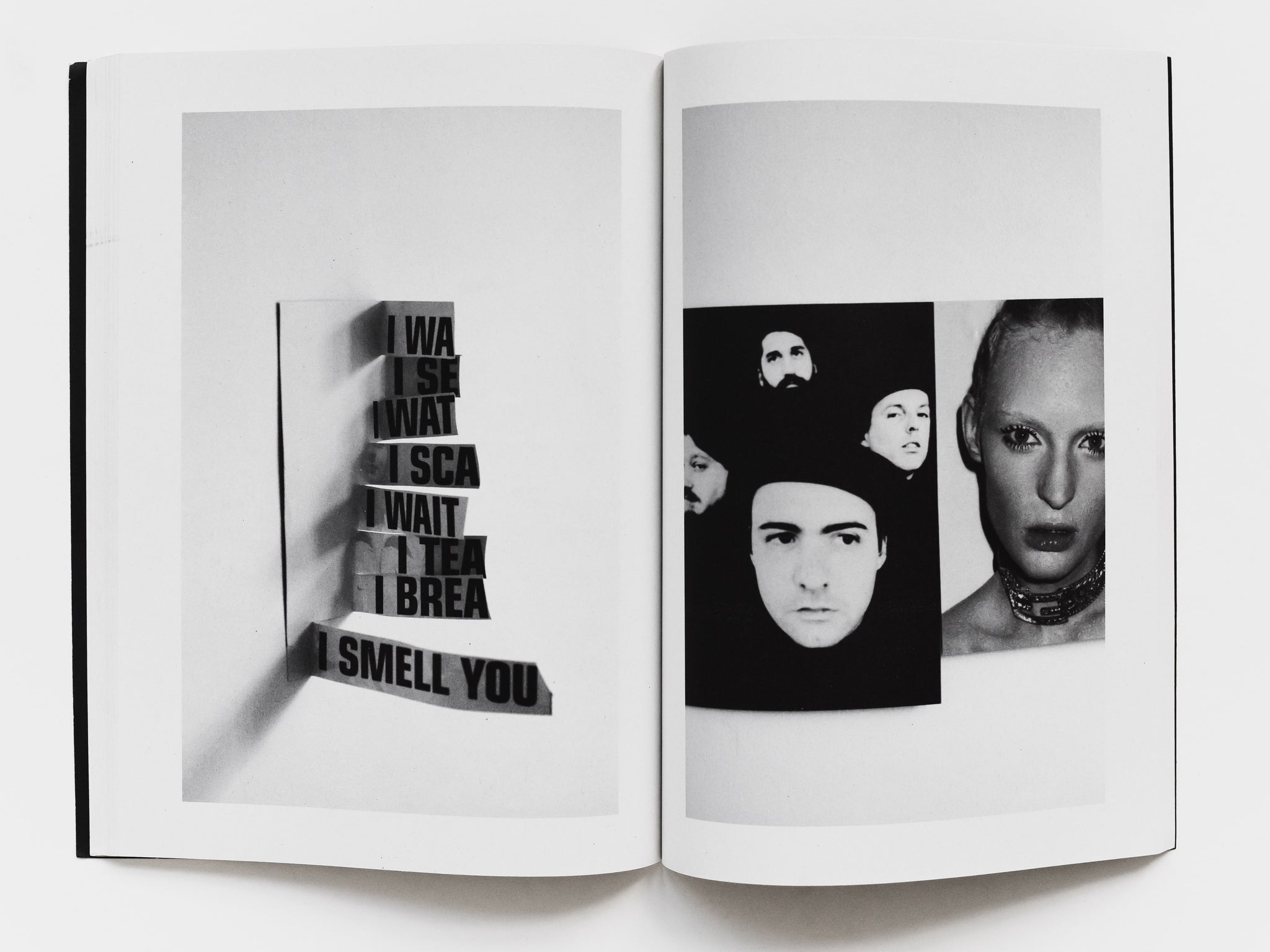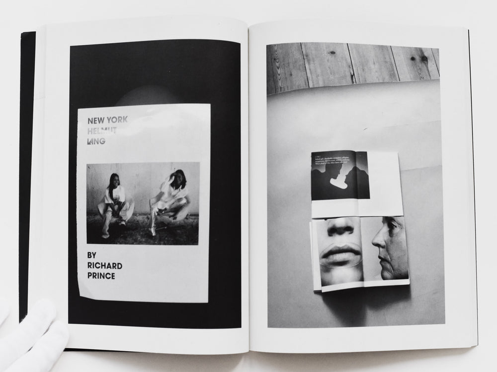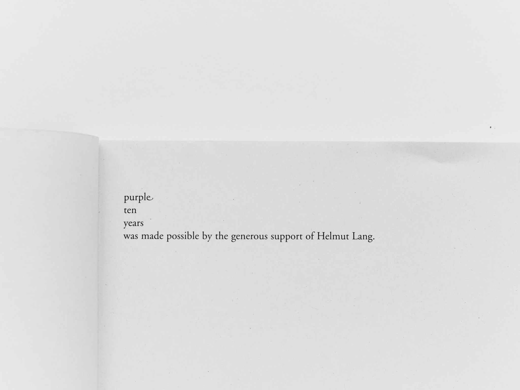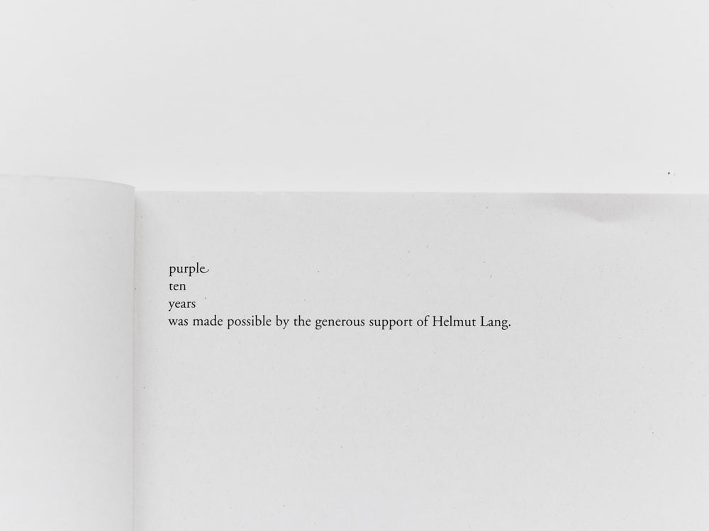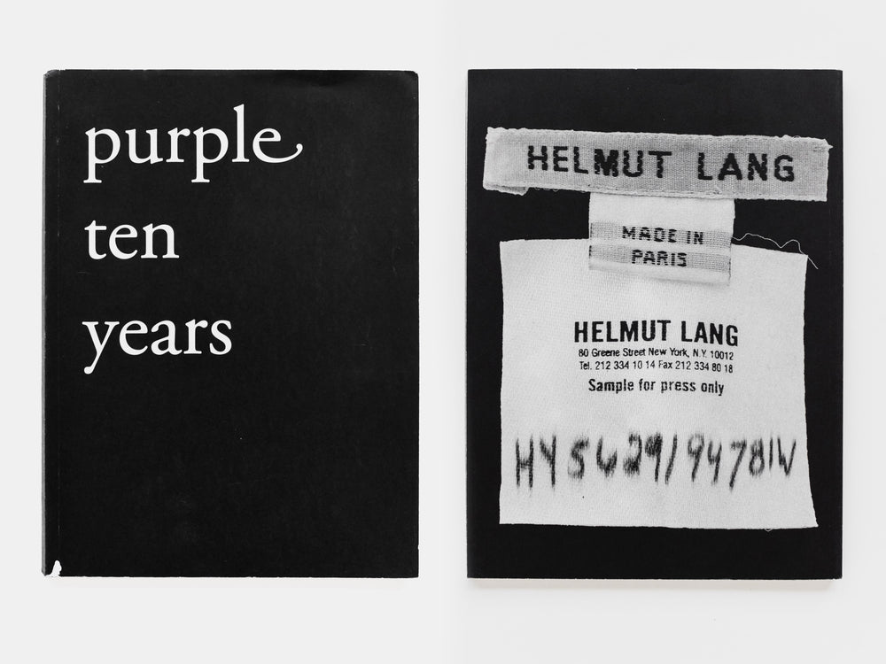Rare magazine from 2002 funded by Helmut Lang featuring a collage of images and excerpts from past issues of Purple.