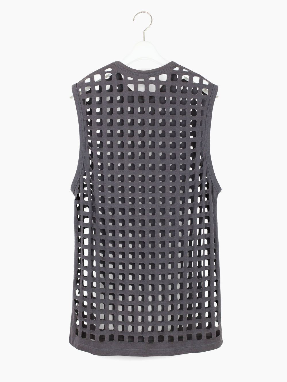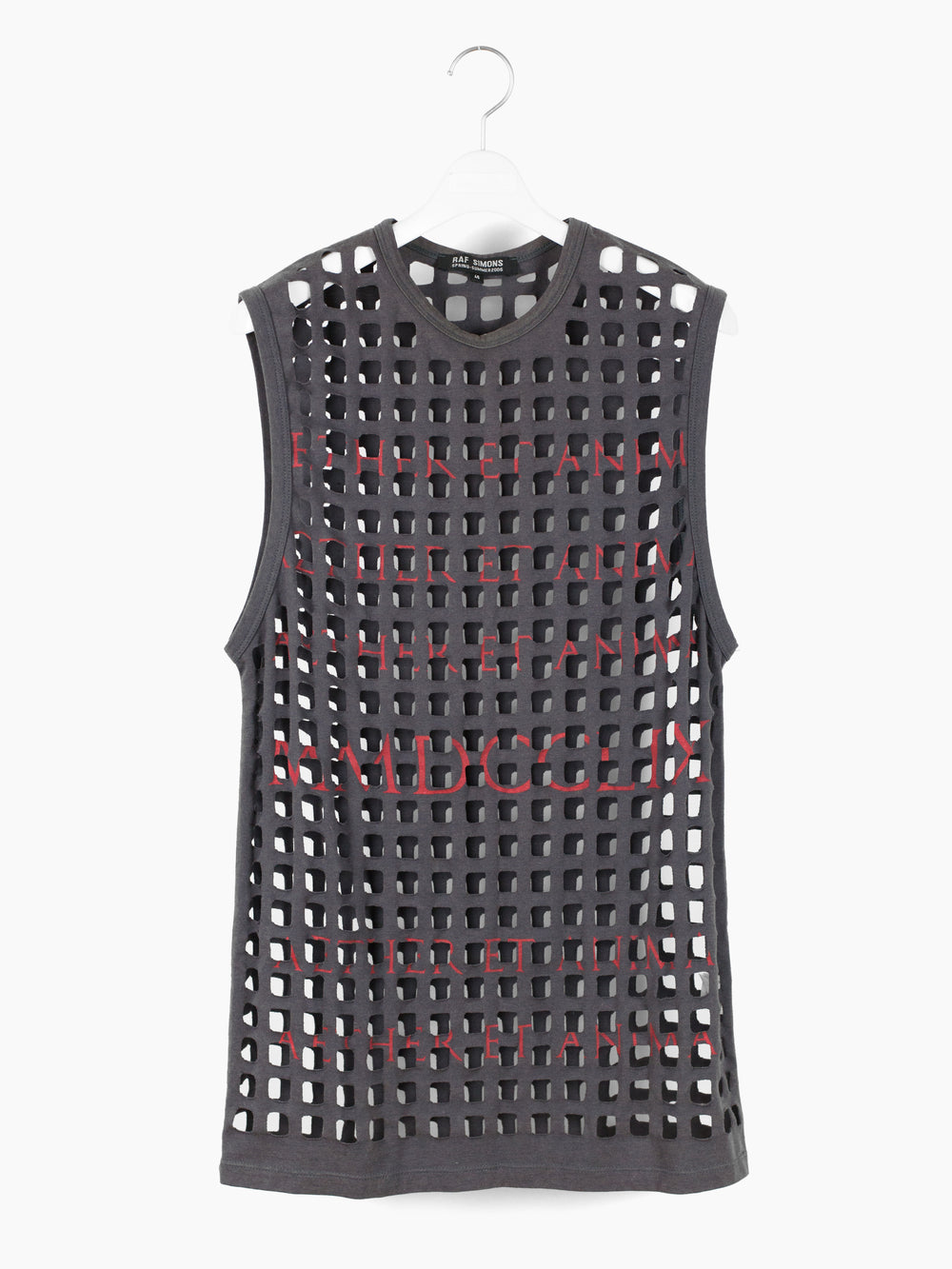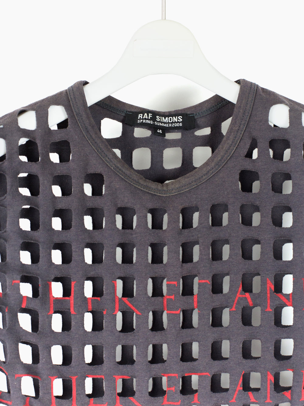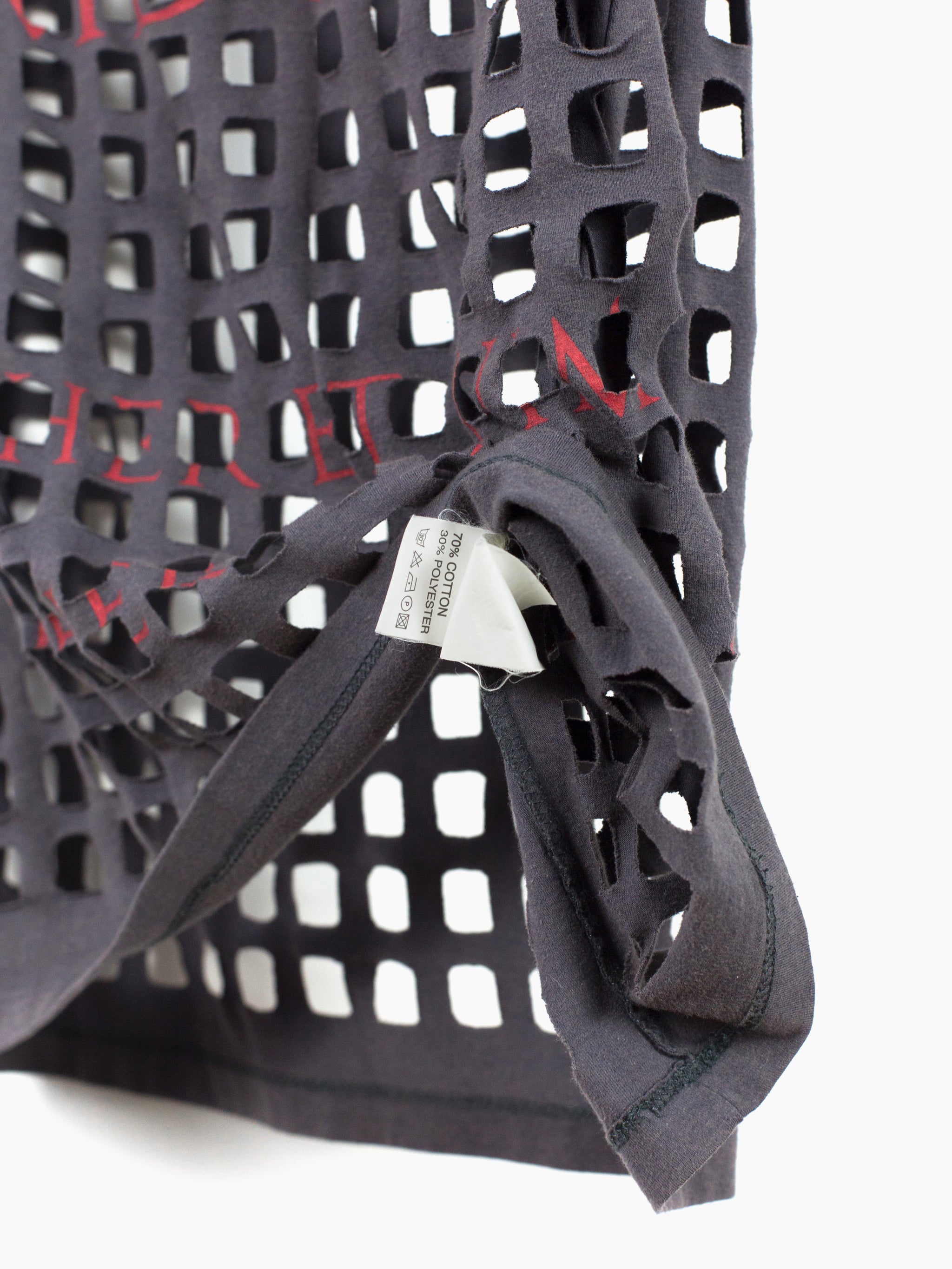 Made in Belgium 7/10 Condition, with no rips other than the intentional cutouts. No notable stains. Fading is present throughout, especially at high wear areas like collar and armholes.