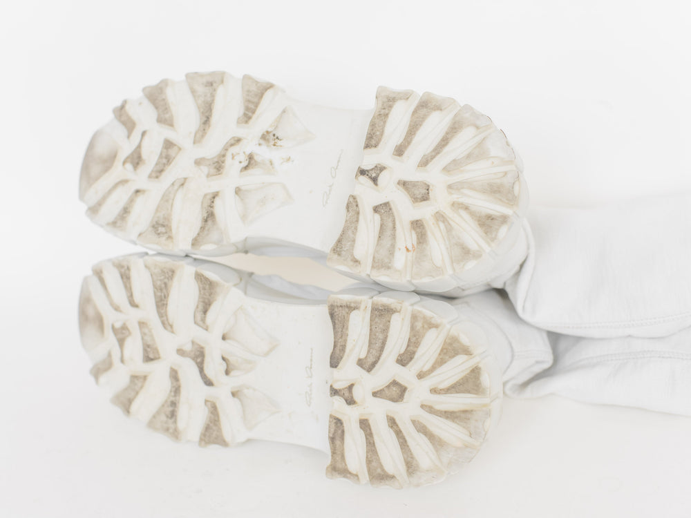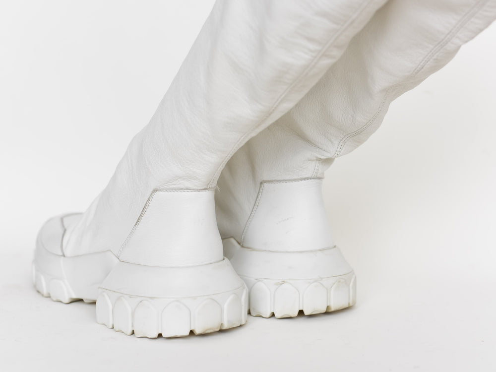 Incredible boots with an exaggerated silhouette Rick Owens is famous for, featuring the tractor style sole with stretch leather uppers. The uppers can be adjusted to sit higher or lower, making these very versatile.