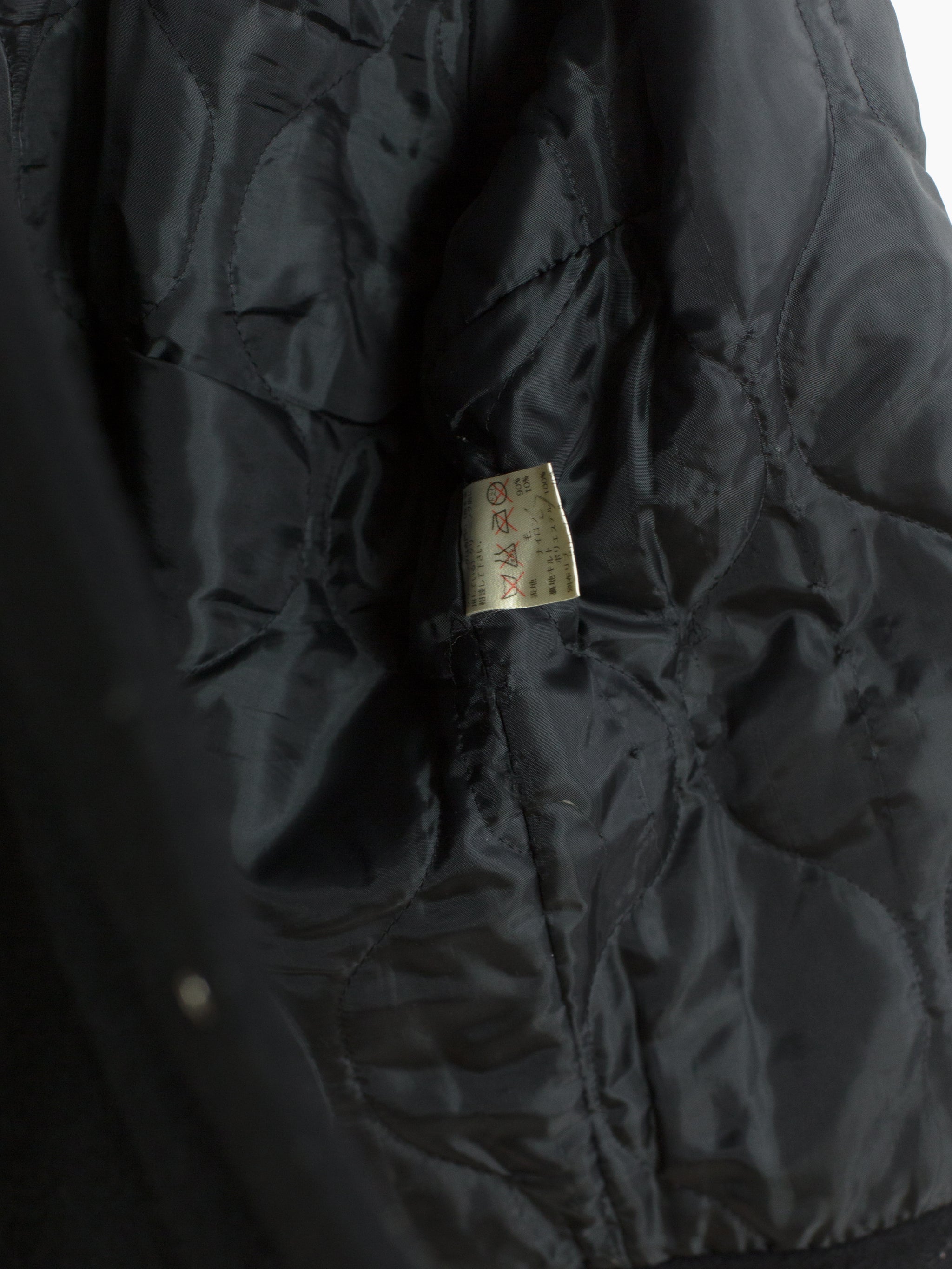 Made in Japan 7/10 Condition, with no stains or tears. Some small spots in the wool body that have worn down a bit and pilling throughout as well as lint/dirt in the fibers that can be cleaned. Some aging of the leather sleeves is present. Please see pictures for the extent of wear.