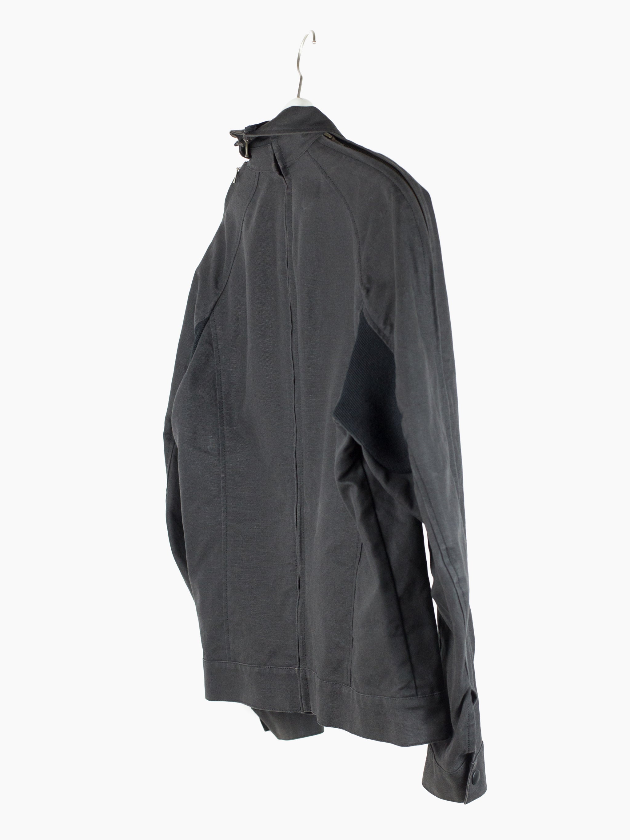 Fit Notes:No tagged size but fits around a men's Medium with a slim fit in the body. With zippers opened the piece can fit up to a size large.