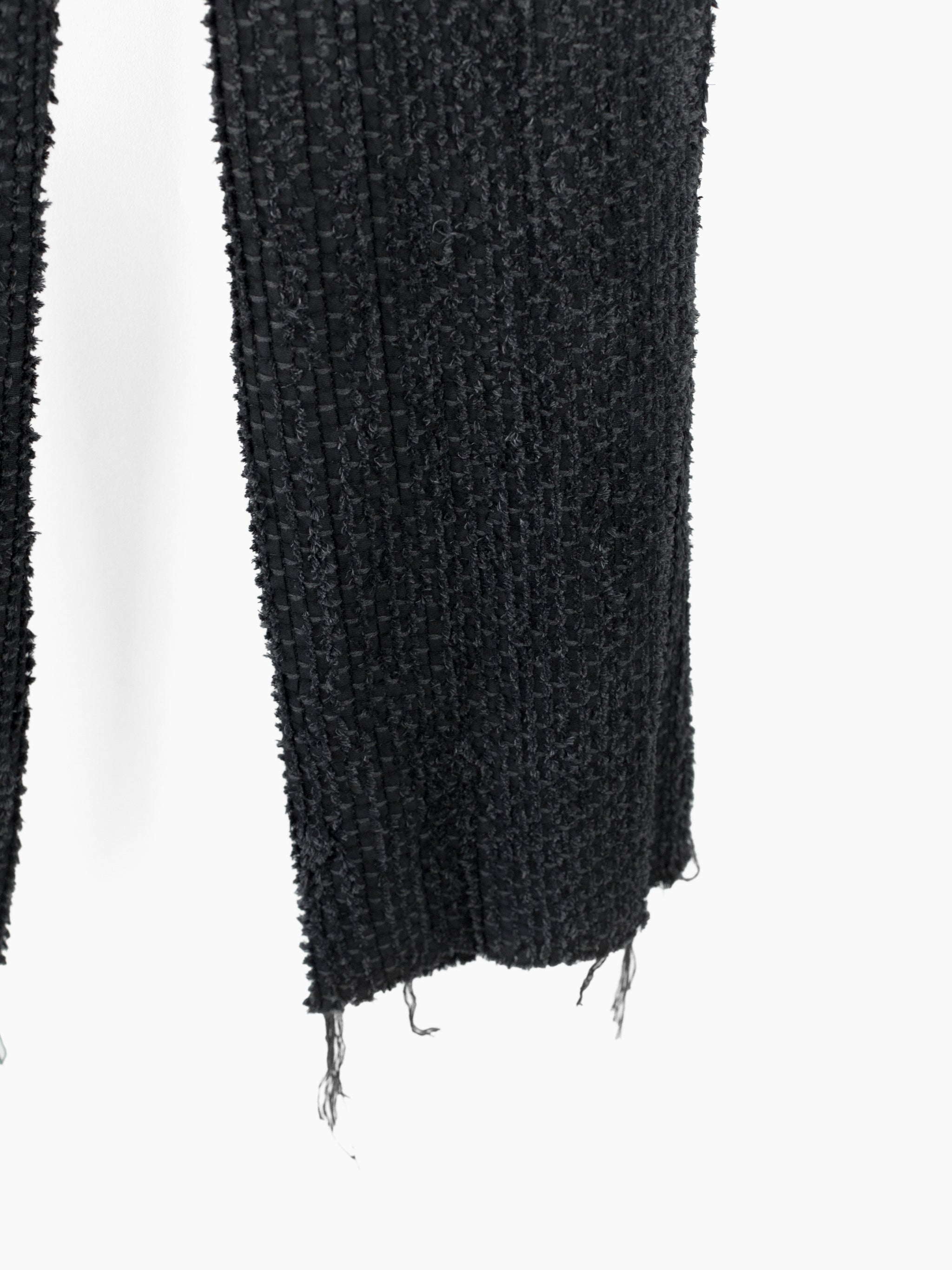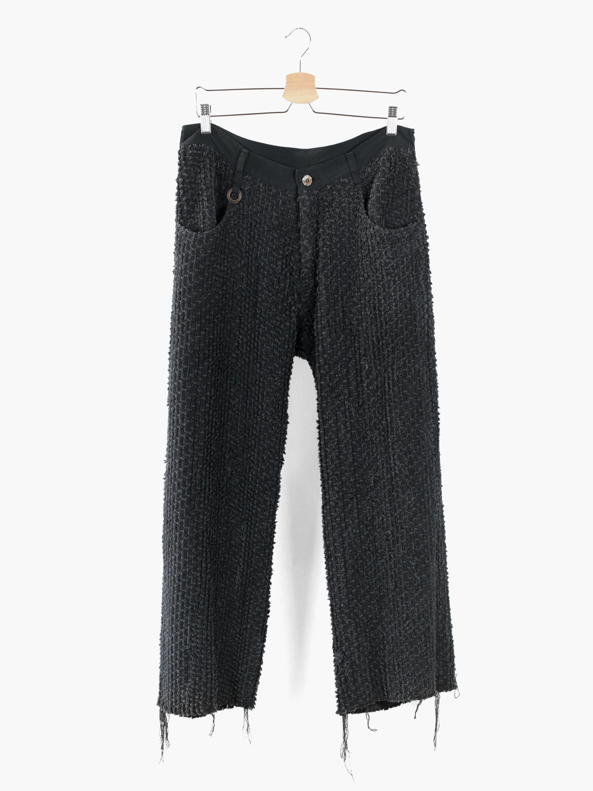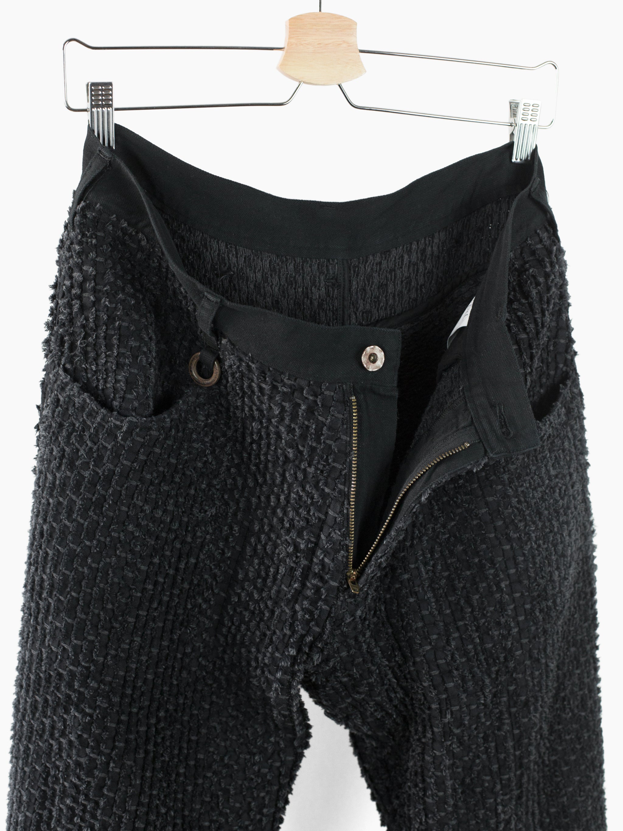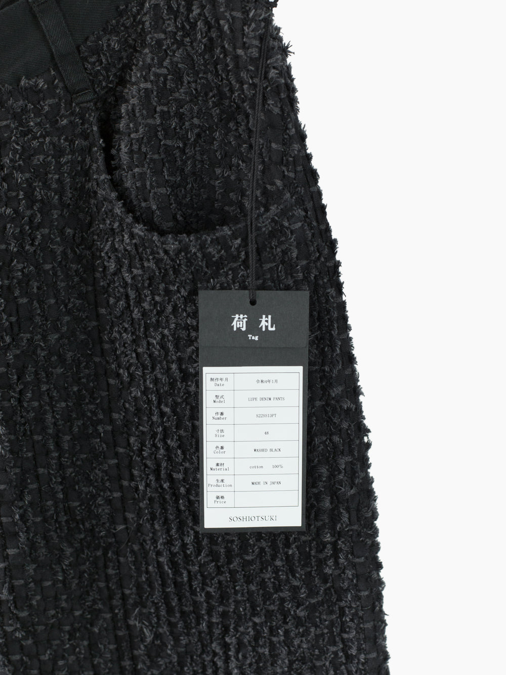 Soshiotsuki's 'Lupe' Denim is a take on traditional Japanese Sakiori hand-woven fabric, here using strips of shredded denim to create a noisy, grungy texture. The fabric balances substantial thickness and plush softness for something that feels equal parts protective and cozy.