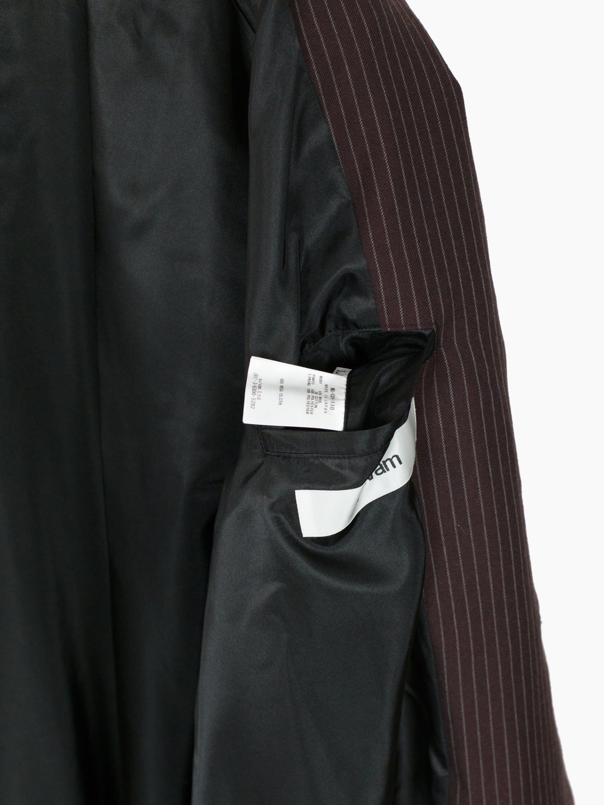 Center button front closure, notch lapel, faux 'flap' pocket construction, asymmetrical darted construction, functional button cuffs, segmented poly/lace full lining and two interior welted chest pockets.