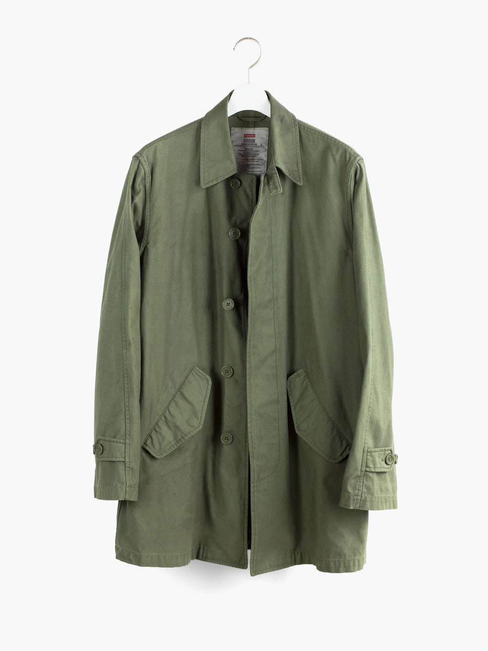 The archetypical Mac style coat from Supreme, cut in a hefty cotton-nylon blend with plenty of structure, a no-nonsense throw on and go coat that’s as easy to wear as it is protective. Pigment Overdyed by @eddie.3dm with a combination of soot and mud for a worn in earth tinted look