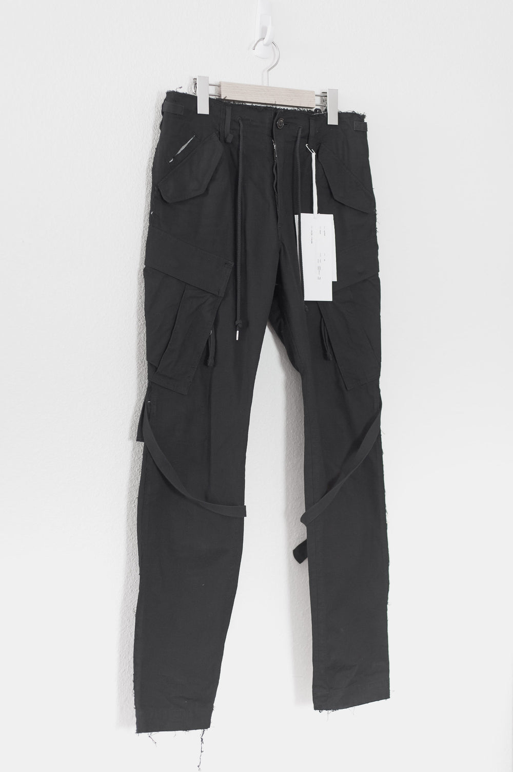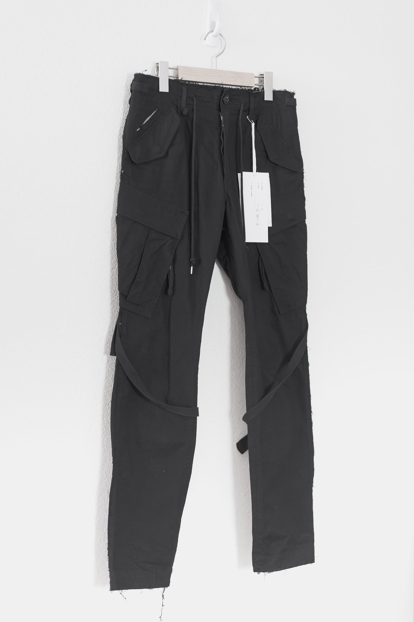 Incredible pair of pants from 15SS featuring Takahiro Miyashita's characteristic deconstructed raw seams and bondage straps throughout. Details include waist buckle straps, thigh straps, calf buckle straps, zip & flap cargo pockets, coin pocket, drawstring waist, internal doobie pocket and more!! Comes with tags. Retails for $784. Made in Japan. 10/10 condition, no flaws.