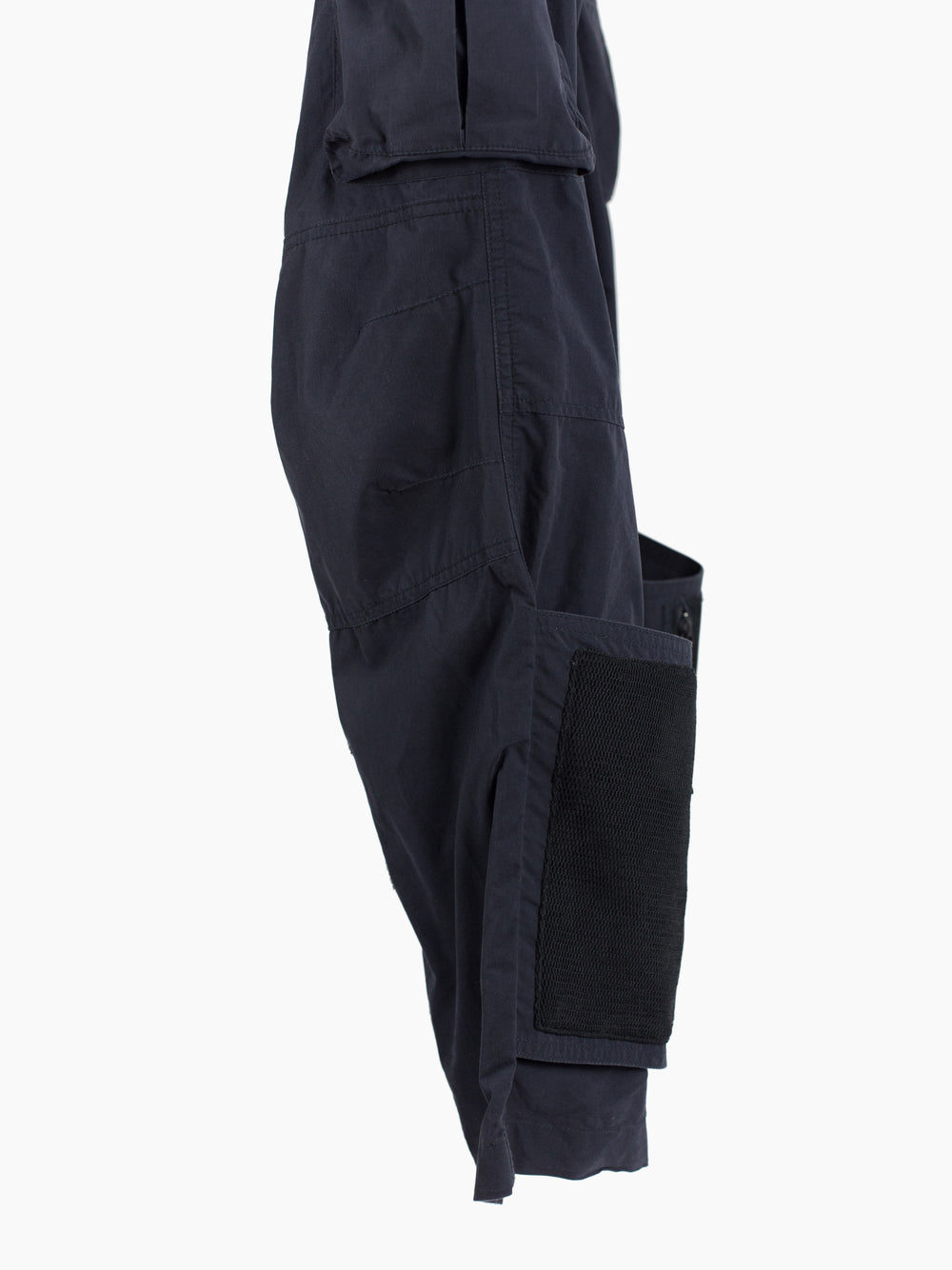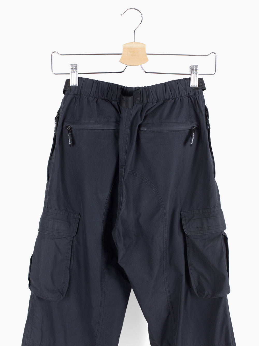 Finished with elastic + belted waist and velcro fly closure, gusseted 3D cargo pockets at the thigh, articulated knee, double face fabric reinforced seat and inner leg, and zippered waist + back pockets.