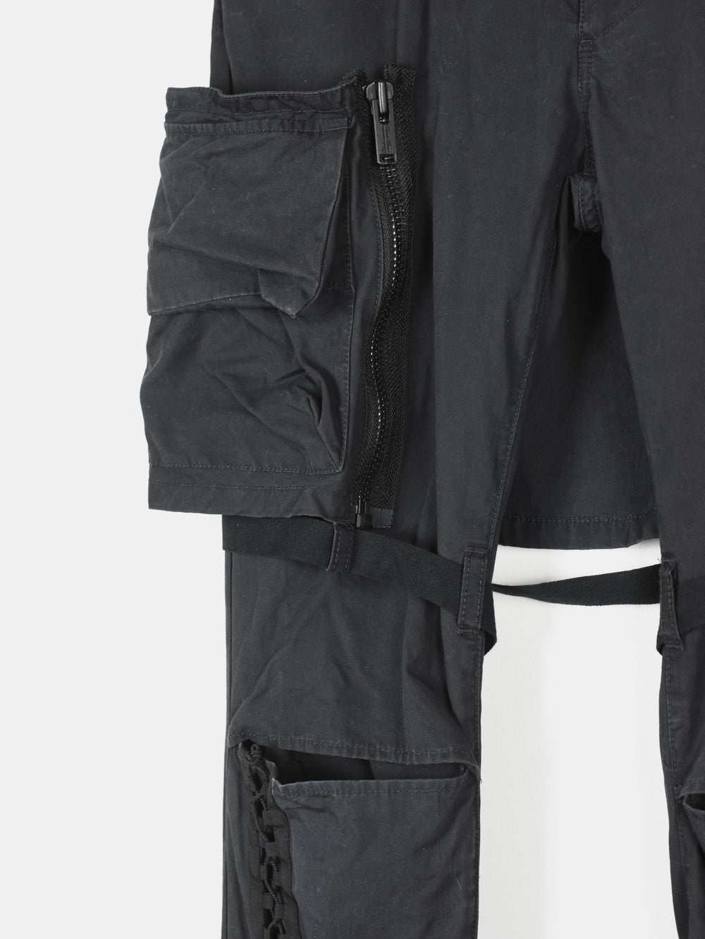 The entire panel / cargo pocket section is detachable and the leg width adjustable, allowing these pants to be worn in numerous ways.