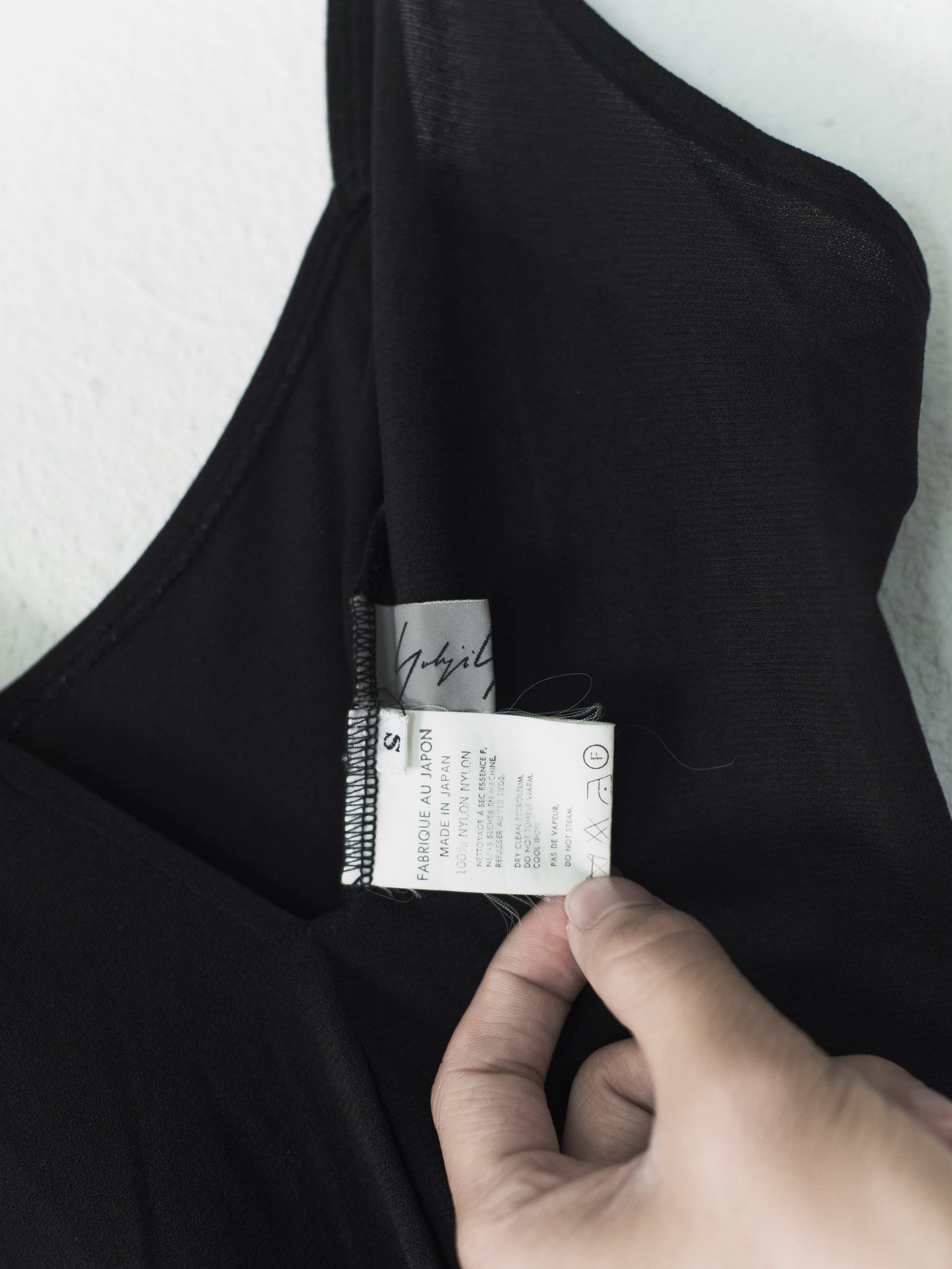 Beautiful Yohji dress composed of a thin lightweight nylon that drapes and falls with ease from mainline Yohji Yamamoto.