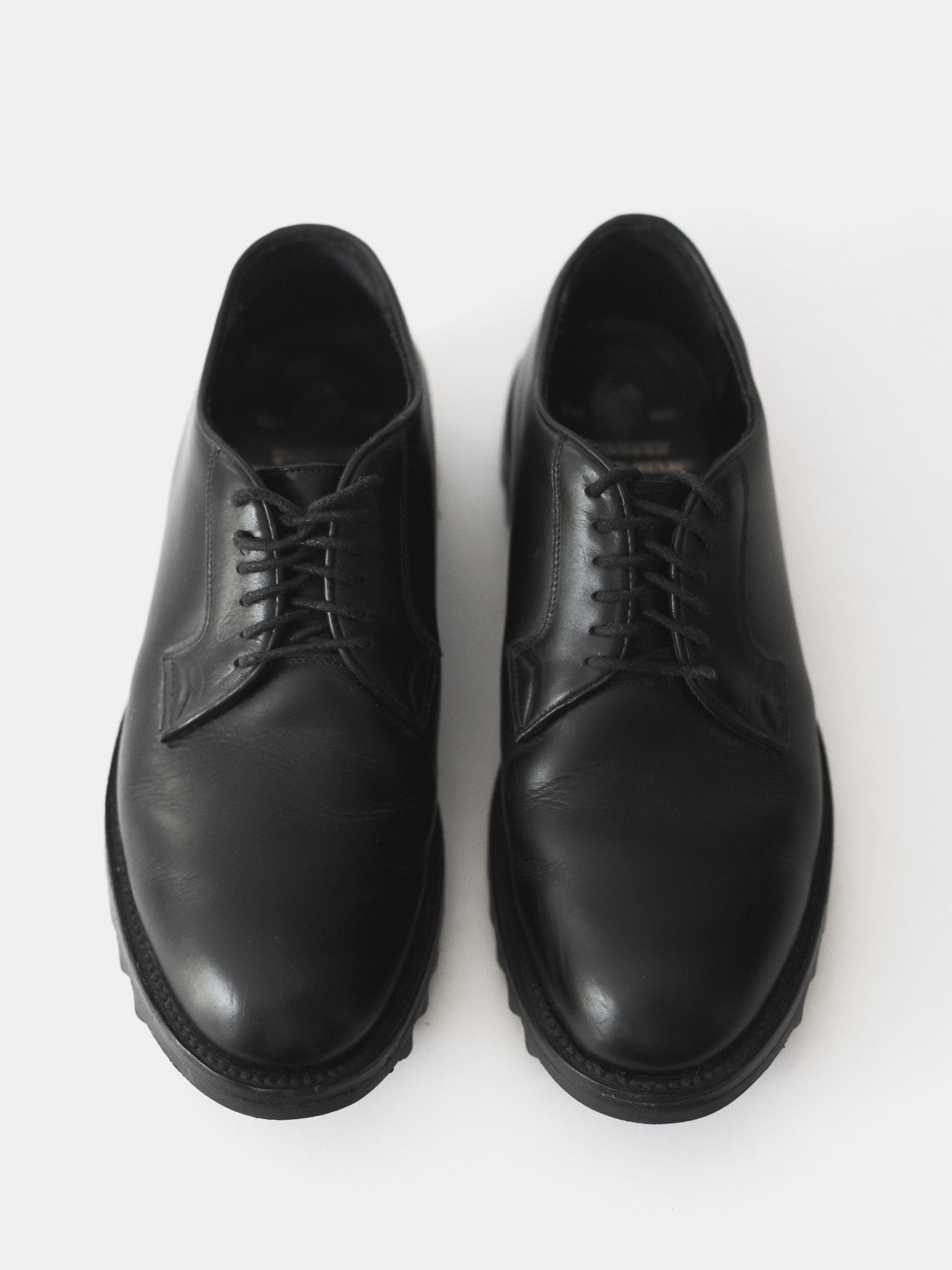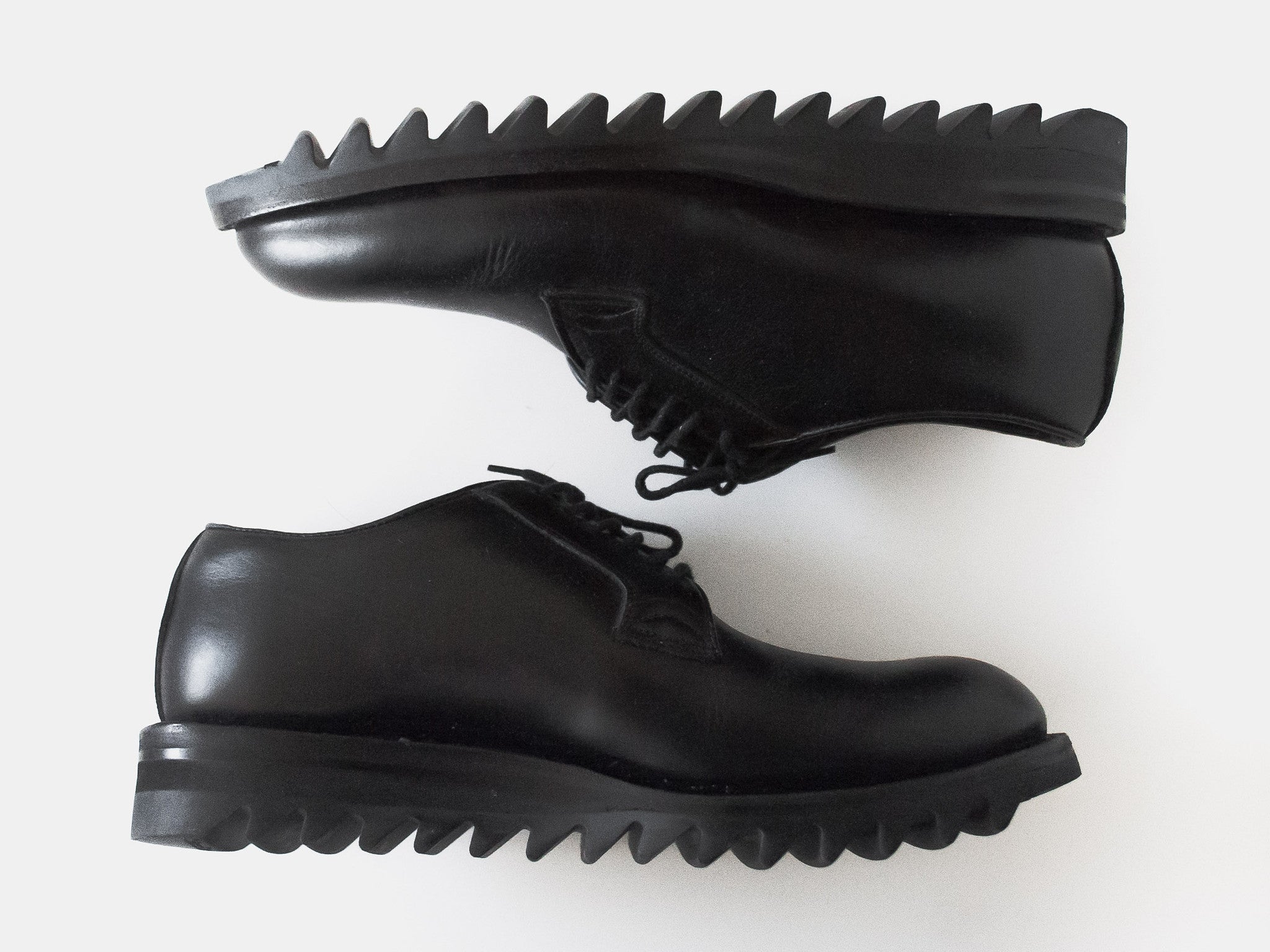Really cool minimal derbies by Yuketen with a solid chunky Vibram ripple sole. Goodyear welted. 9/10 condition, slight creasing on the toebox as pictured, very little wear on soles, box included.
