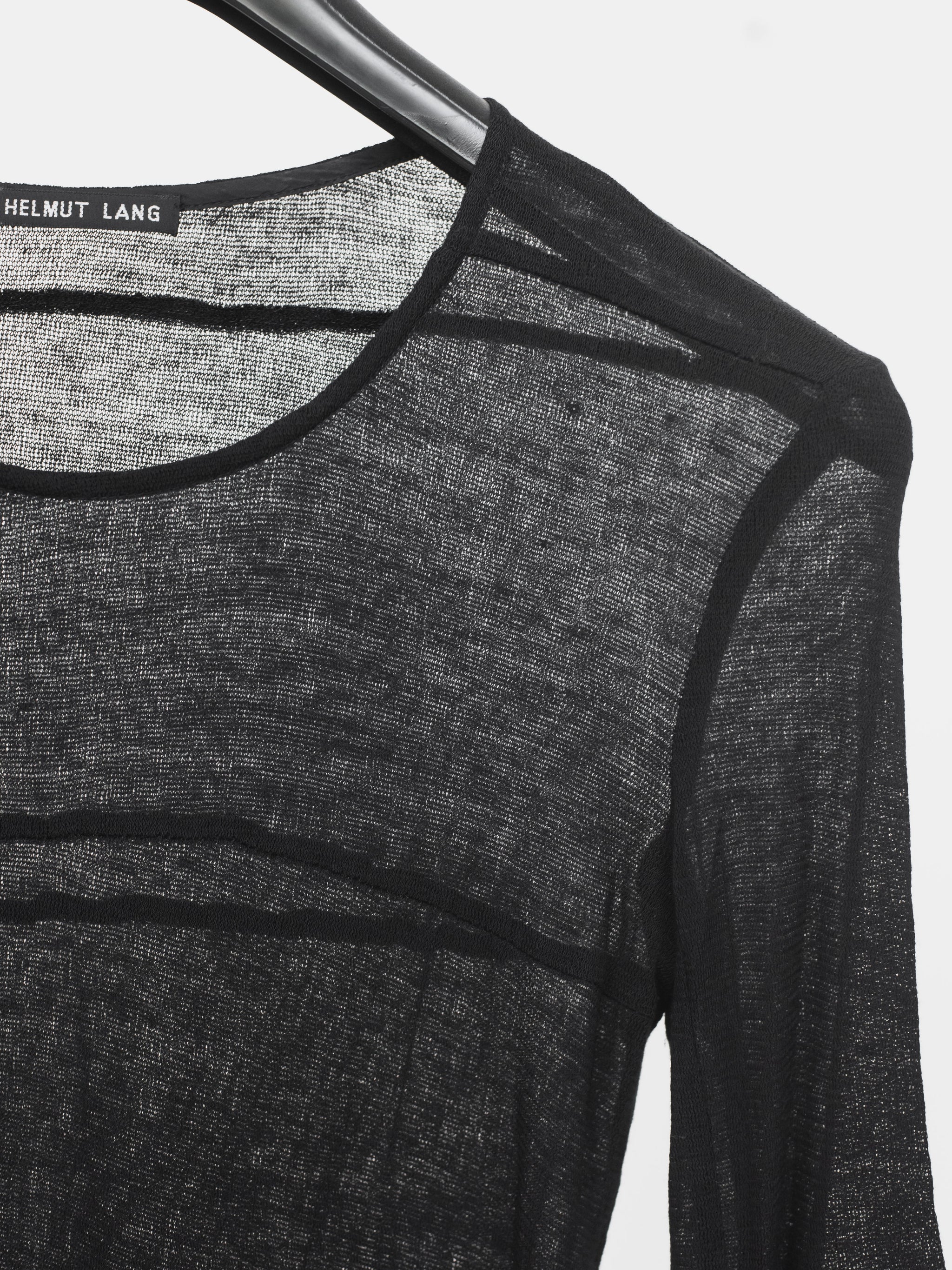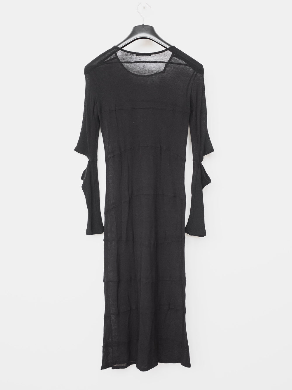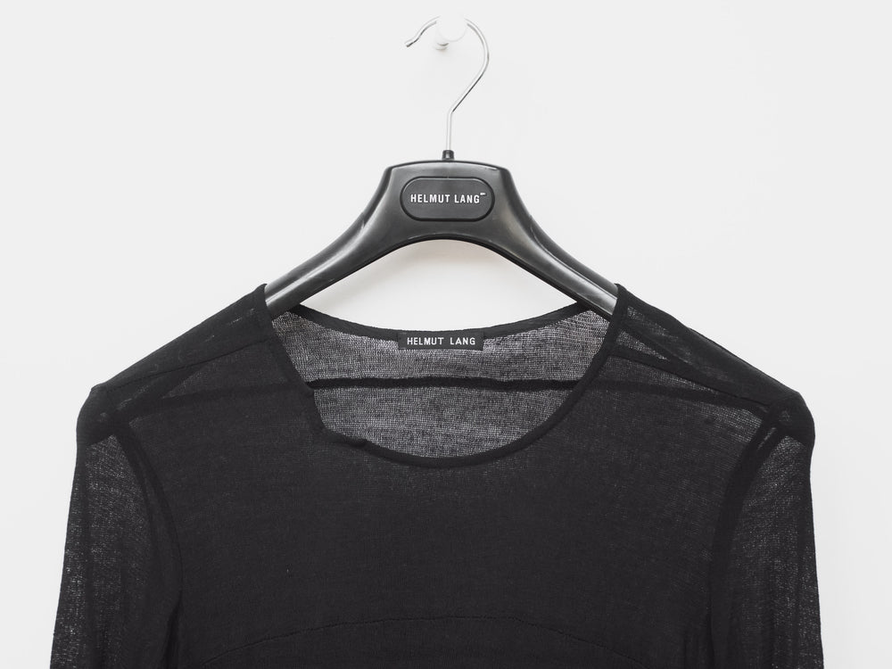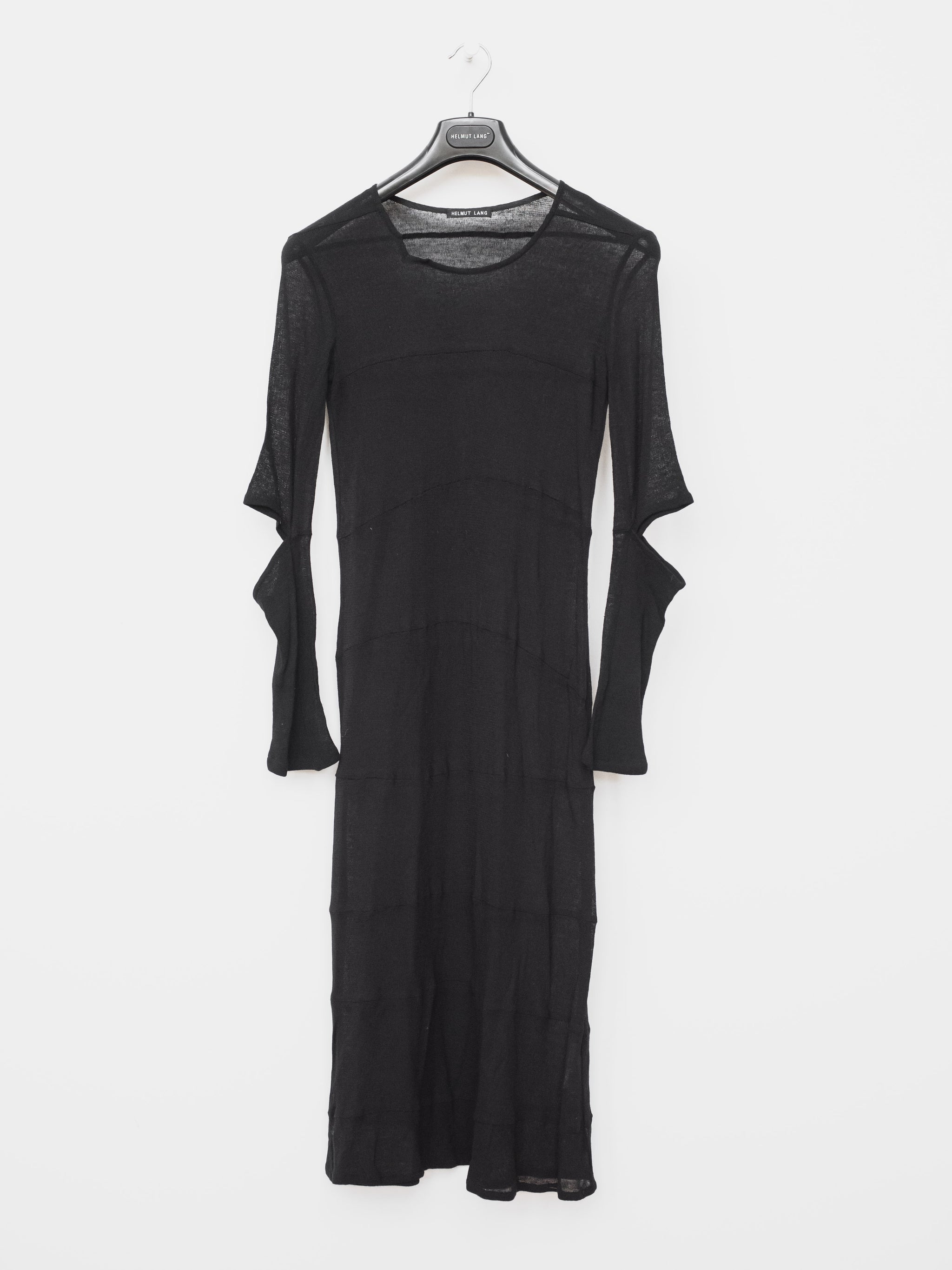 This beautiful dress exemplifies Helmut Lang's mastery in minimalism with subtle details such as the numerous seams along the body and the cutouts in the elbows.