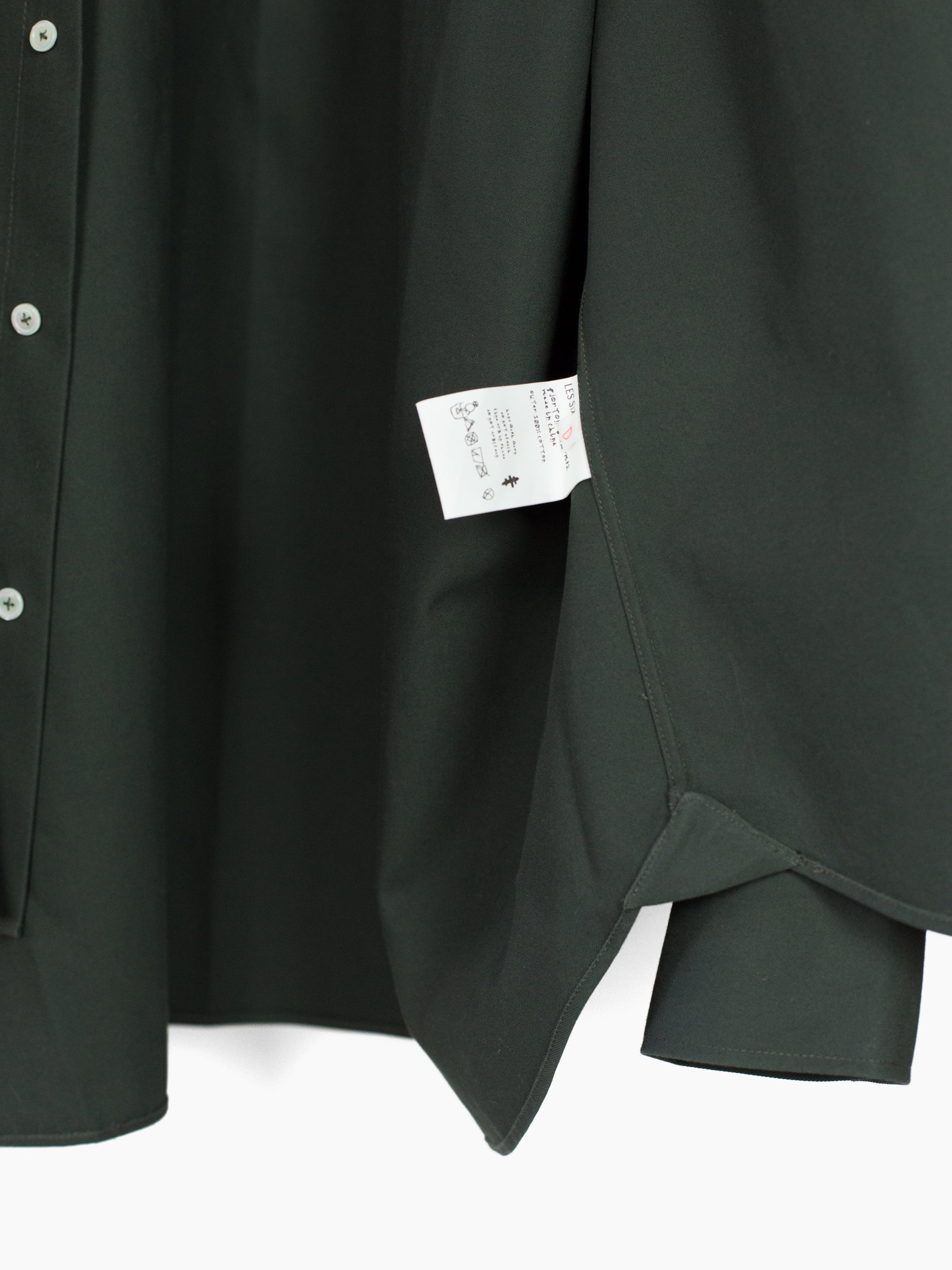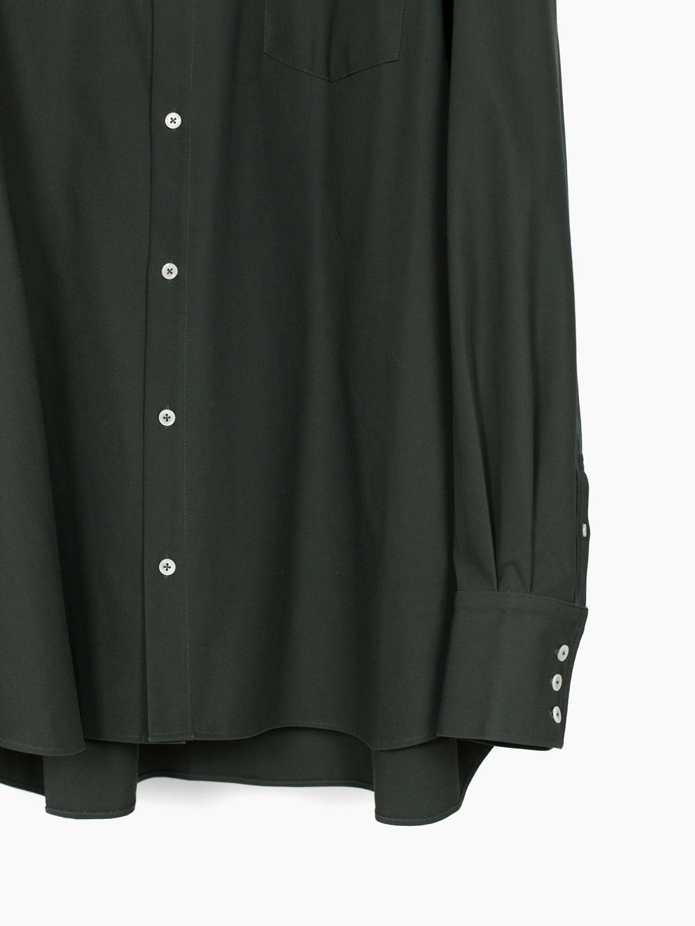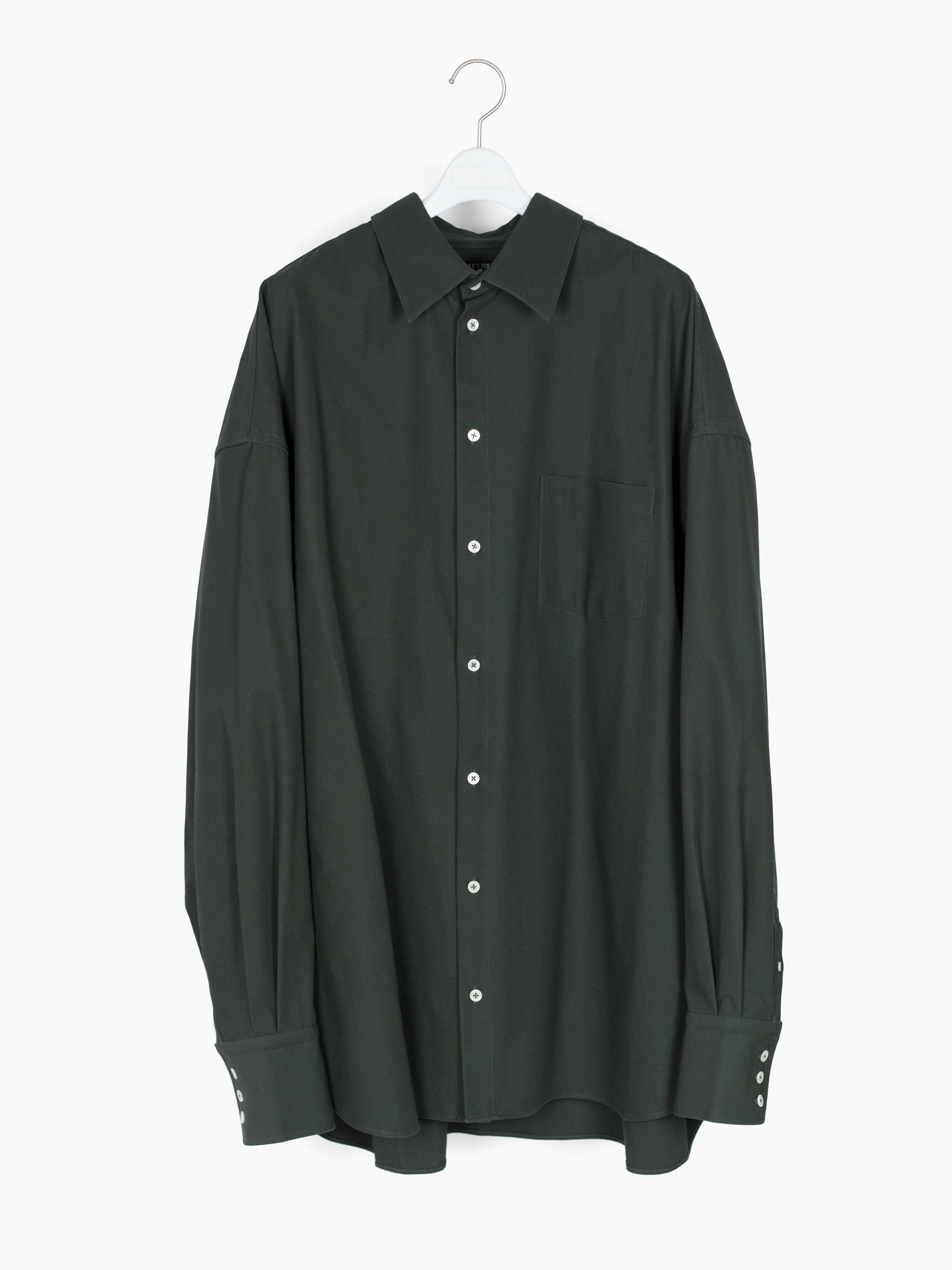 Very big shirt made in superfine long staple cotton twill. The smooth and luxurious hand of this fabric can't be overstated. Triple button cuffs and sizeable point collar. Wear it on its own or over other layers. It's very big.