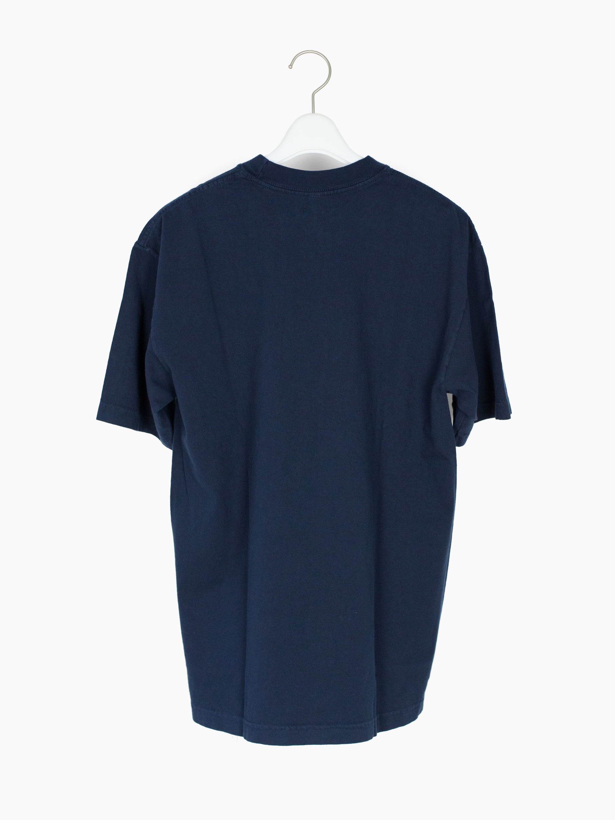 Circular knit (no side seam)t-shirt with Les Six braided charm at wearer's left hem. Metallic print.