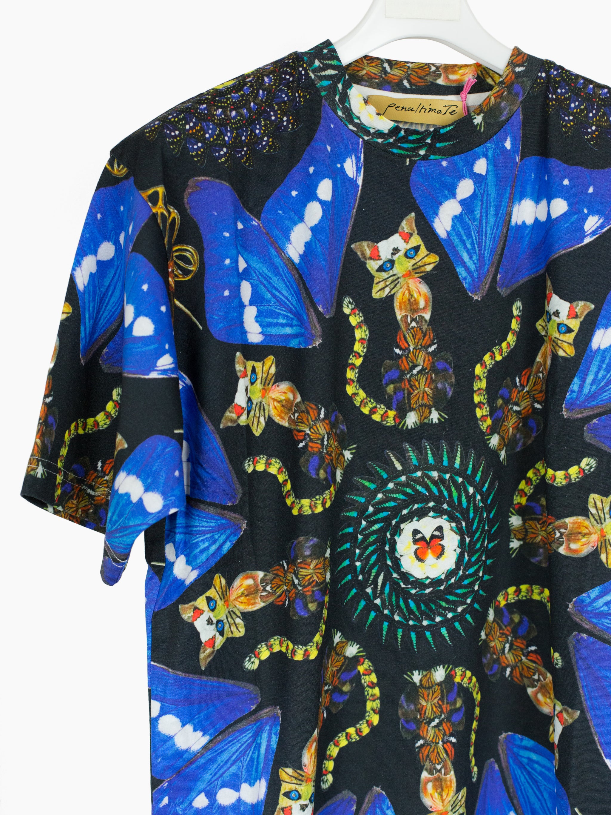 Radial print short sleeve tee featuring creatures that are uncannily familiar yet otherworldly. Exaggerated vibrant and saturated color for a psychedelic effect. Lightweight supple cotton wears smooth to the touch.