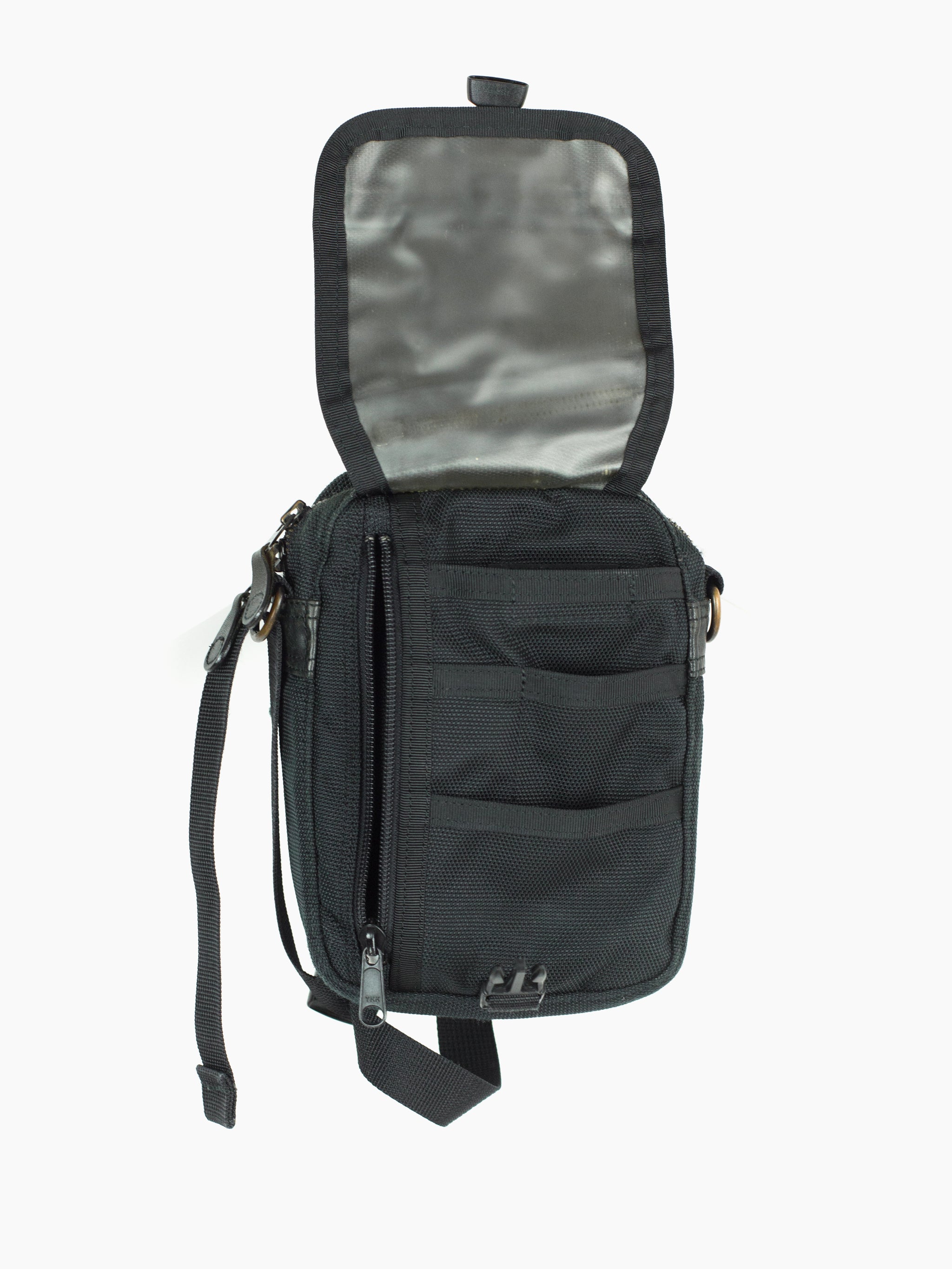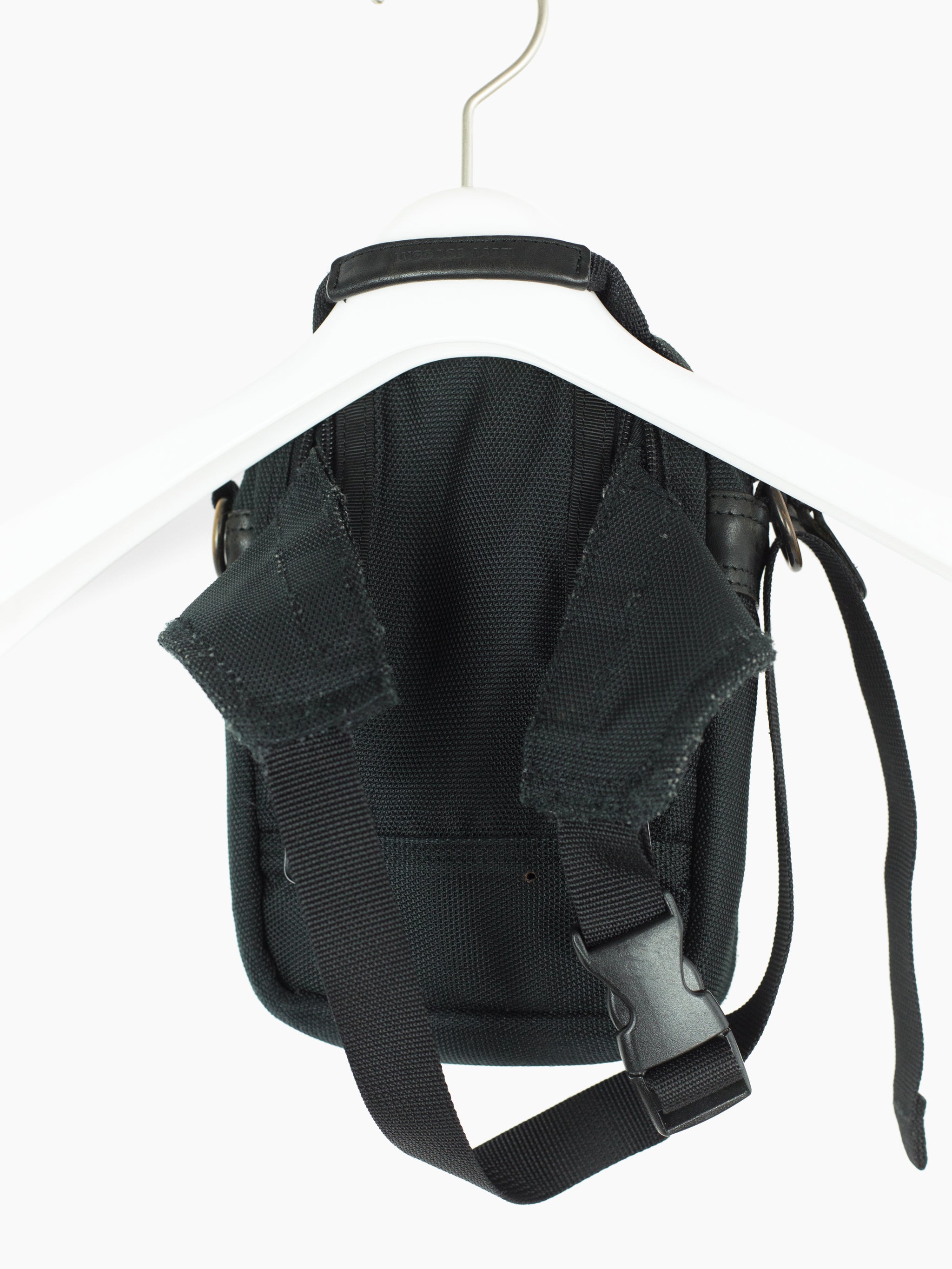 Made in Japan 7/10 Condition with small burn hole on the body-facing side that is hardly noticeable when worn. Does not open to the inside as there is padding and lining. Face fabric shows patina due to age and some pilling at the body strap panels.