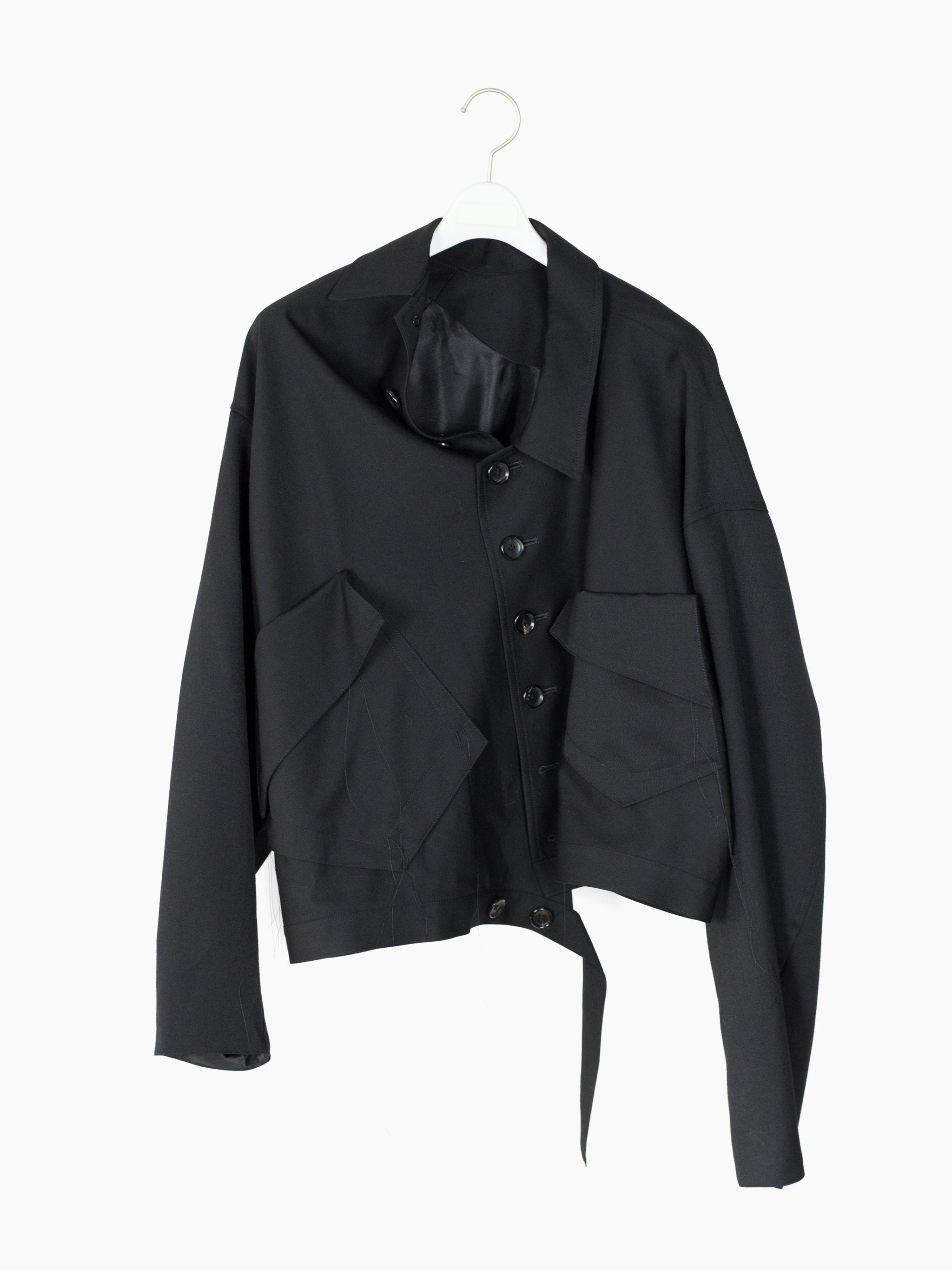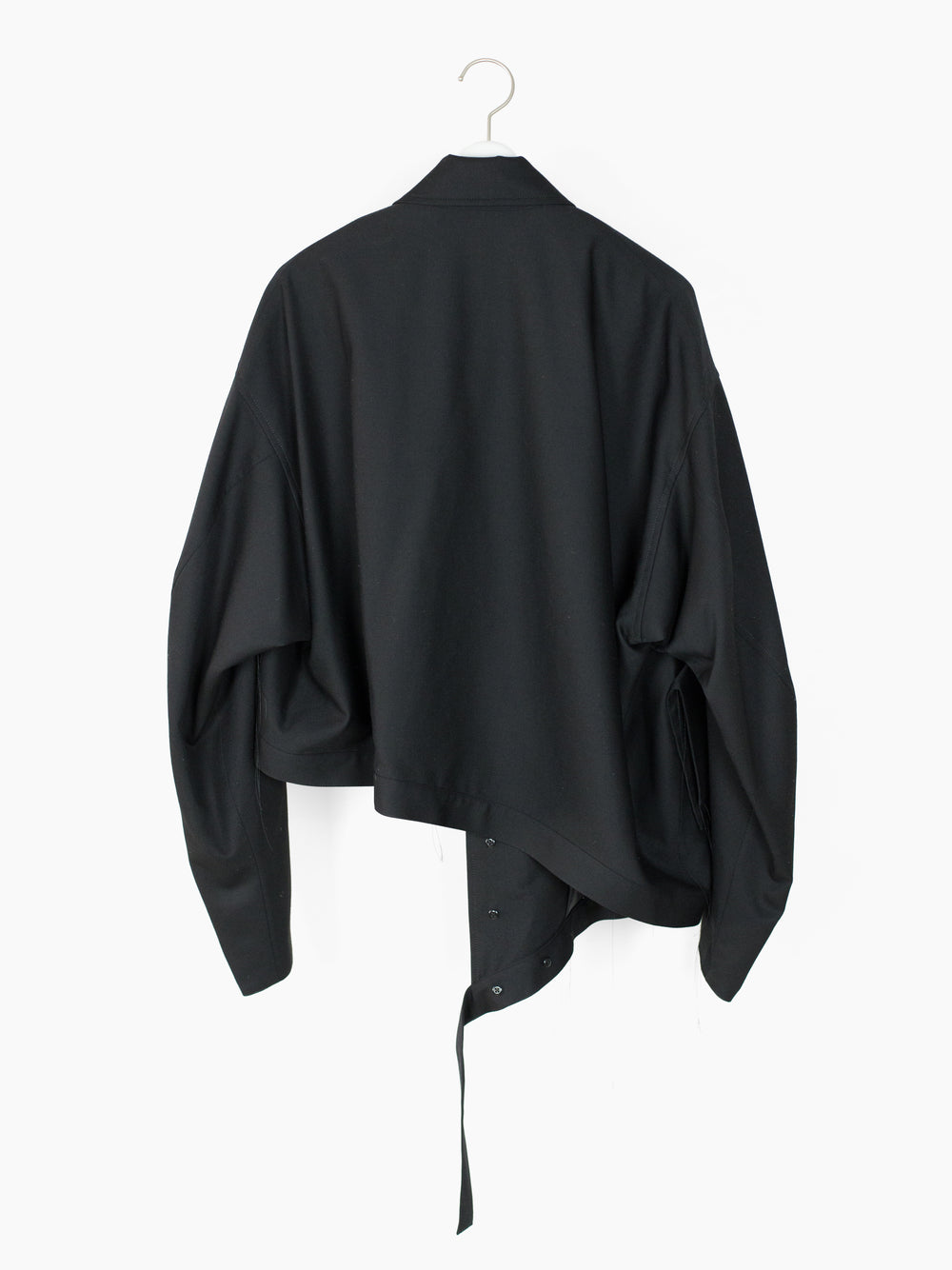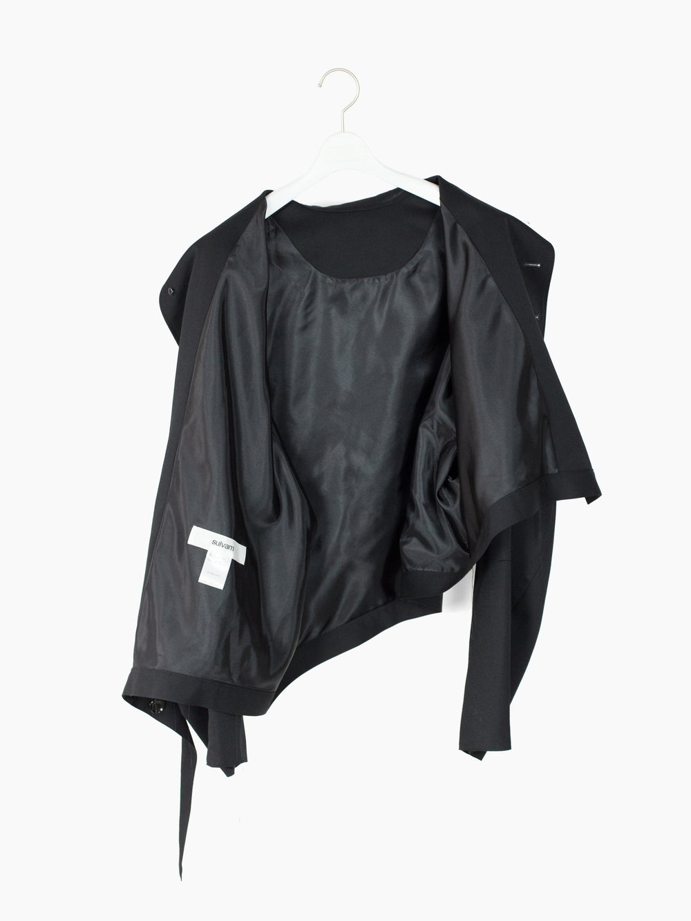 Fit Notes: Cut boxy and roomy in body and sleeves with asymmetrical, twisted and draped body. Accommodates up to a size larger. Very cropped on one side.
