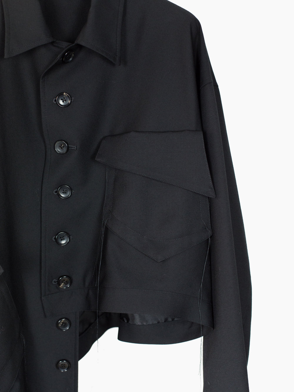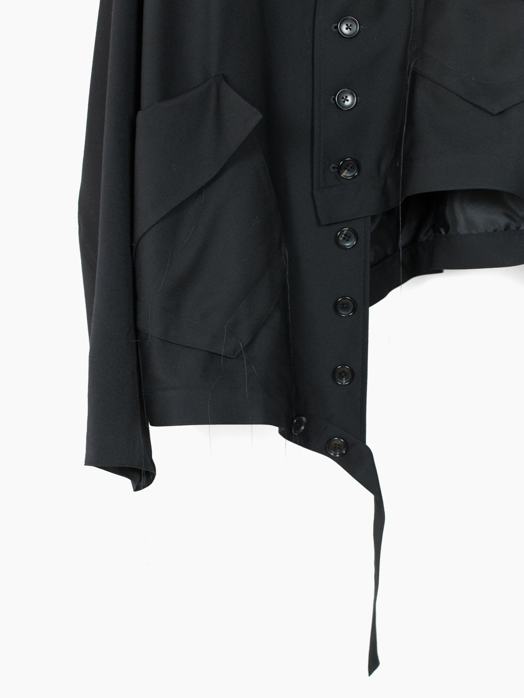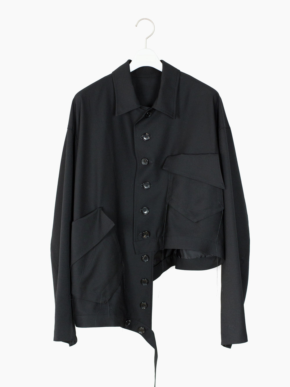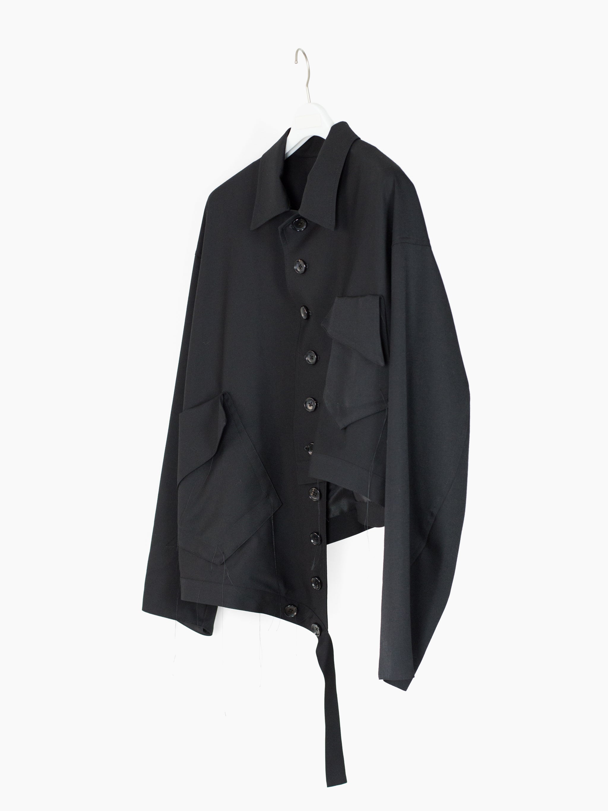 Fit Notes: Cut boxy and roomy in body and sleeves with asymmetrical, twisted and draped body. Accommodates up to a size larger. Very cropped on one side.