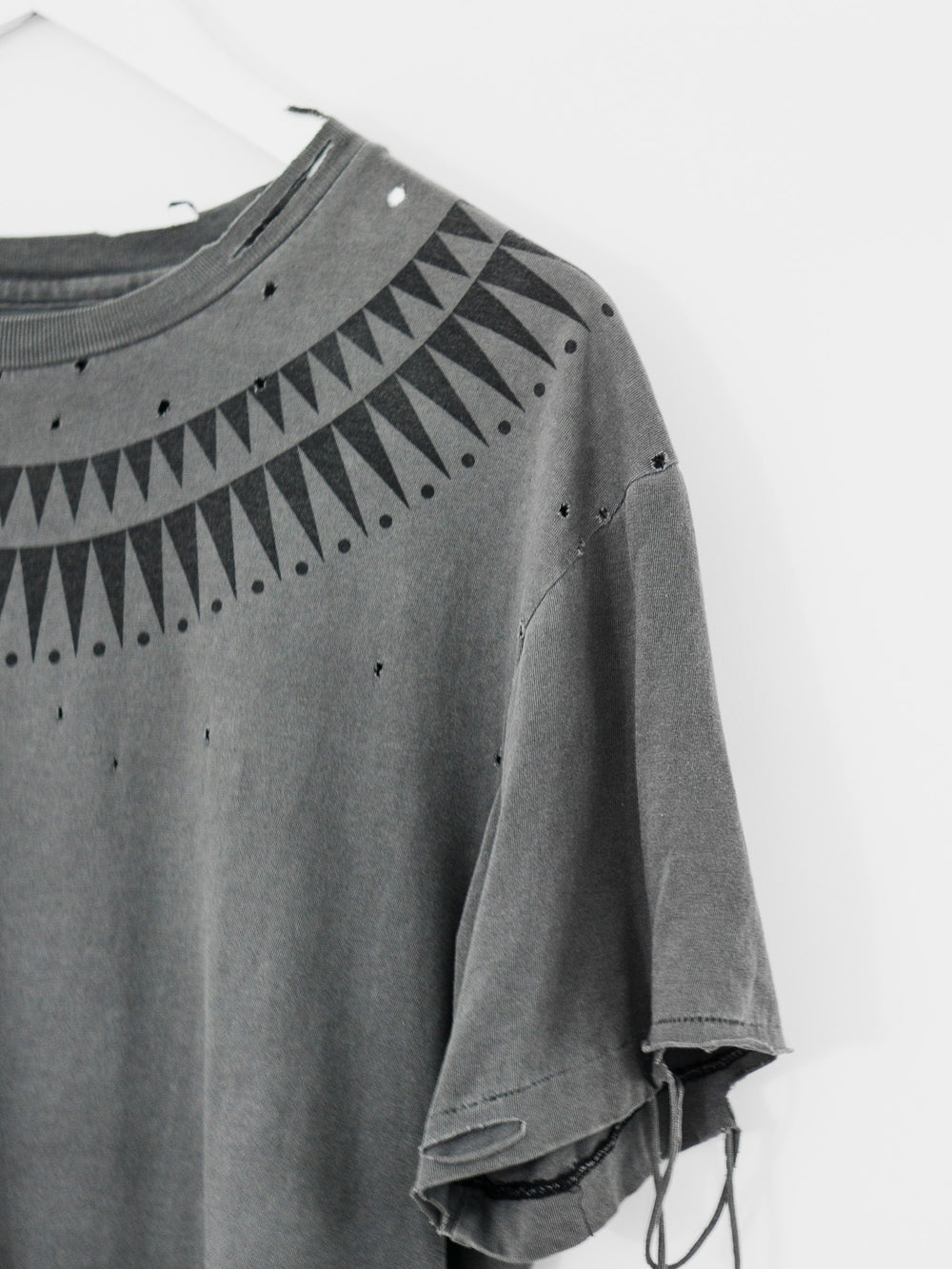 This is the very first Giz tee with meticously distressed hems and perforations.