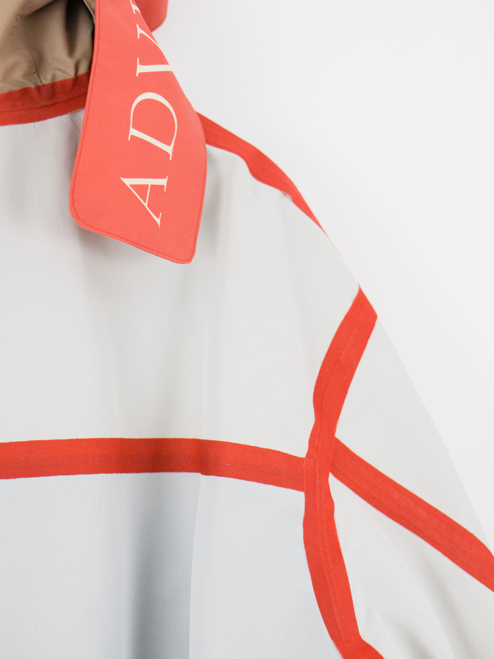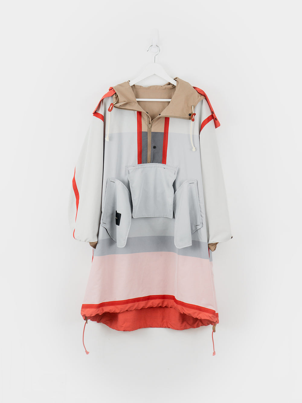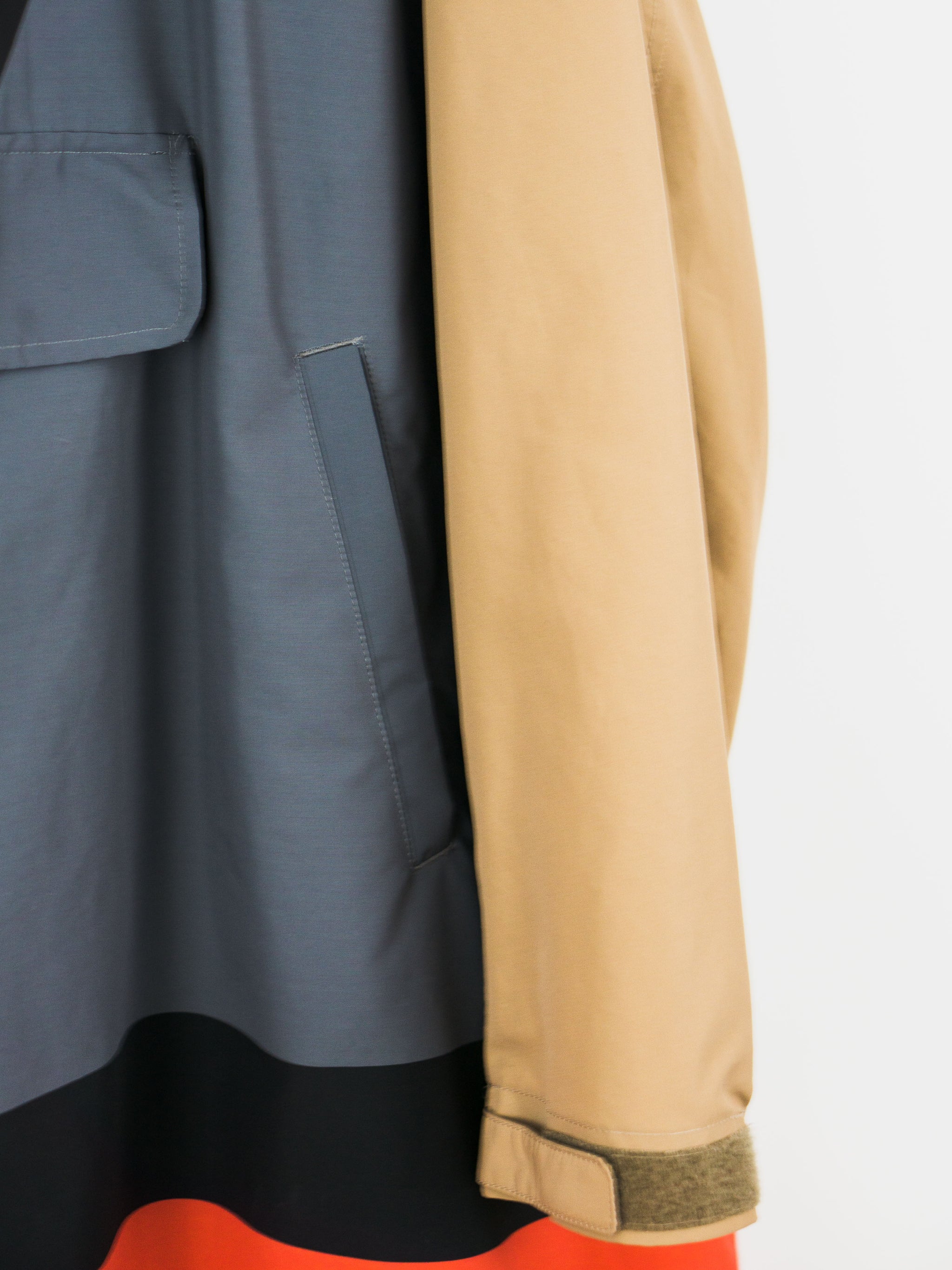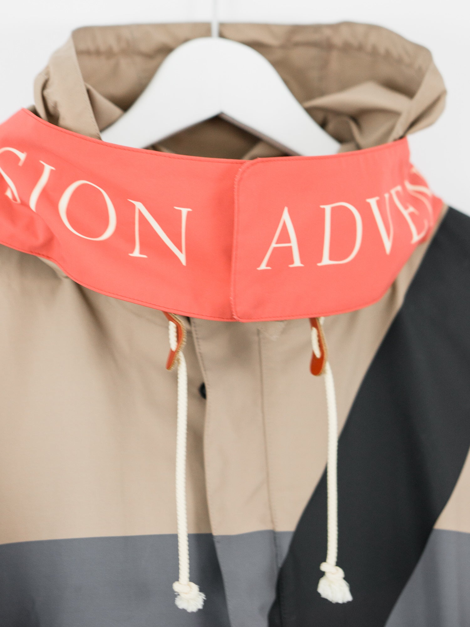 This version of the parka is perhaps the most well-done out of all; it does not zip down all the way like a traditional parka but instead features a half-zip halted by an anorak-style pouch. The colour scheme takes cues from the artwork of the album, the title of which is emblazoned across the removable collar application. The seams are also taped, however we would not recommend wearing this in the rain.
