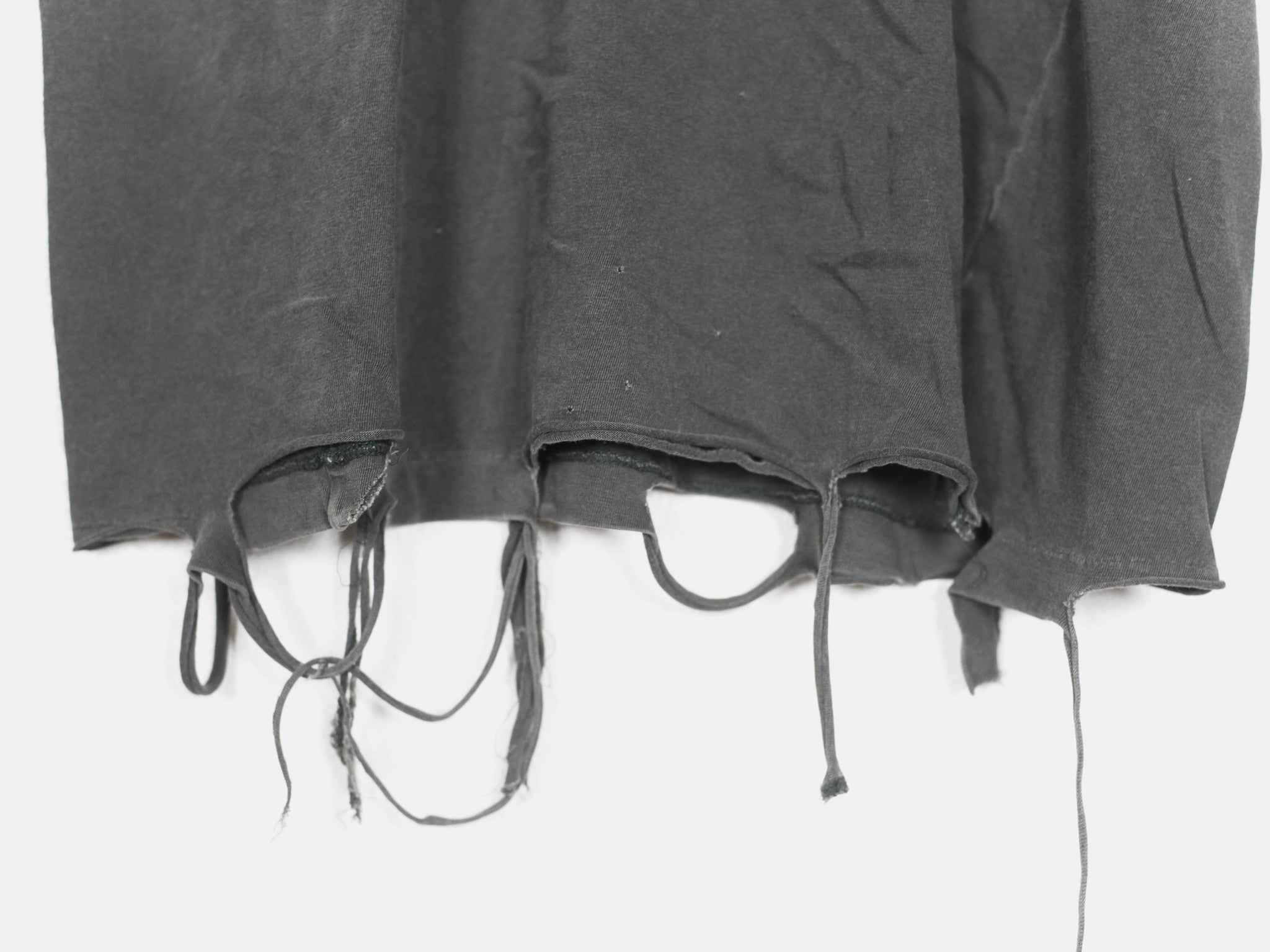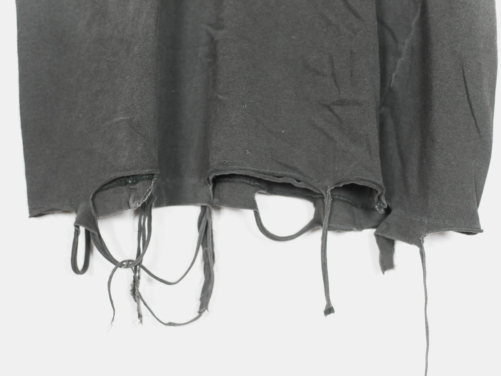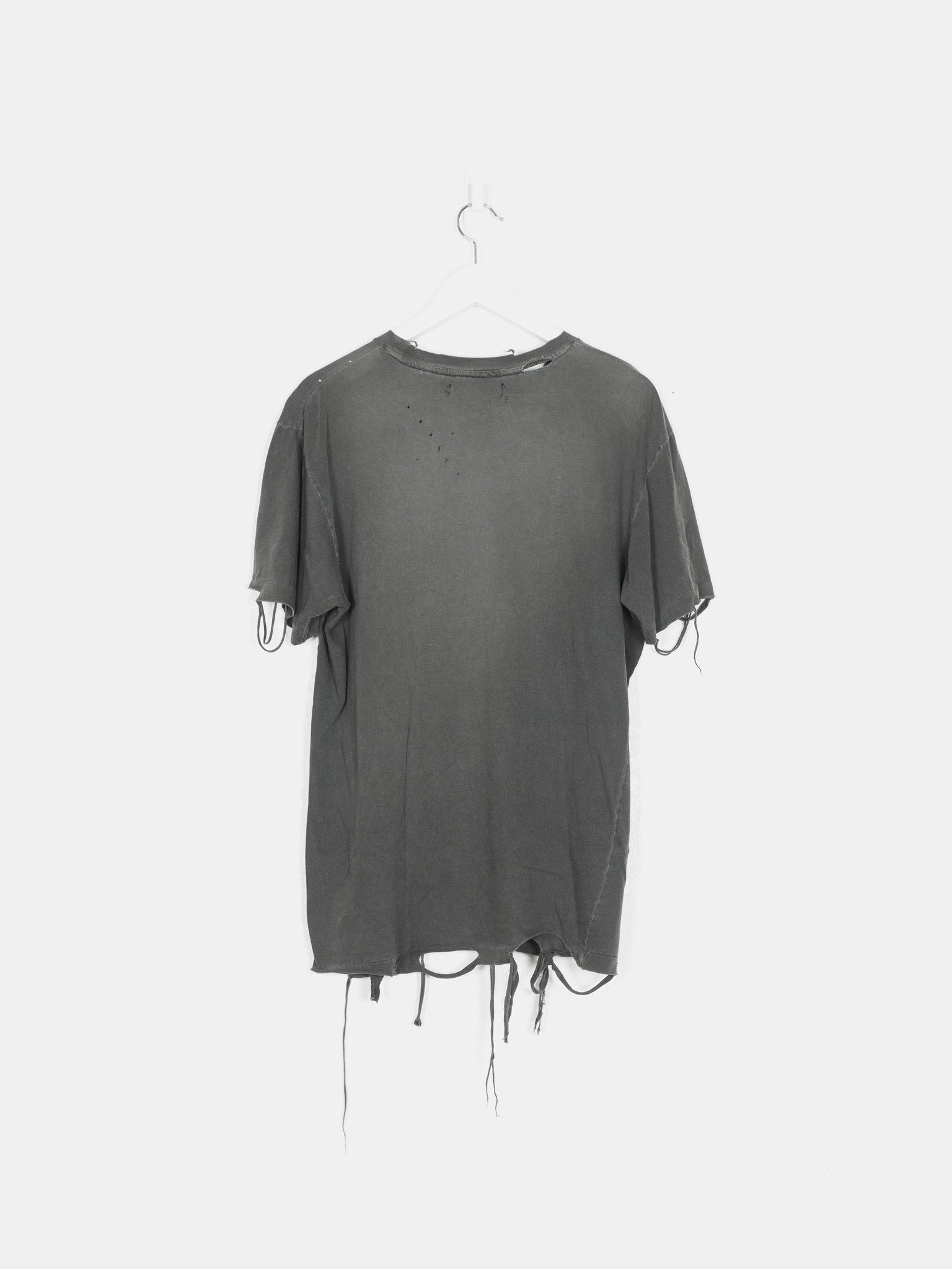 Rare and coveted piece in excellent condition. This is the very first Giz tee with meticously distressed hems and perforations. Because the tee came new with faded and destroyed details, the condition is harder to gauge, but judging by the pristine care-tag and fabric it's in 8.5/10 condition - no pilling or wrinkles. Made in Japan.