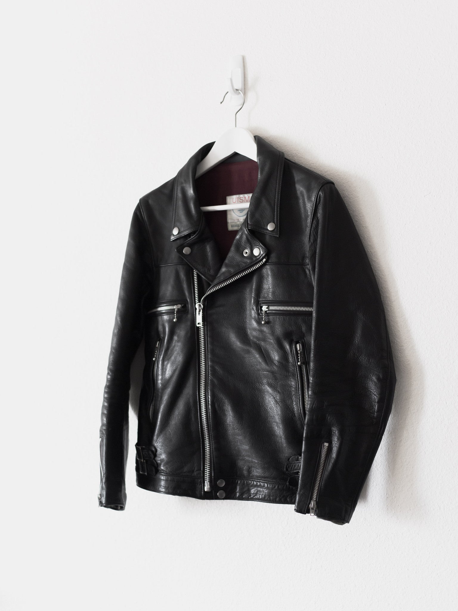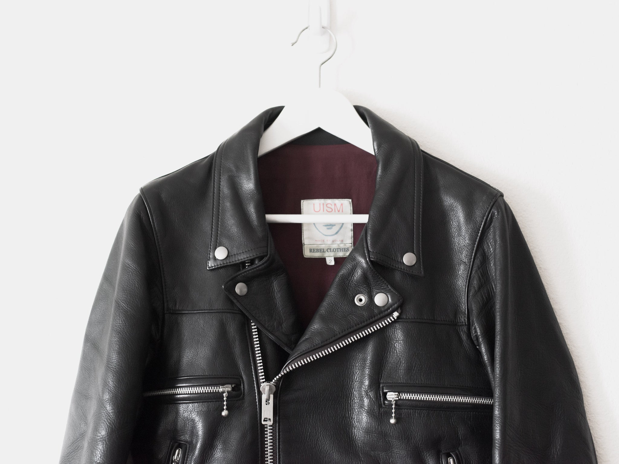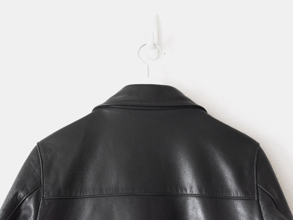 The best iteration hands down of one of the best leather jackets, a grail for many, and priced to sell quick, cheaper than you can get it for in Japan. Rare size 2. The first ever "We make noise not clothes" leather and arguably unsurpassed, this has the thickest and juiciest calf-hide of all subsequent iterations. Other details include a breathable cotton lined body and cupro lined sleeves, vertical slant hand pockets, and two horizontal pockets. 8.5/10 condition, the gold chest emblem has rubbed off over time. Made in Japan.